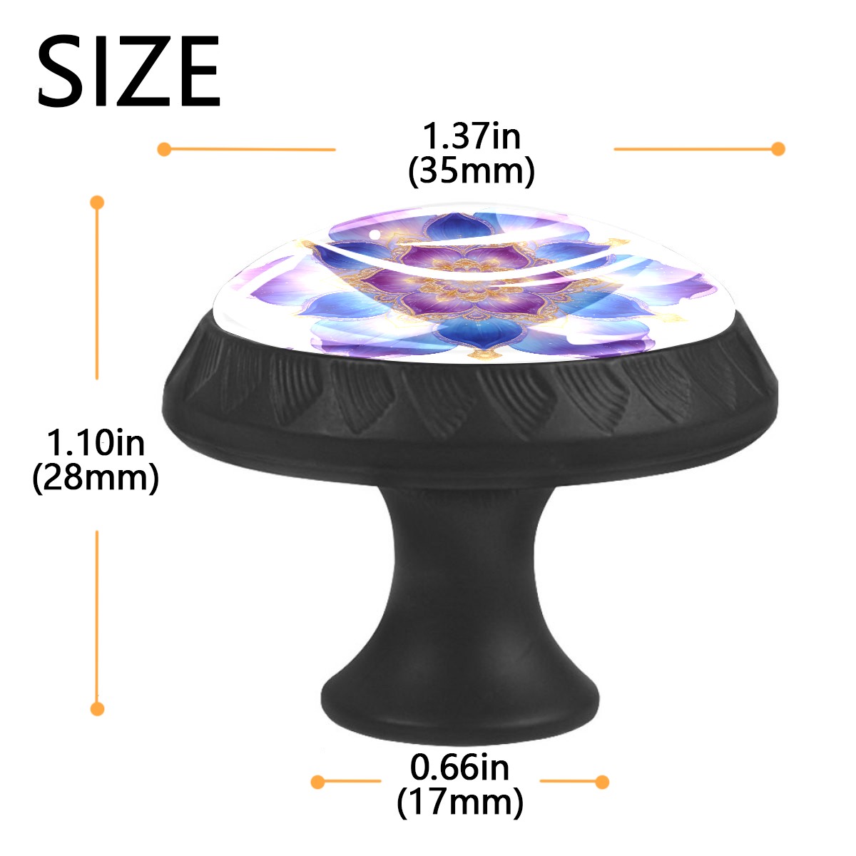 <p><b>Package includes:</b></p> <p>4 x cabinet knobs</p> <p>4 x screws 1.1'' (28 mm) </p> <p>4 x screws 1.37'' (35 mm)</p> <p><b>How to Install?</b></p> <p>1. Drill a hole in the drawer panel.</p> <p>2. Pass the screw through from the backside of the drawer.</p> <p>3. Tighten the knob onto the screw.</p> <p>ABS + Glass: The combination of sturdy ABS with high-transparency glass offers a long-lasting shine that enhances the quality of your home. Suitable for cabinets, drawers, dressers, wardrobes, office furniture, etc.</p> <p>Easy Maintenance: The smooth glass surface wipes clean easily, making it ideal for long-term use in kitchens and bathrooms.</p>