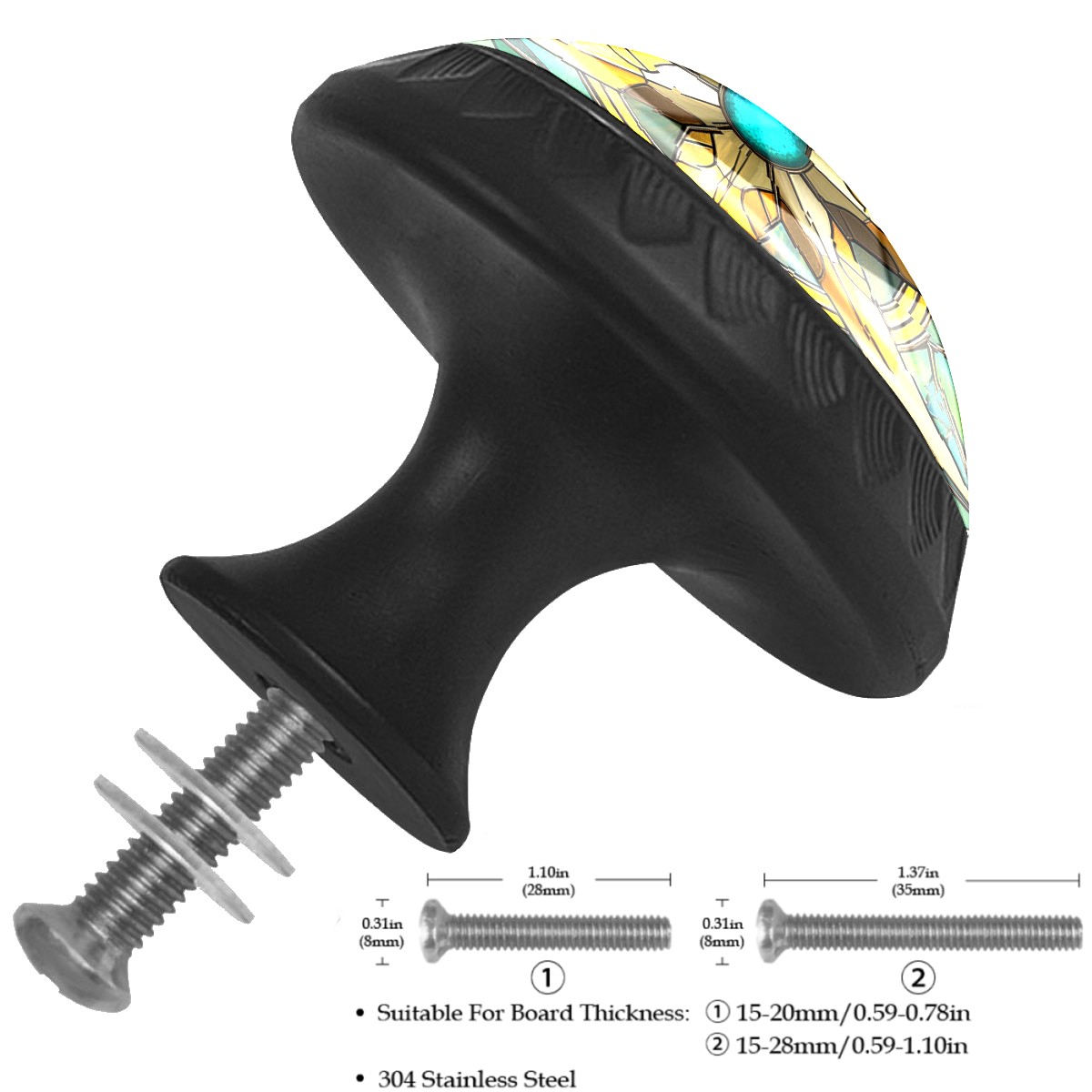 • <p><b>Package includes:</b></p> <p>4 x cabinet knobs</p> <p>4 x screws 1.1'' (28 mm) </p> <p>4 x screws 1.37'' (35 mm)</p> <p><b>How to Install?</b></p> <p>1. Drill a hole in the drawer panel.</p> <p>2. Pass the screw through from the backside of the drawer.</p> <p>3. Tighten the knob onto the screw.</p> <p>ABS + Glass: The combination of sturdy ABS with high-transparency glass offers a long-lasting shine that enhances the quality of your home. Suitable for cabinets, drawers, dressers, wardrobes, office furniture, etc.</p> <p>Easy Maintenance: The smooth glass surface wipes clean easily, making it ideal for long-term use in kitchens and bathrooms.</p>