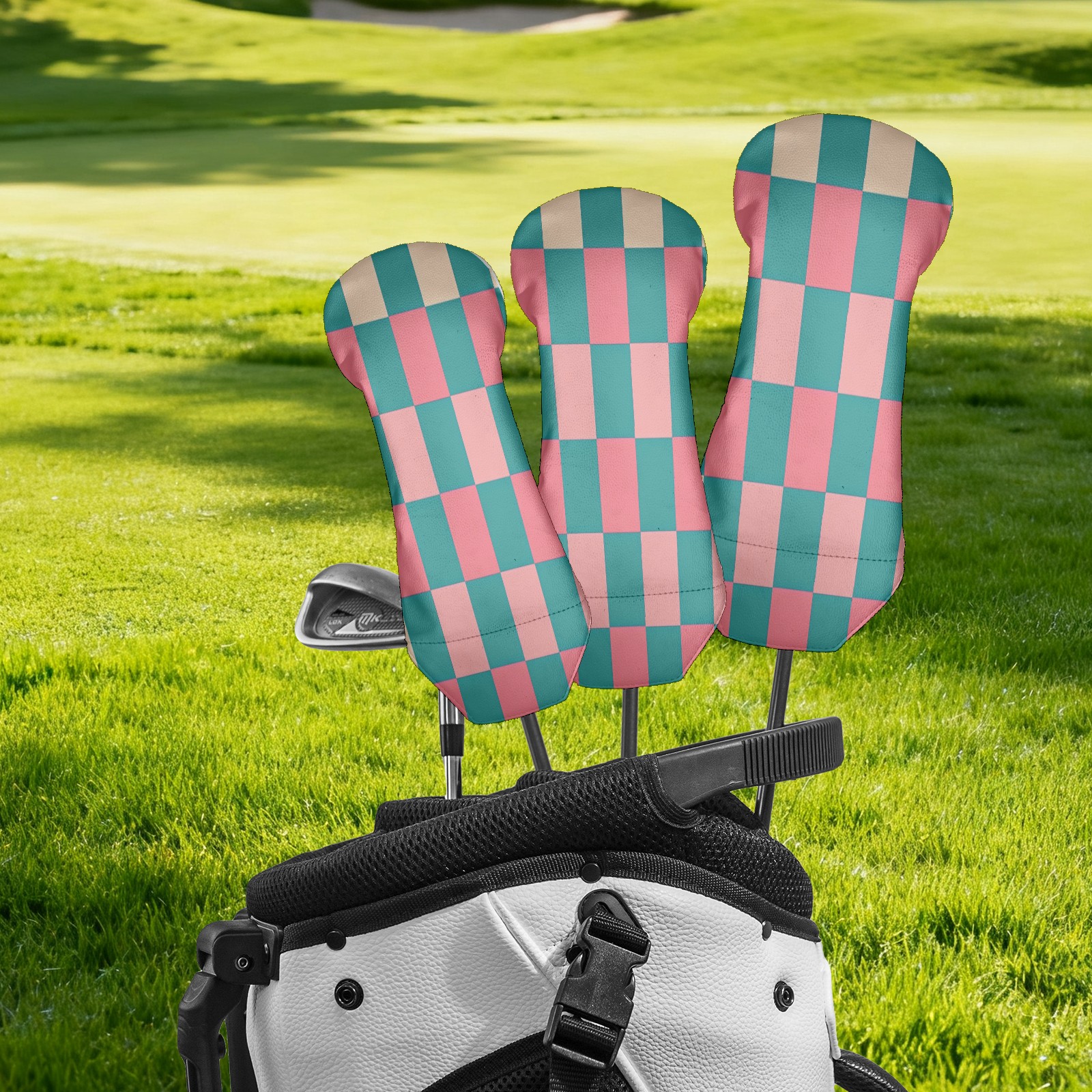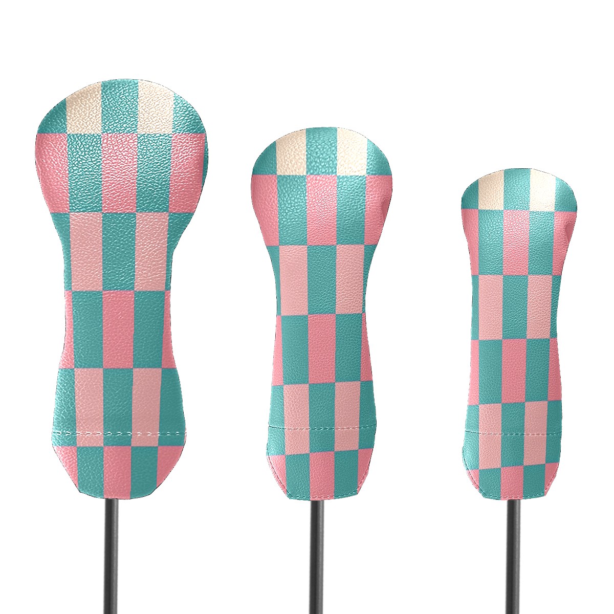 Golf Club Head Cover - Premium Leather Driver Fairway Wood Headcover, Soft Plush Lining Golf Headcover Fits Driver Hybrid for Men & Women Golfers (Checkered (1))