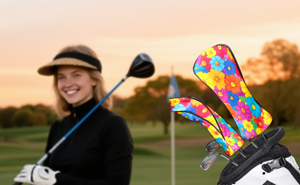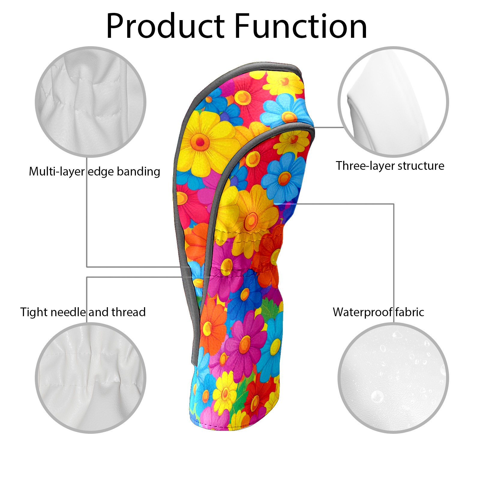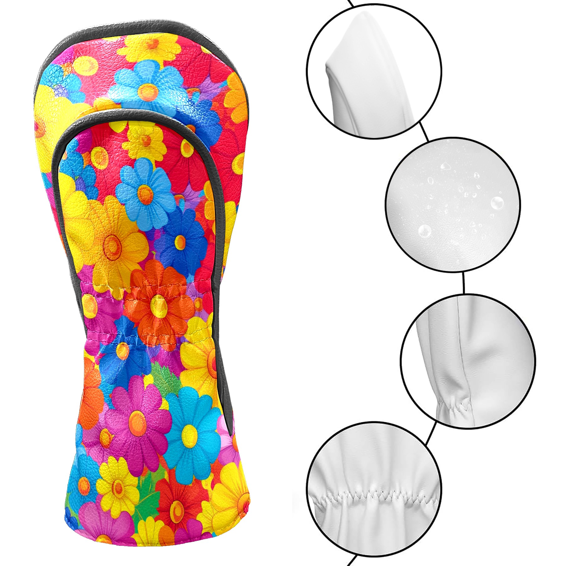 Golf Driver Head Cover Leather Driver Fairway Headcover, Premium Golf Club Covers with Plush Lining Girls Womens Mens Head Cover for Golf Clubs (Colorful Floral)