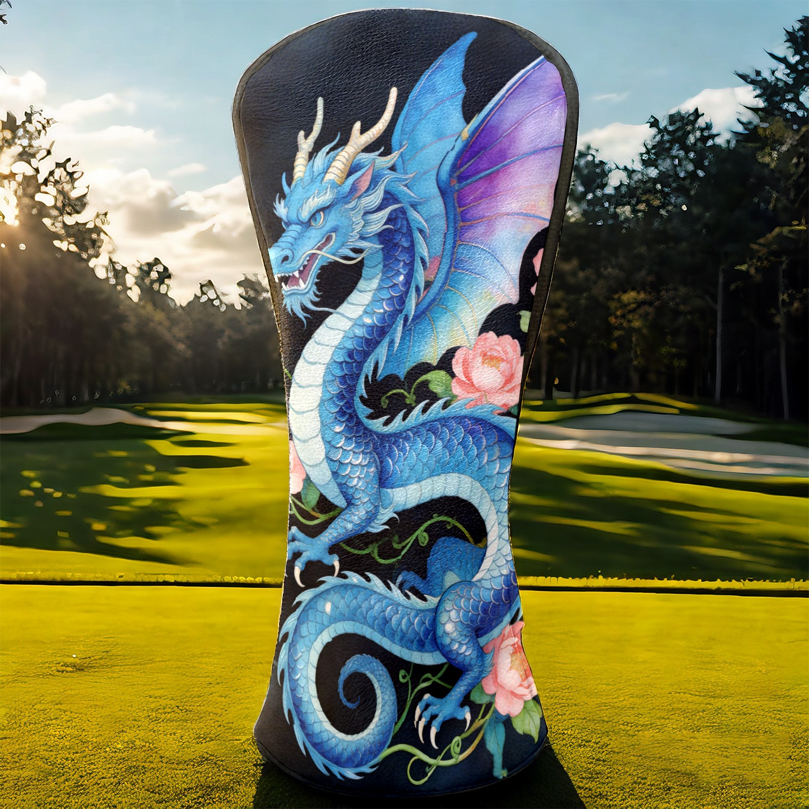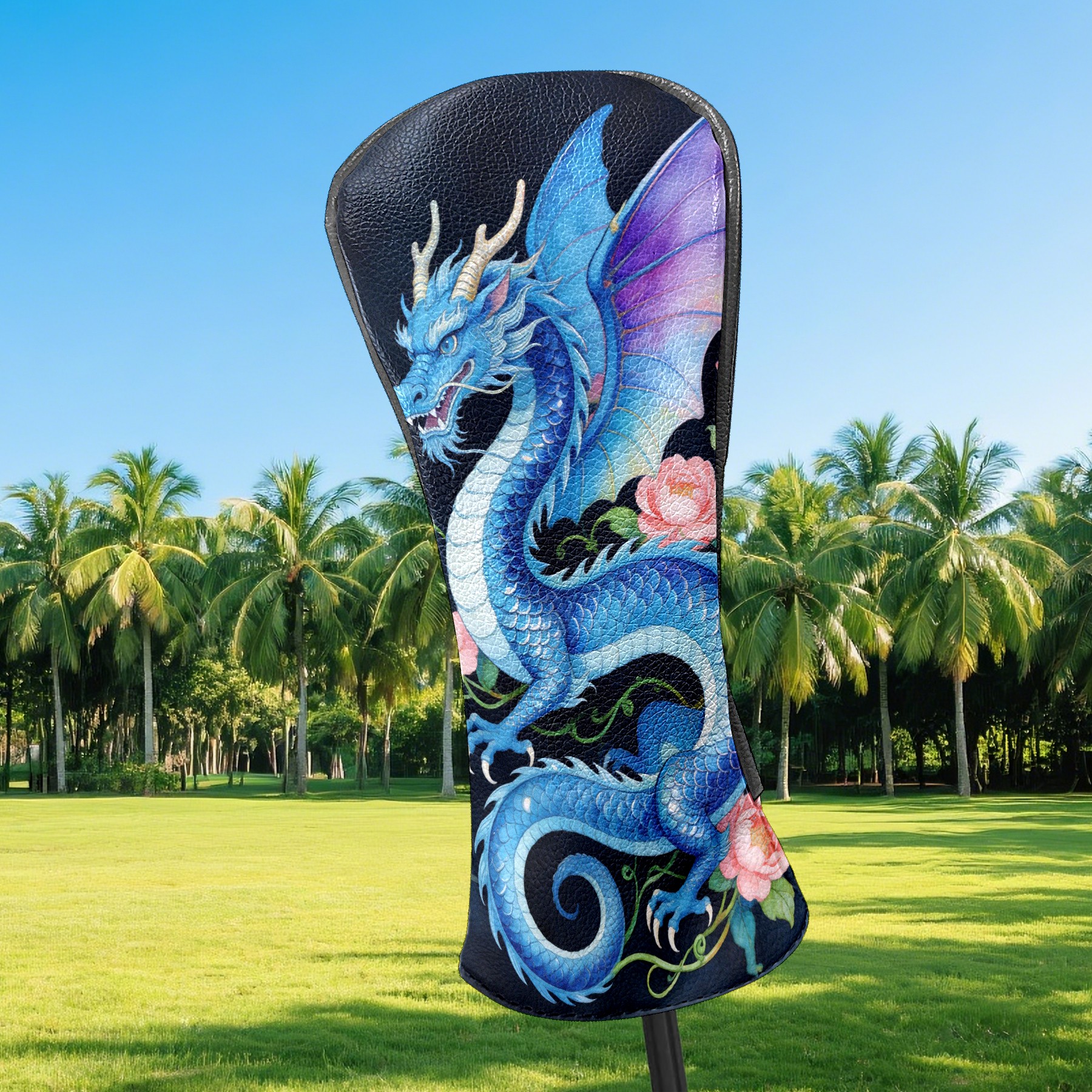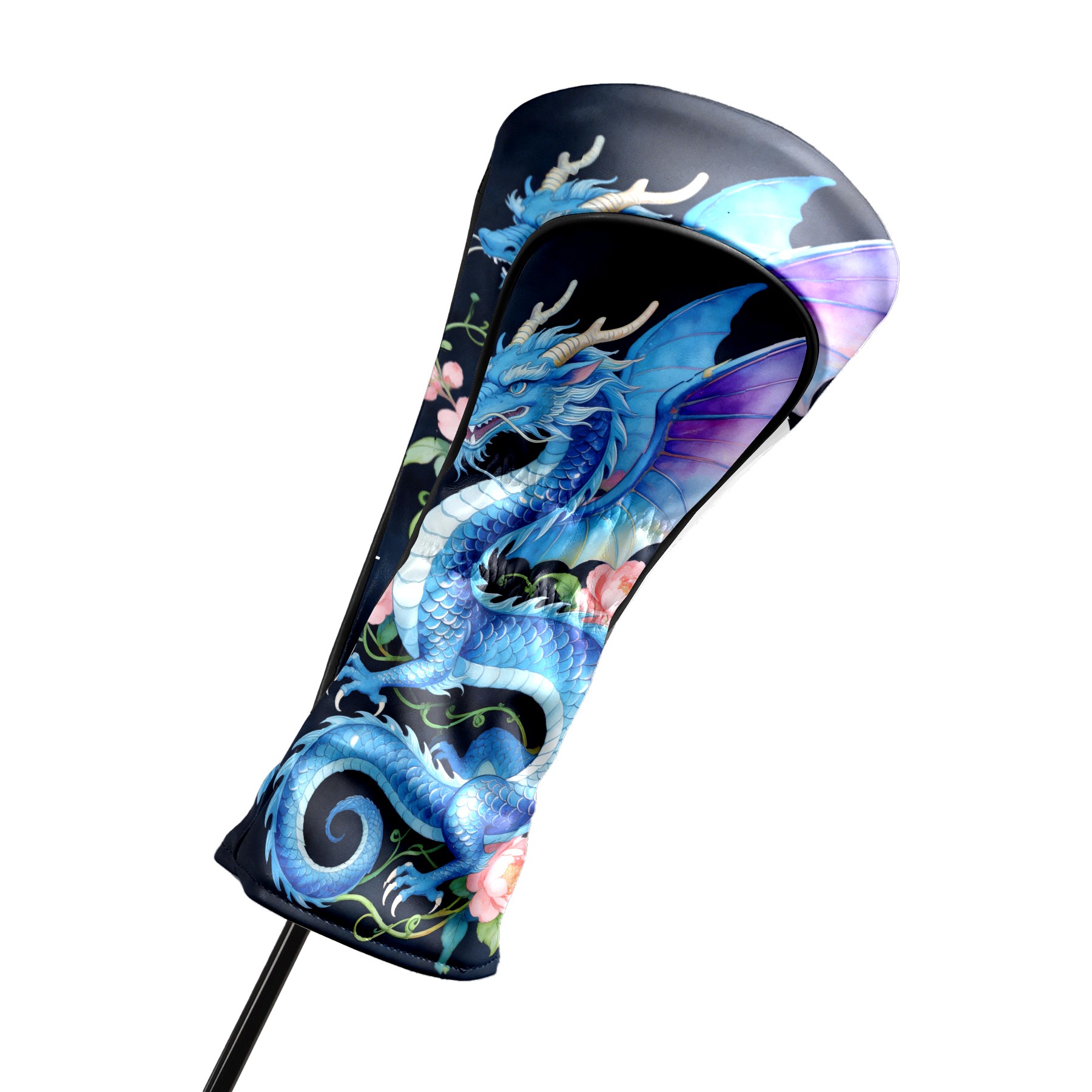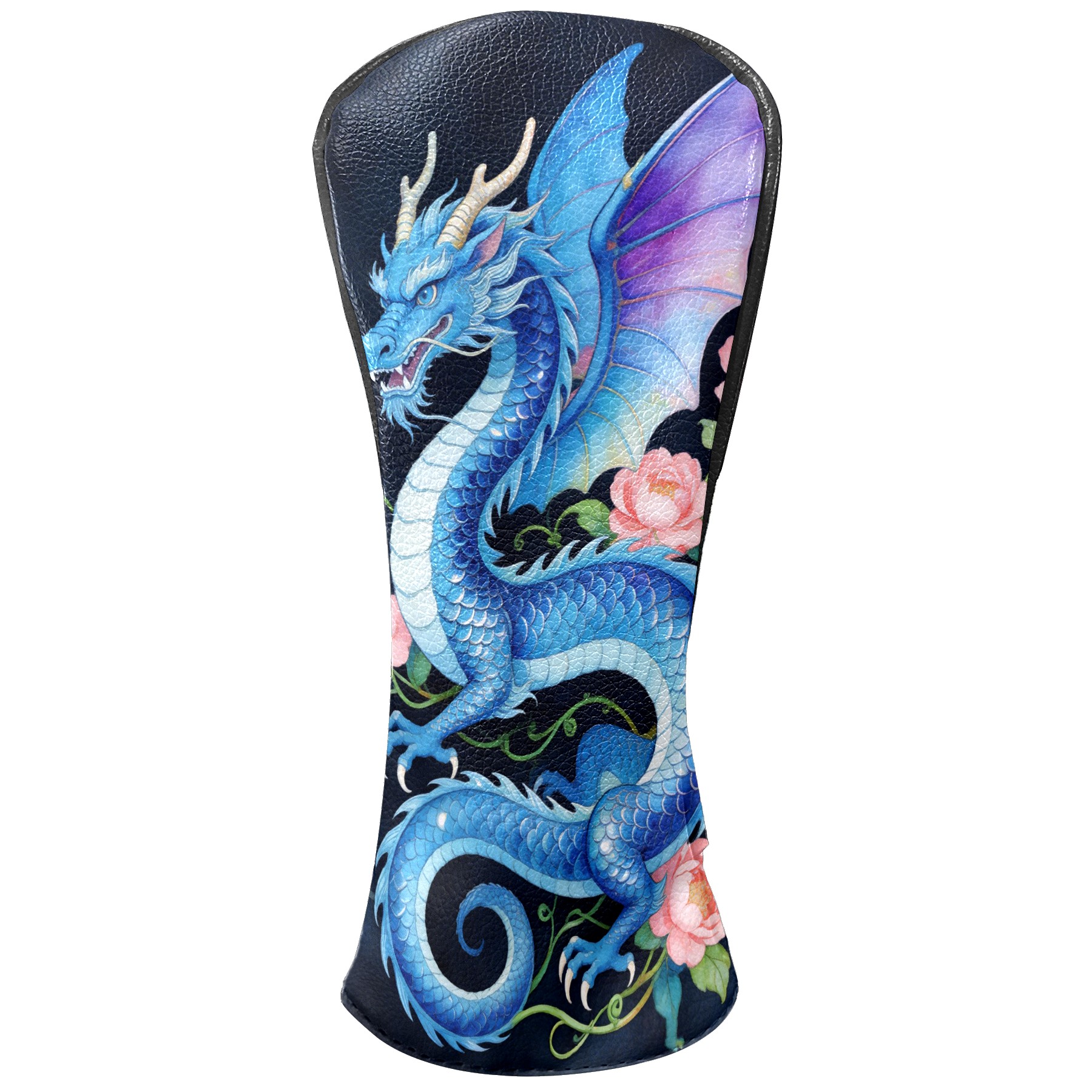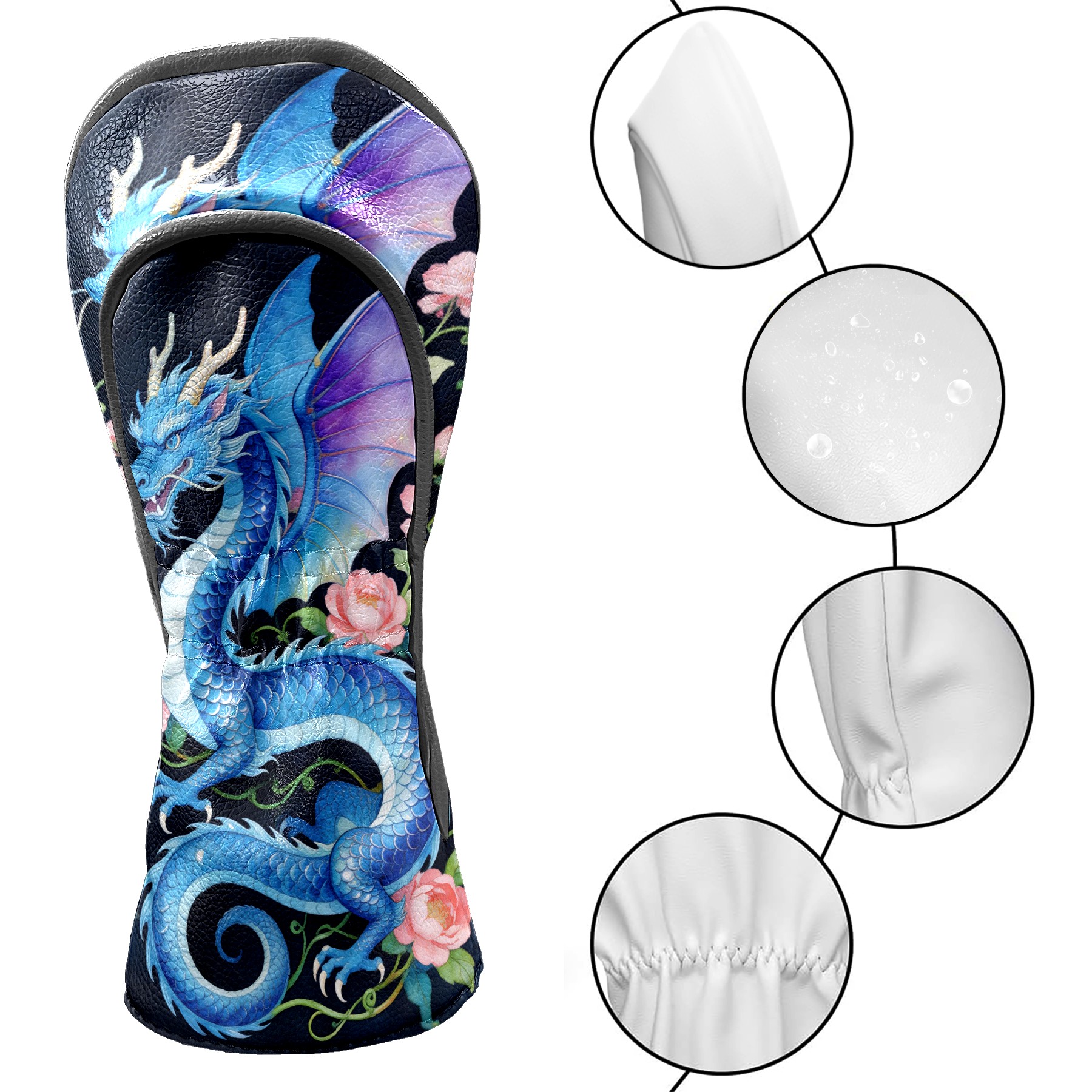 Golf Driver Head Cover Leather Driver Fairway Headcover, Premium Golf Club Covers with Plush Lining Girls Womens Mens Head Cover for Golf Clubs (Blue Dragon Floral)