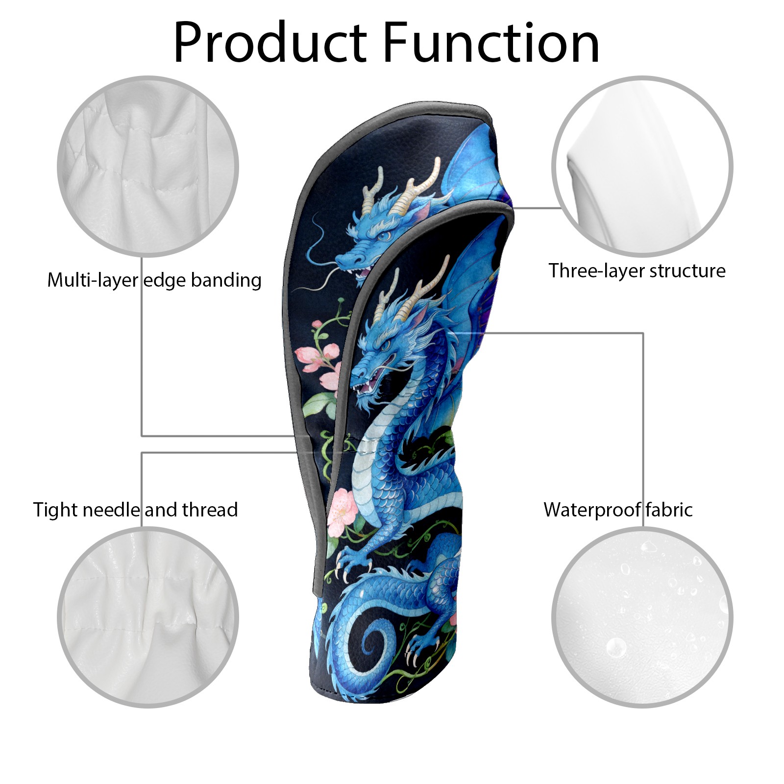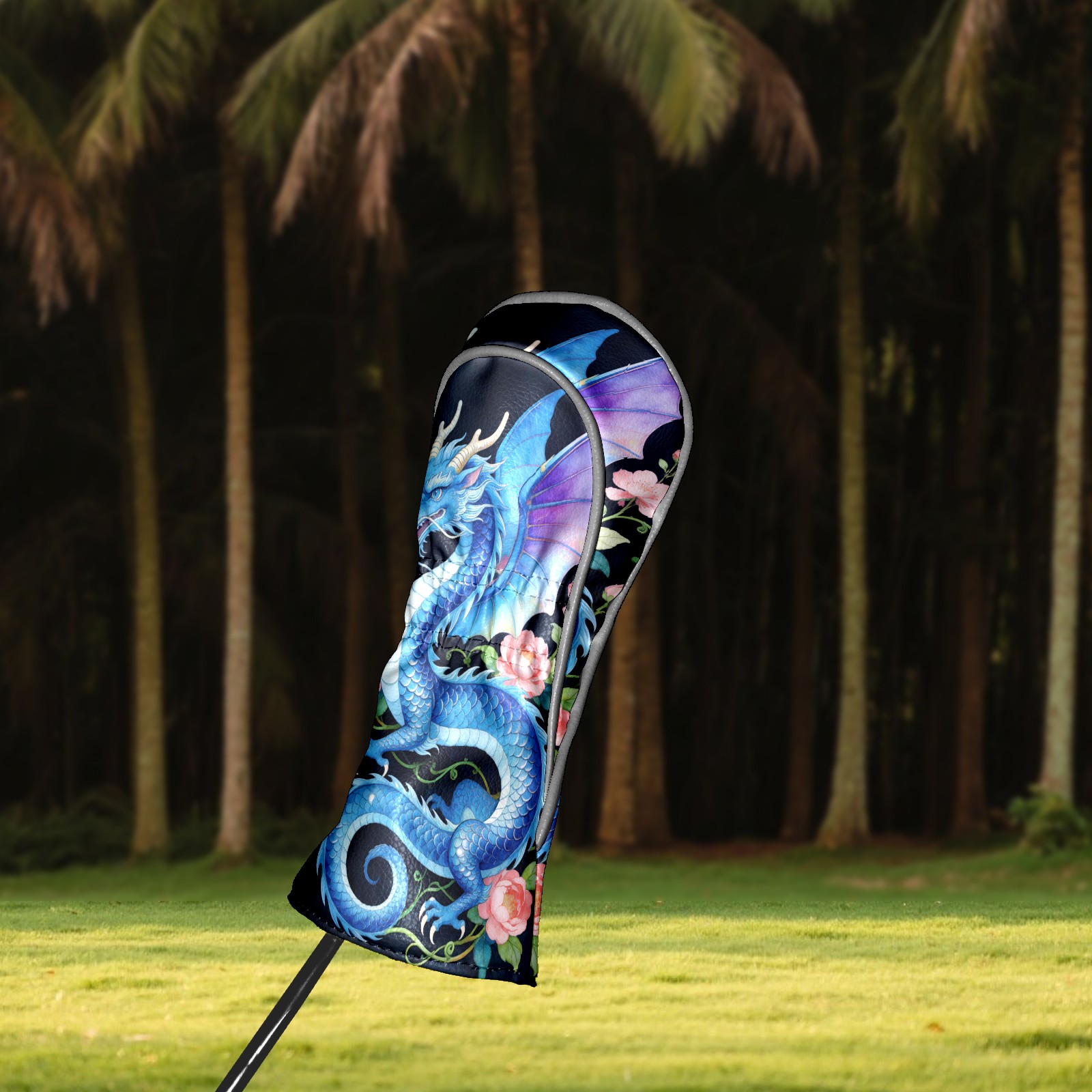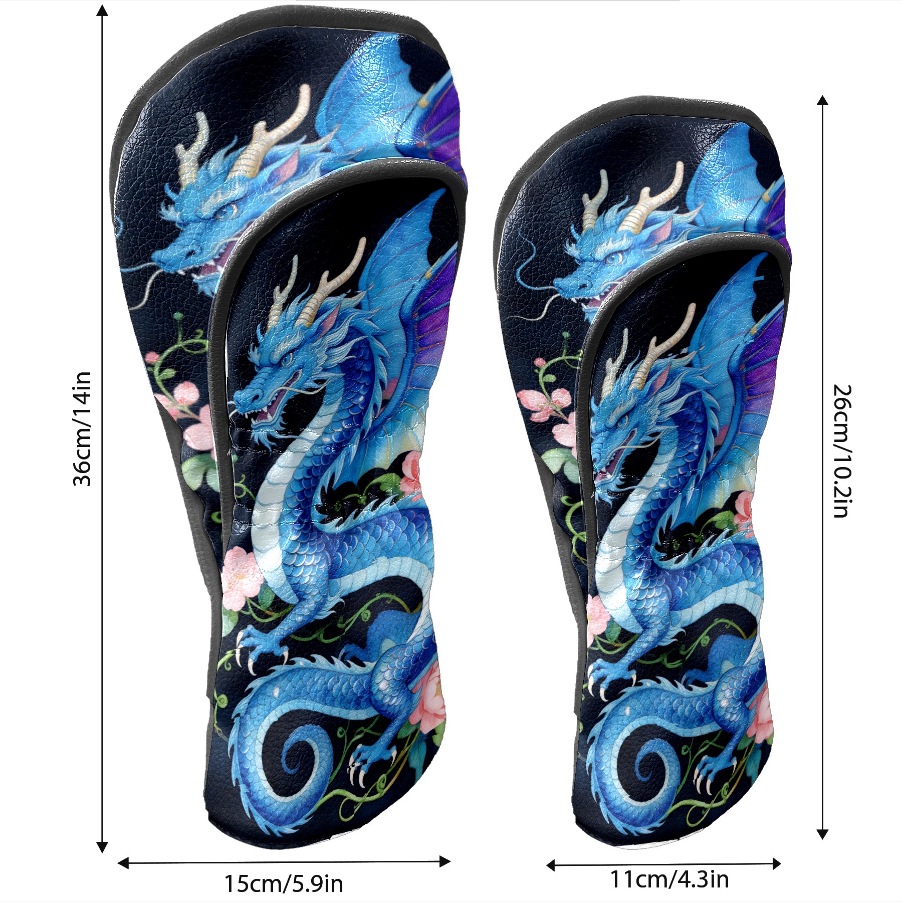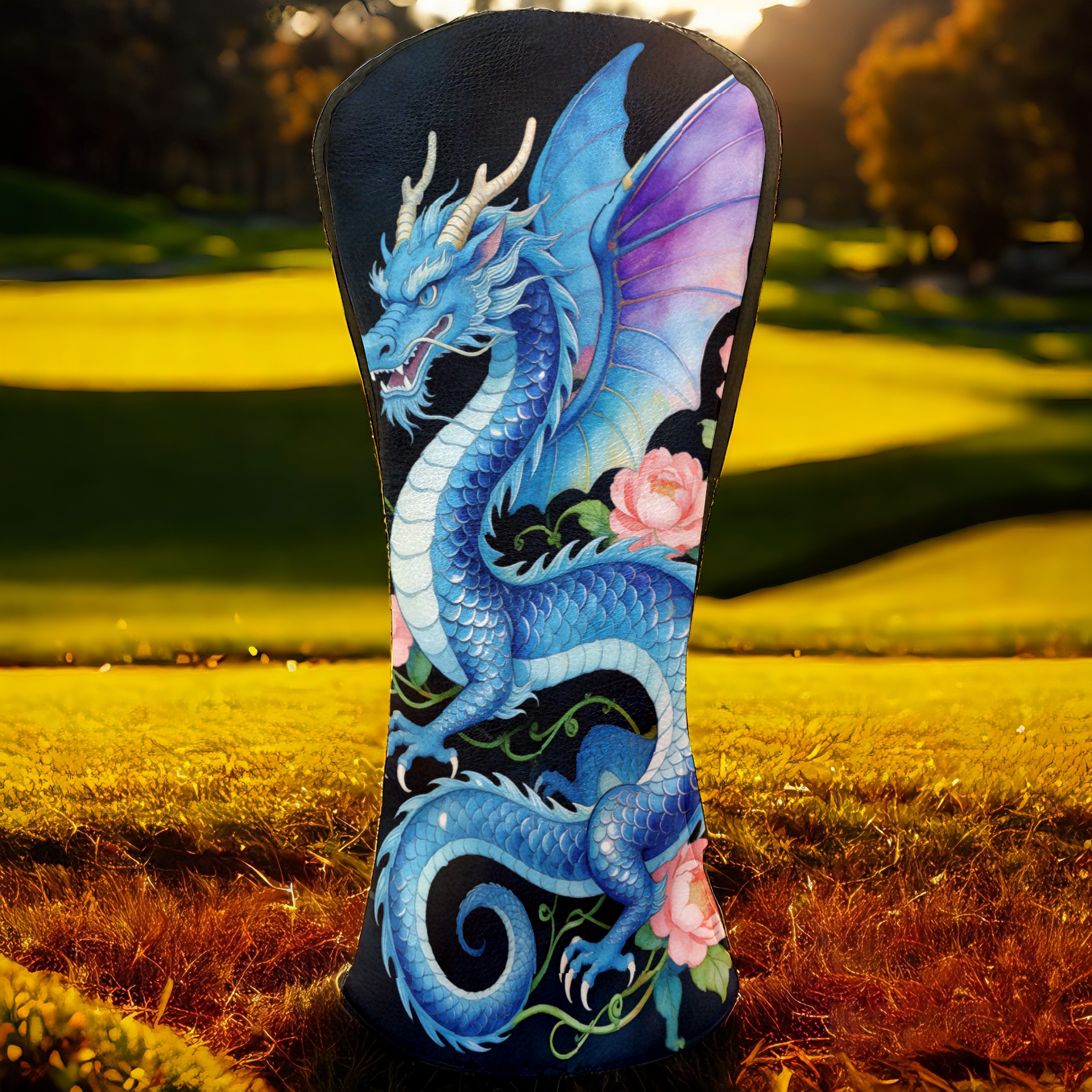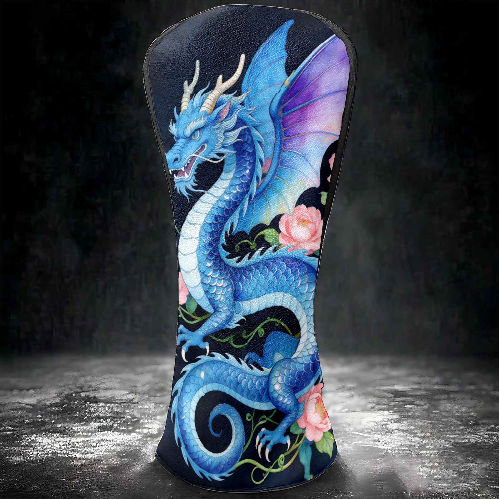 Golf Driver Head Cover Leather Driver Fairway Headcover, Premium Golf Club Covers with Plush Lining Girls Womens Mens Head Cover for Golf Clubs (Blue Dragon Floral)