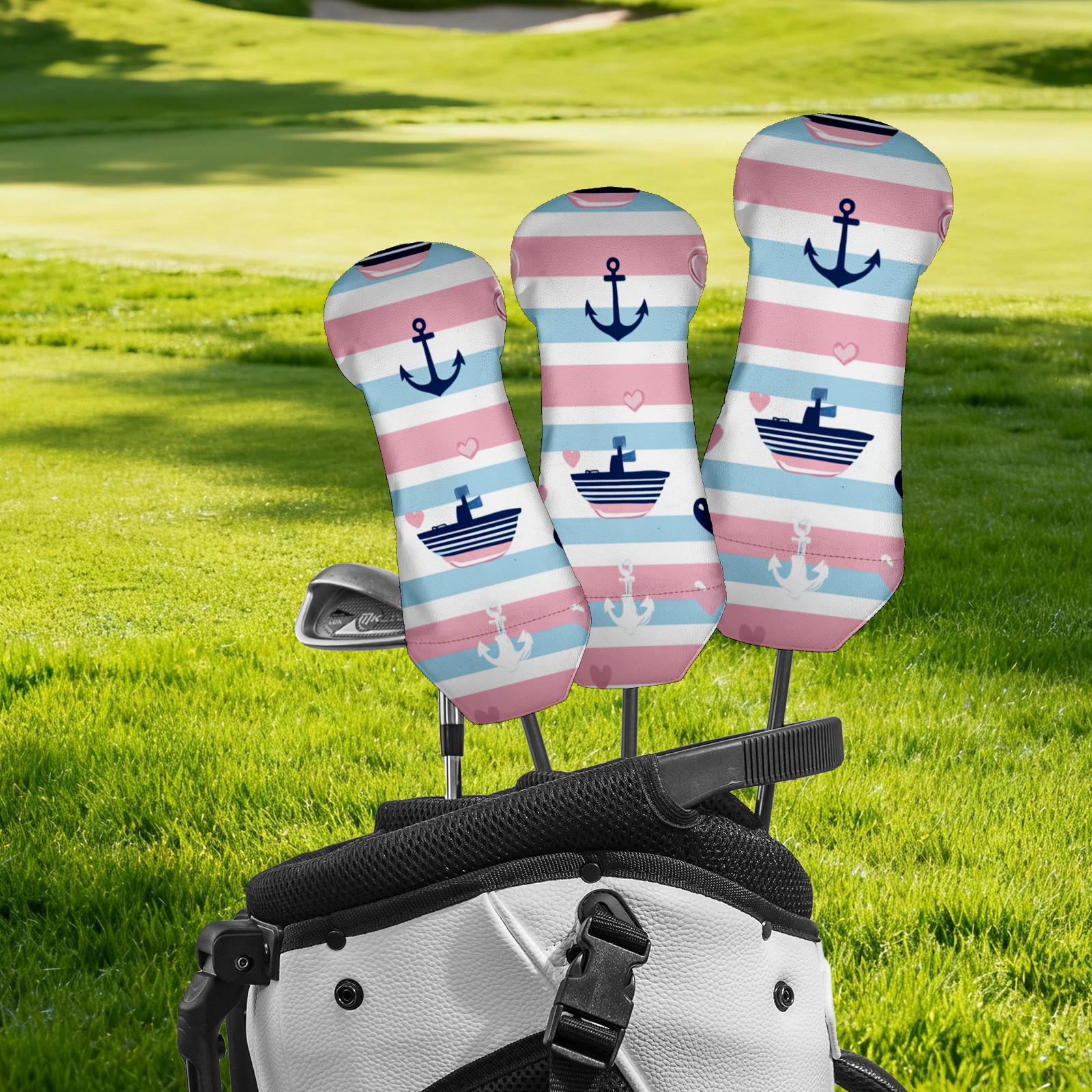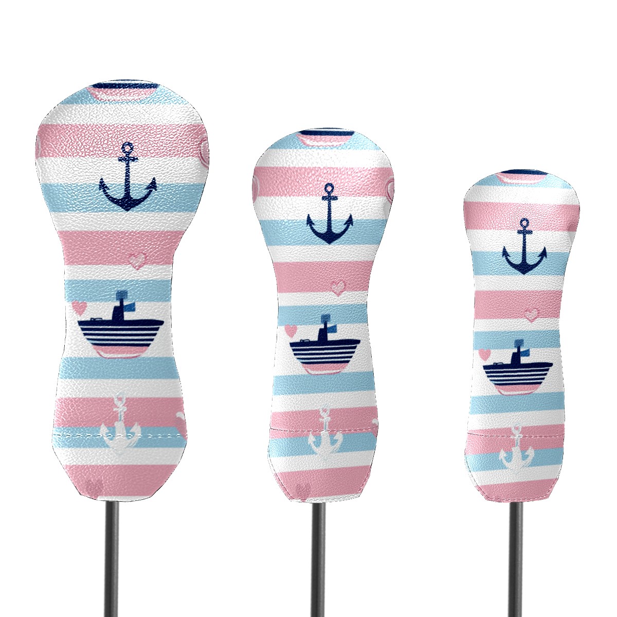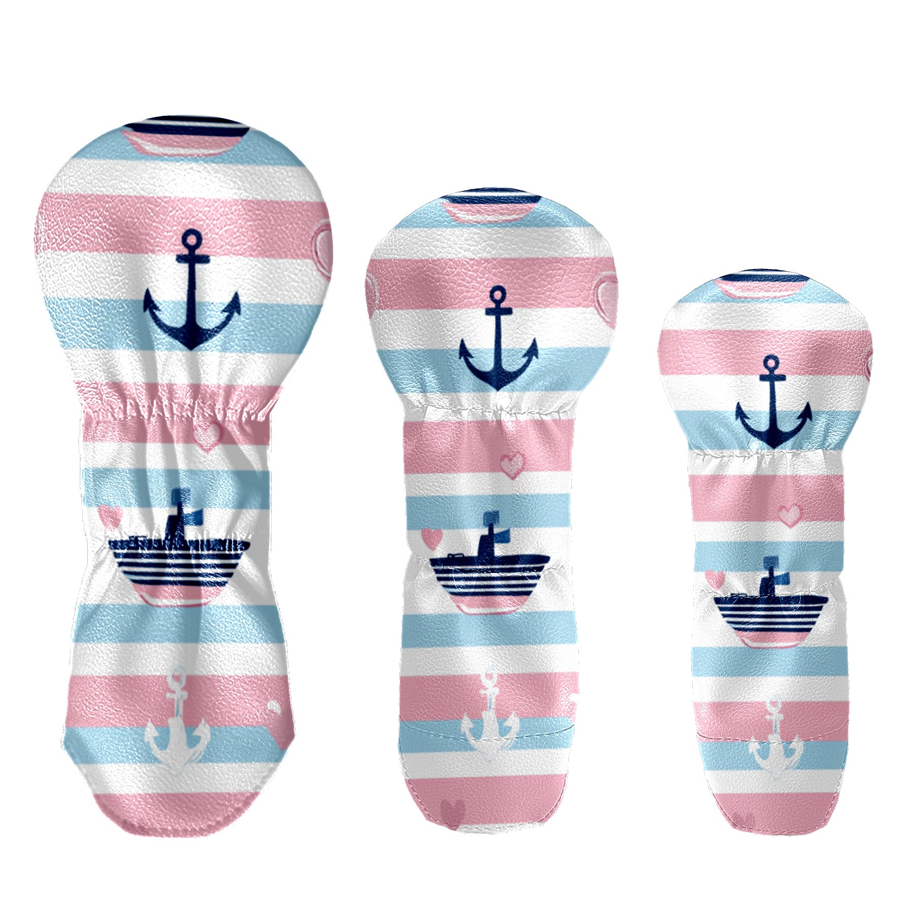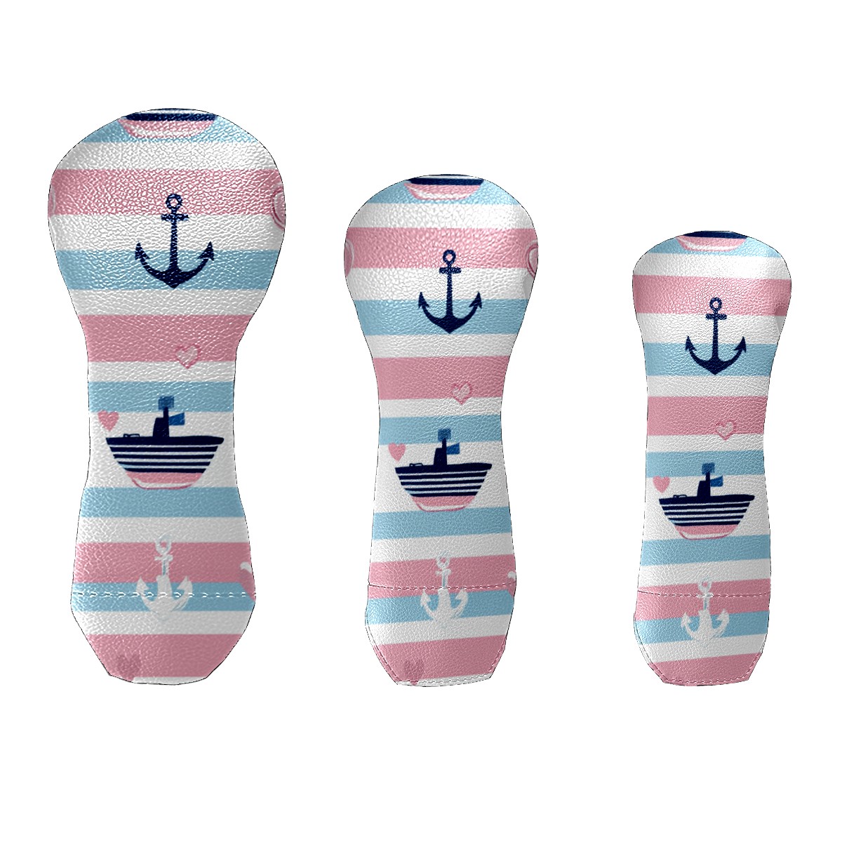 Golf Head Cover Waterproof Leather Headcovers for Driver Golf Accessories Golf Christmas Gift for Golfers 1/3/5 Hybrid Fairway Wood Cover SailboatAnchor_PastelStripe