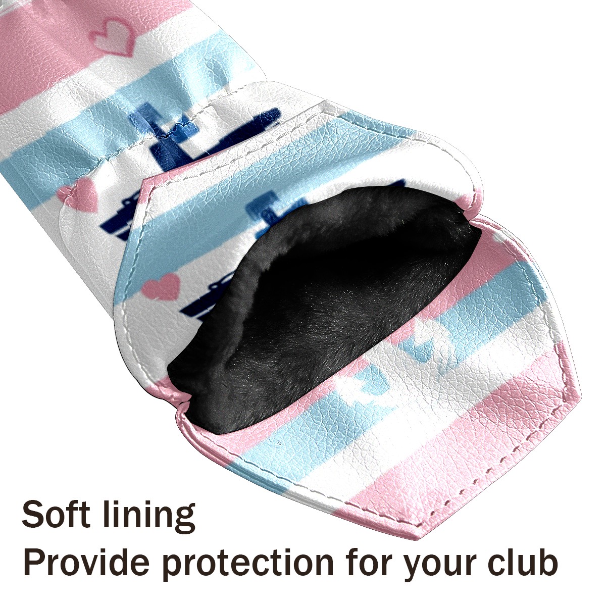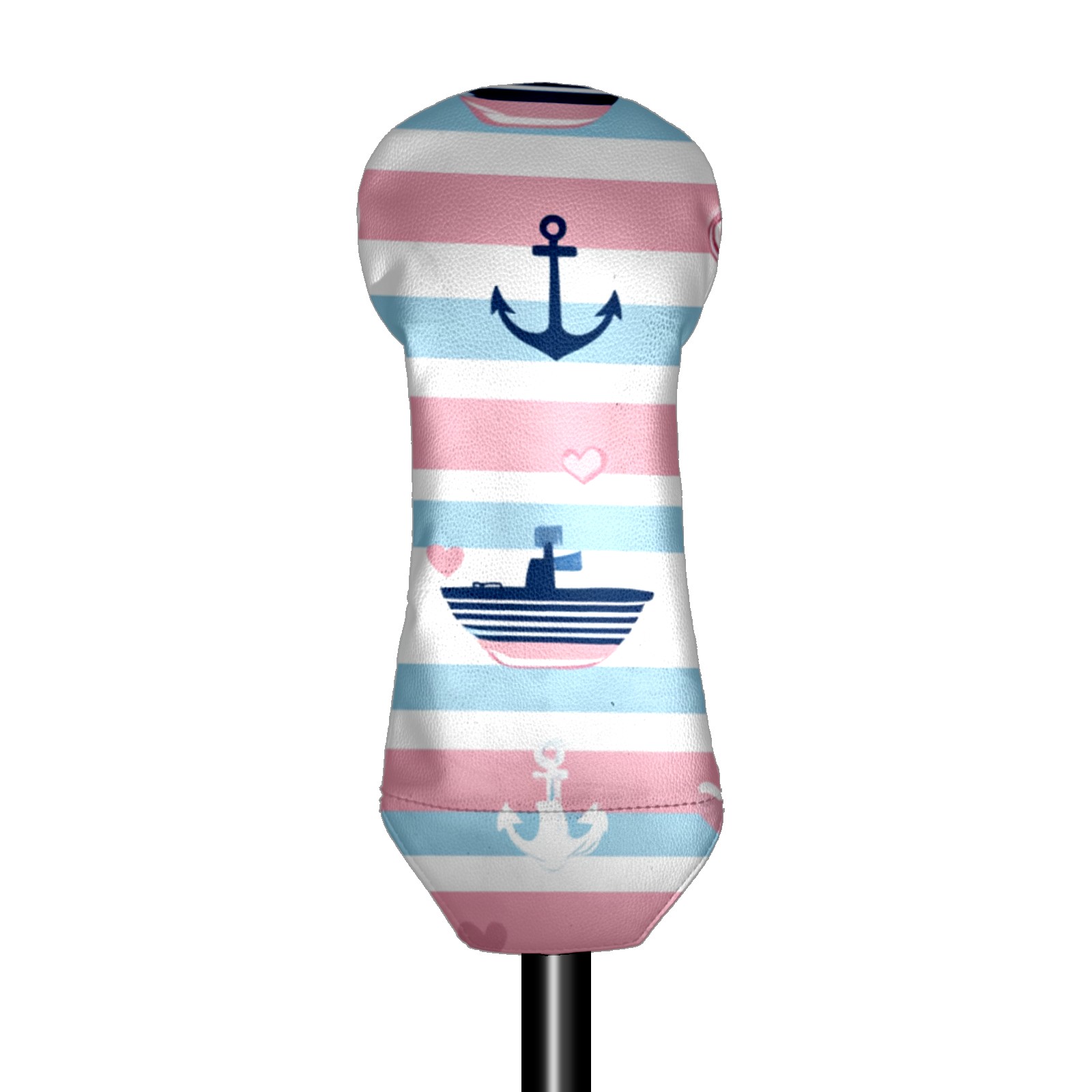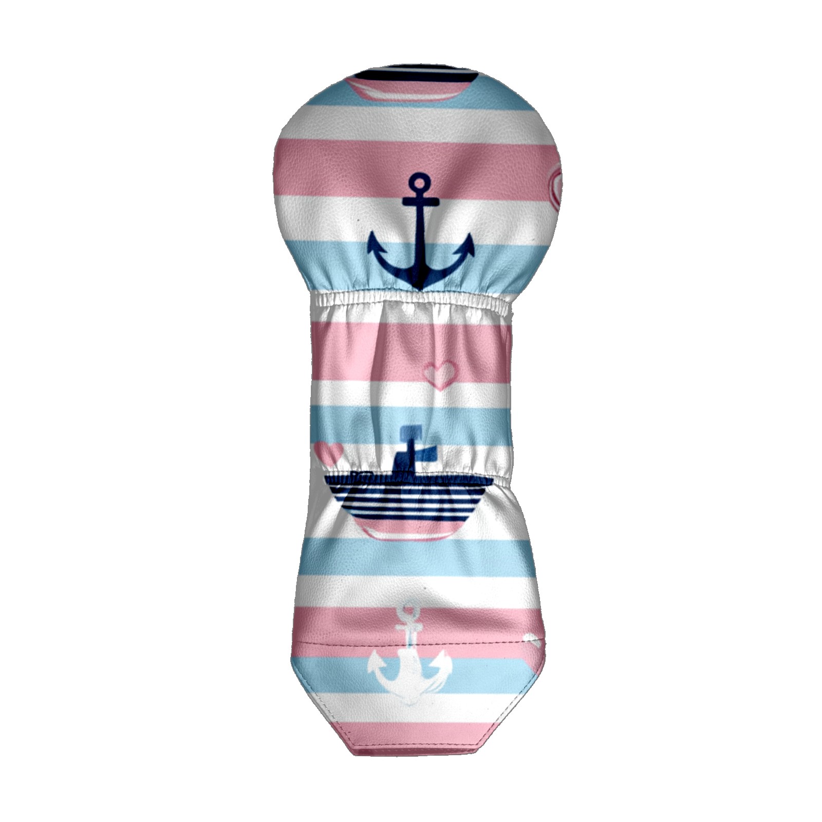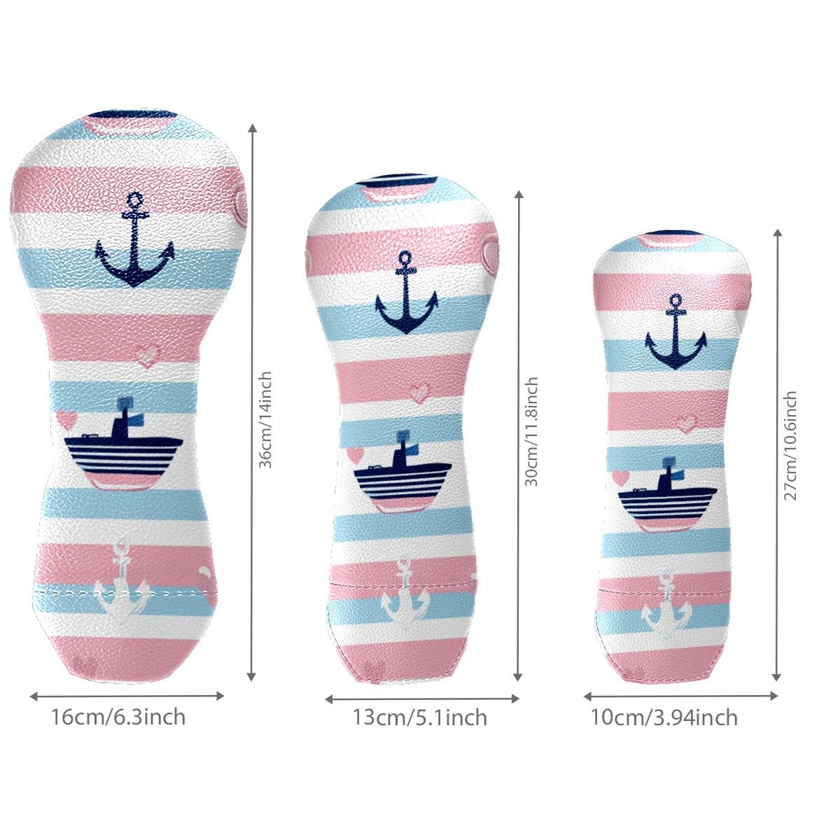Golf Head Cover Waterproof Leather Headcovers for Driver Golf Accessories Golf Christmas Gift for Golfers 1/3/5 Hybrid Fairway Wood Cover SailboatAnchor_PastelStripe