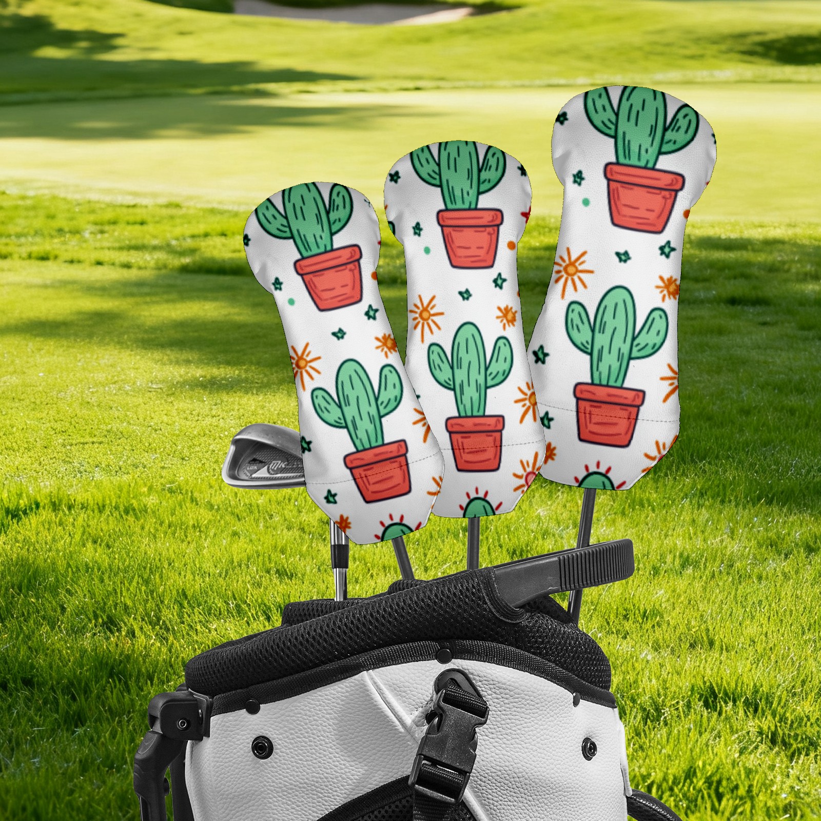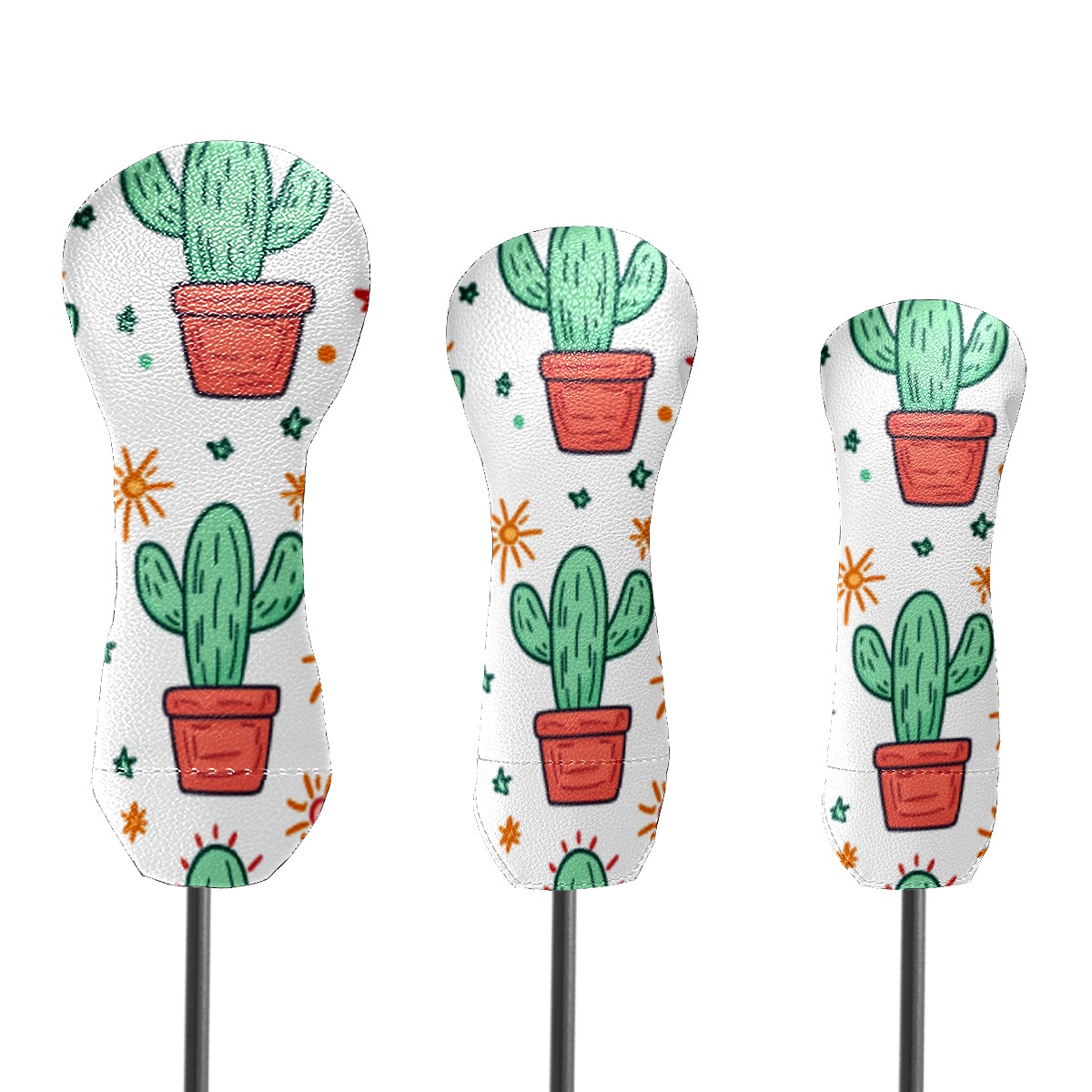 Golf Head Cover Waterproof Leather Headcovers for Driver Golf Accessories Golf Christmas Gift for Golfers 1/3/5 Hybrid Fairway Wood Cover CactusSucculent_ColorfulPot