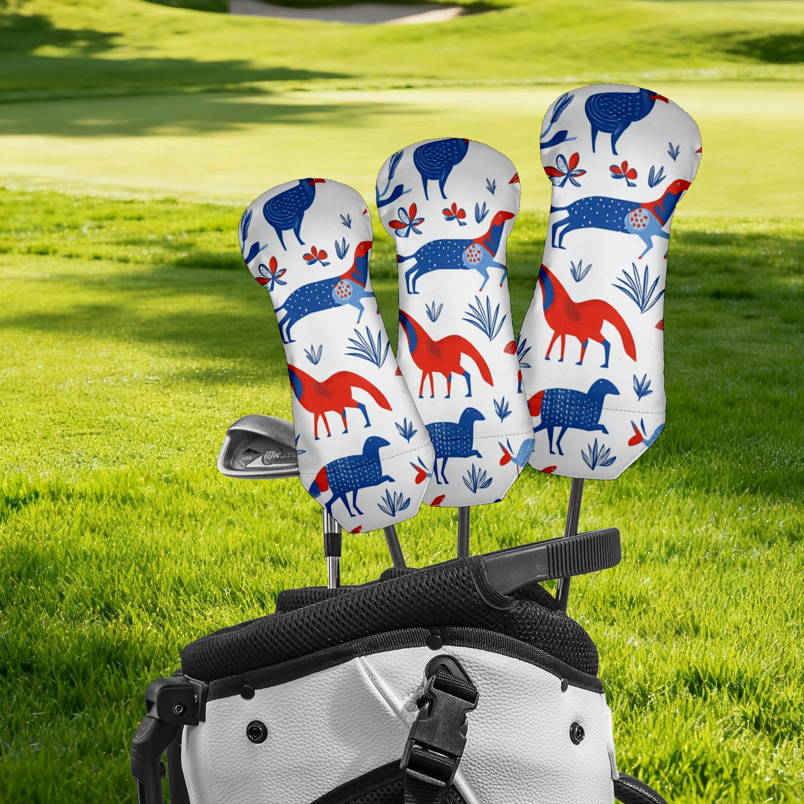 Golf Head Cover Waterproof Leather Headcovers for Driver Golf Accessories Golf Christmas Gift for Golfers 1/3/5 Hybrid Fairway Wood Cover FolkAnimal_ColorfulBoho