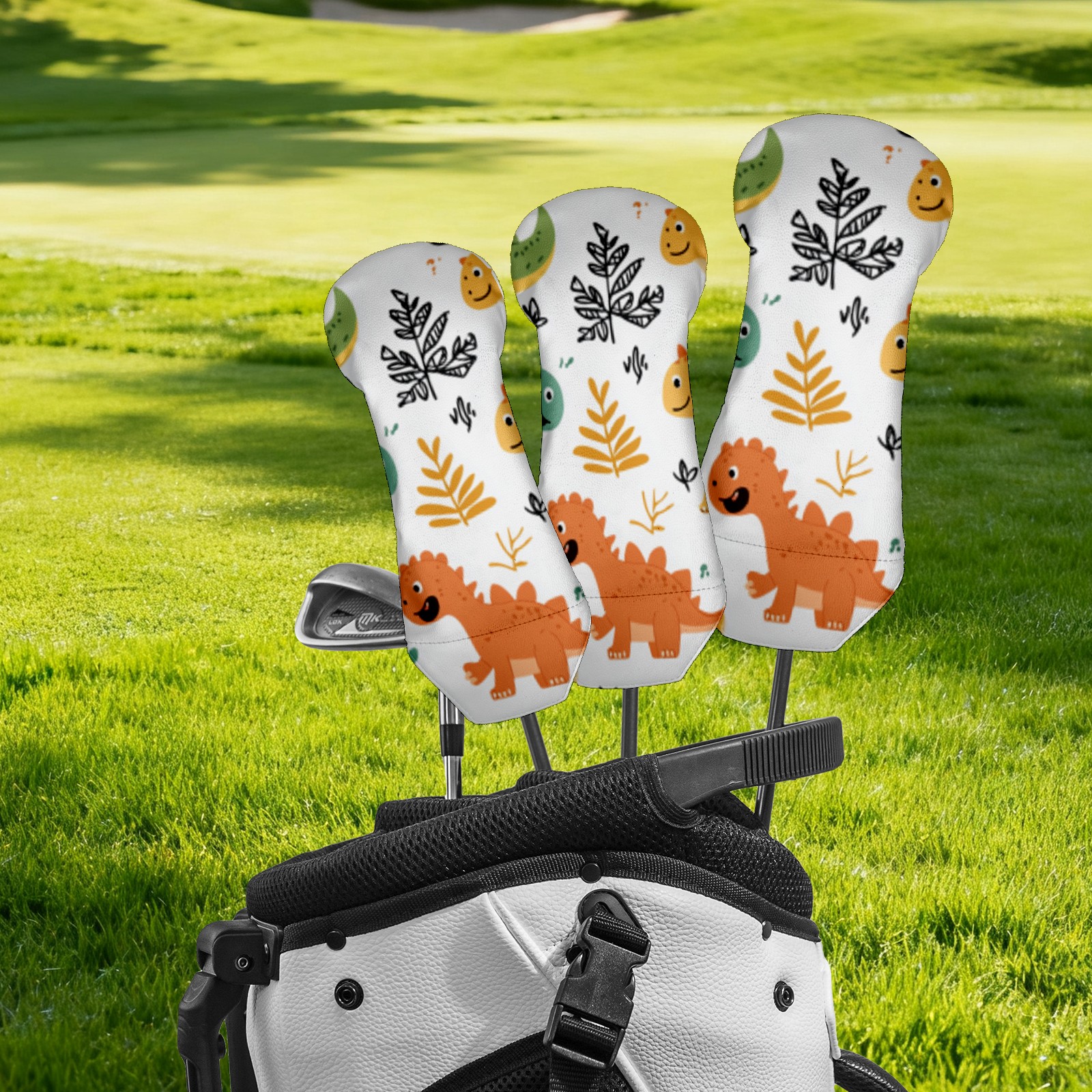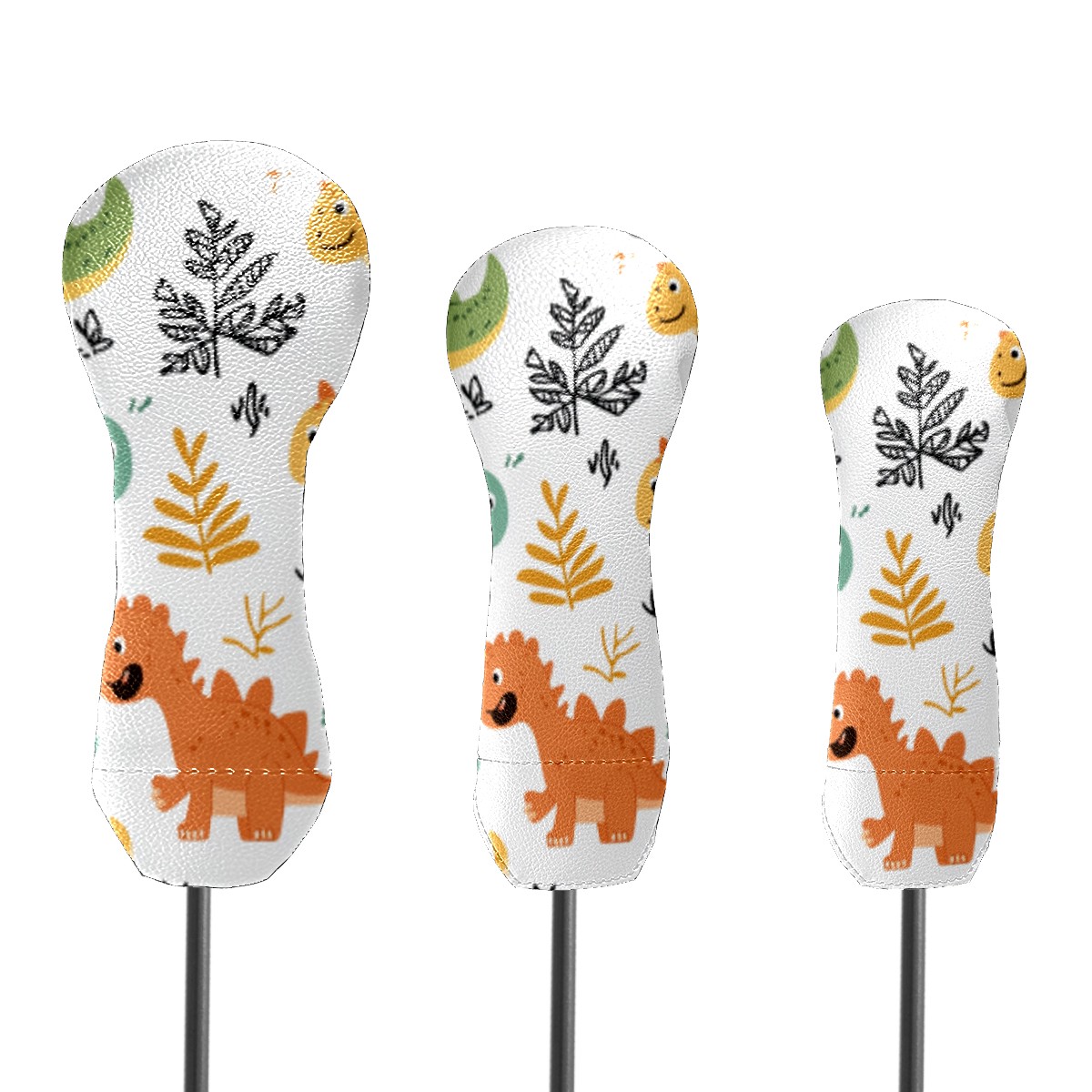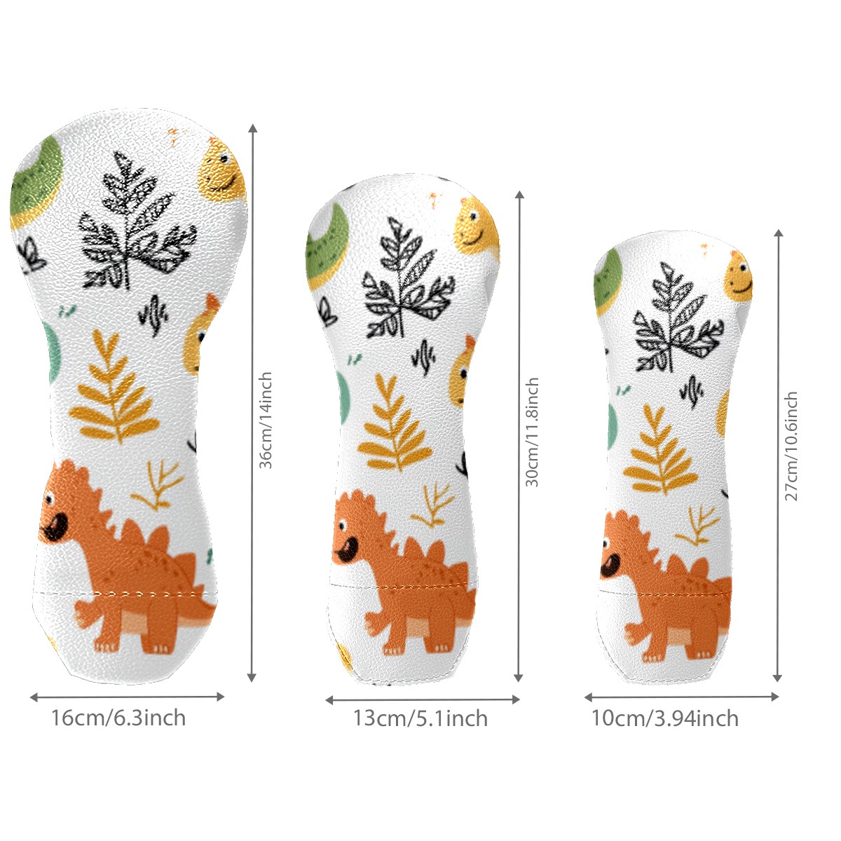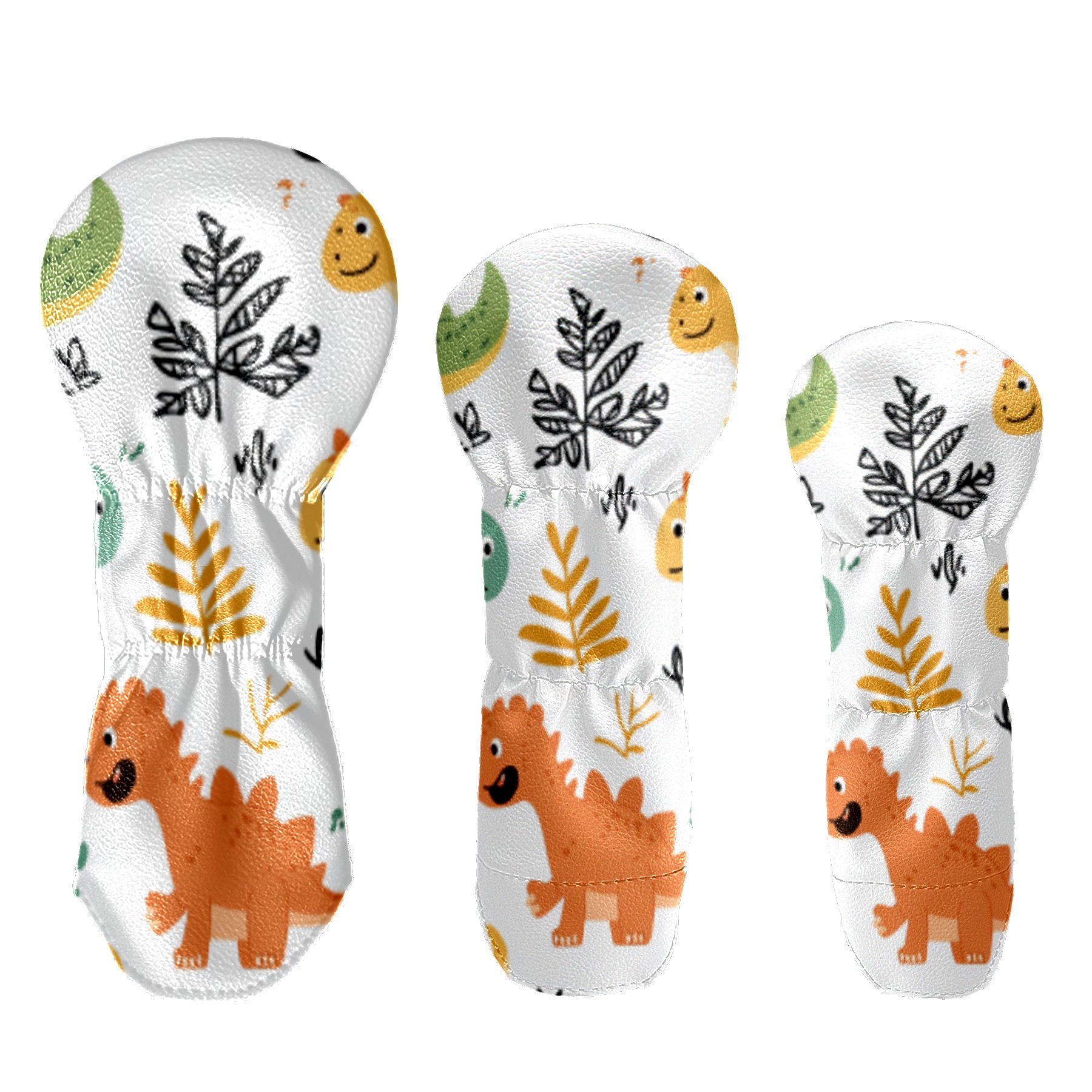 Golf Head Cover Waterproof Leather Headcovers for Driver Golf Accessories Golf Christmas Gift for Golfers 1/3/5 Hybrid Fairway Wood Cover CuteDinosaur_JunglePastel