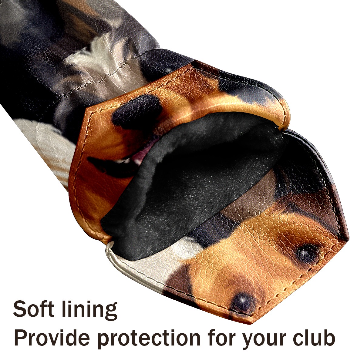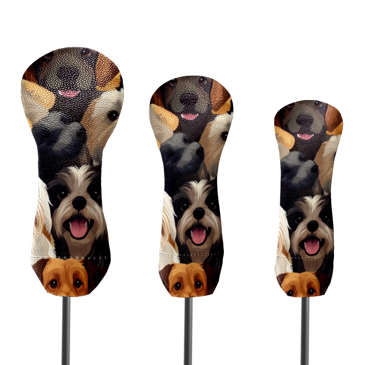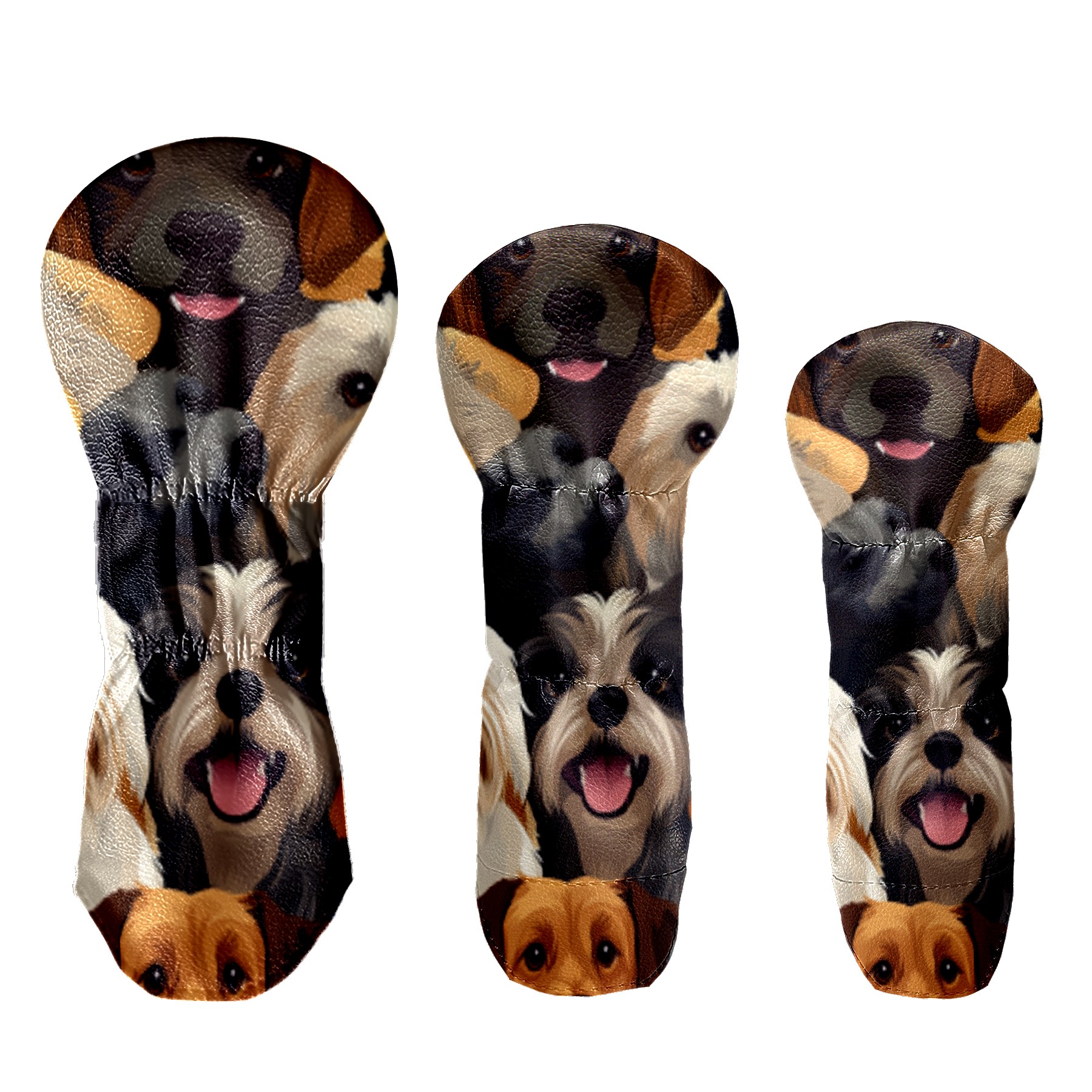 Golf Head Cover Waterproof Leather Headcovers for Driver Golf Accessories Golf Christmas Gift for Golfers 1/3/5 Hybrid Fairway Wood Cover DogParty_CheerfulCrowd