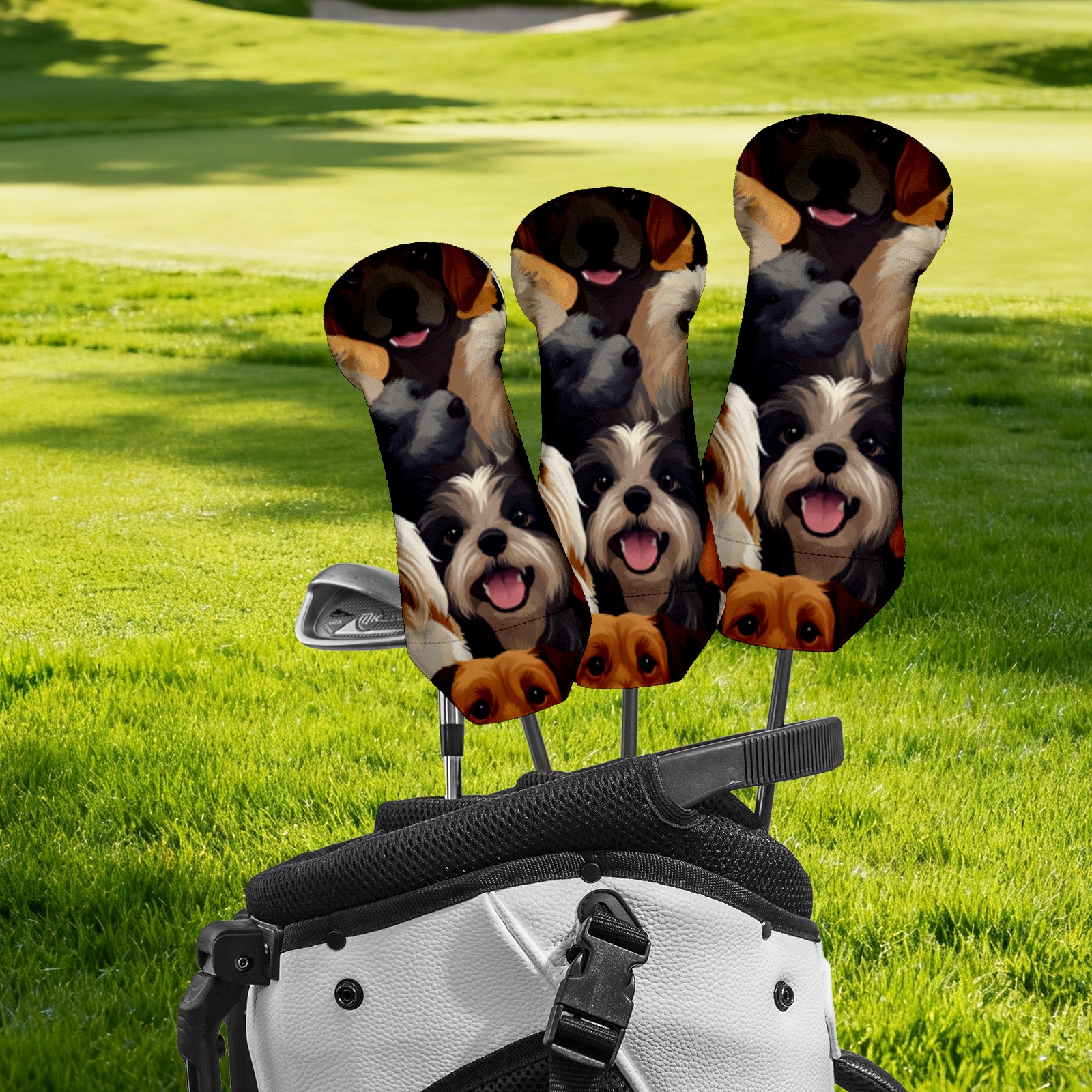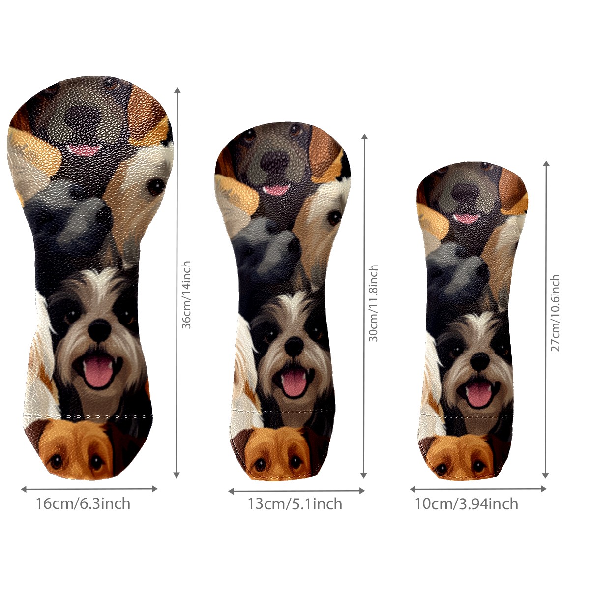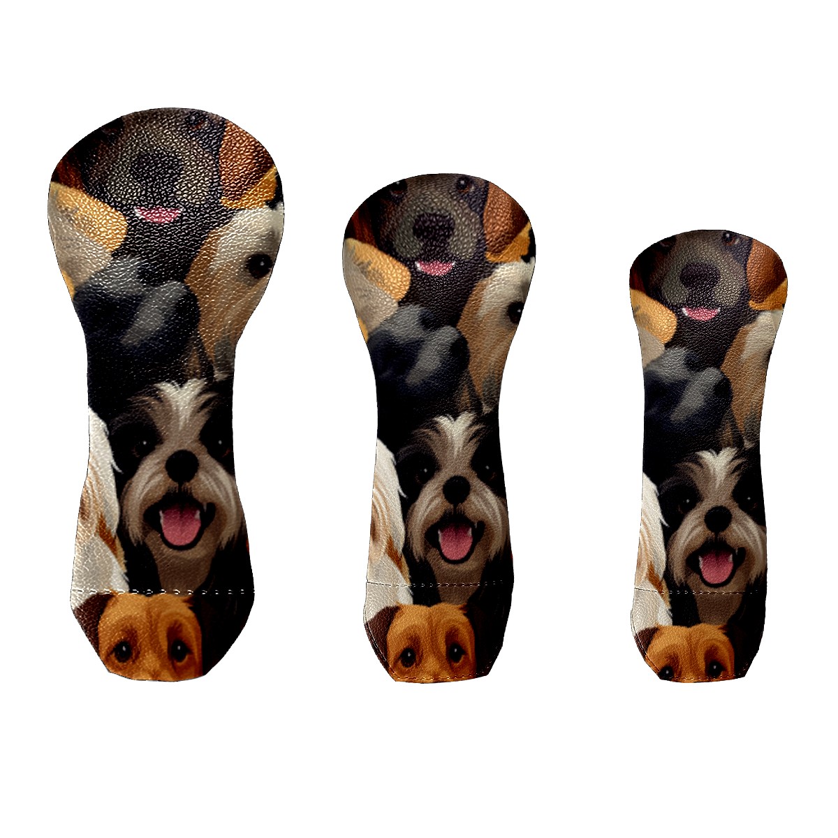 Golf Head Cover Waterproof Leather Headcovers for Driver Golf Accessories Golf Christmas Gift for Golfers 1/3/5 Hybrid Fairway Wood Cover DogParty_CheerfulCrowd