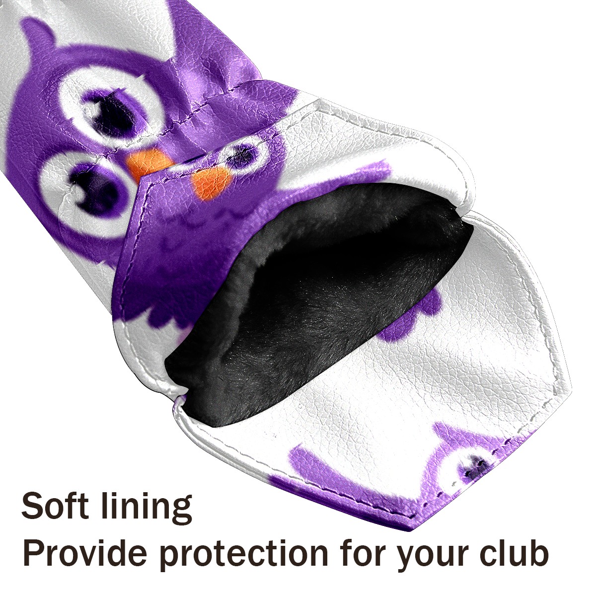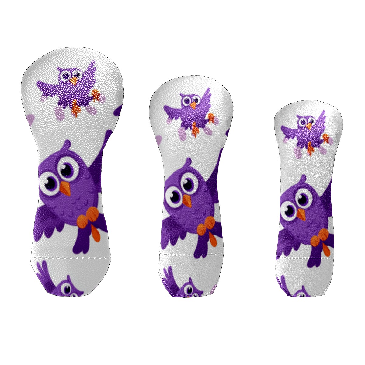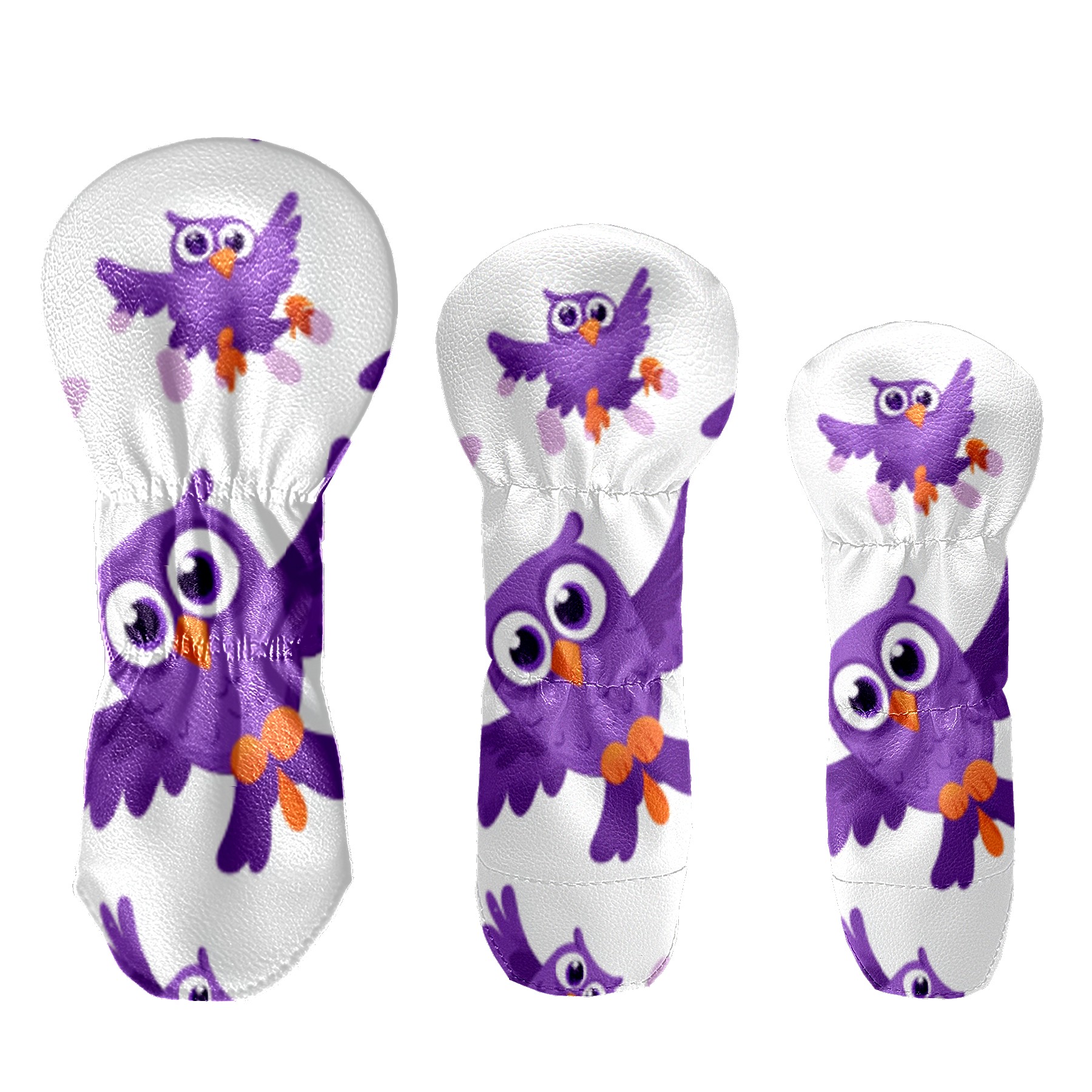 Golf Head Cover Waterproof Leather Headcovers for Driver Golf Accessories Golf Christmas Gift for Golfers 1/3/5 Hybrid Fairway Wood Cover Purple Owl