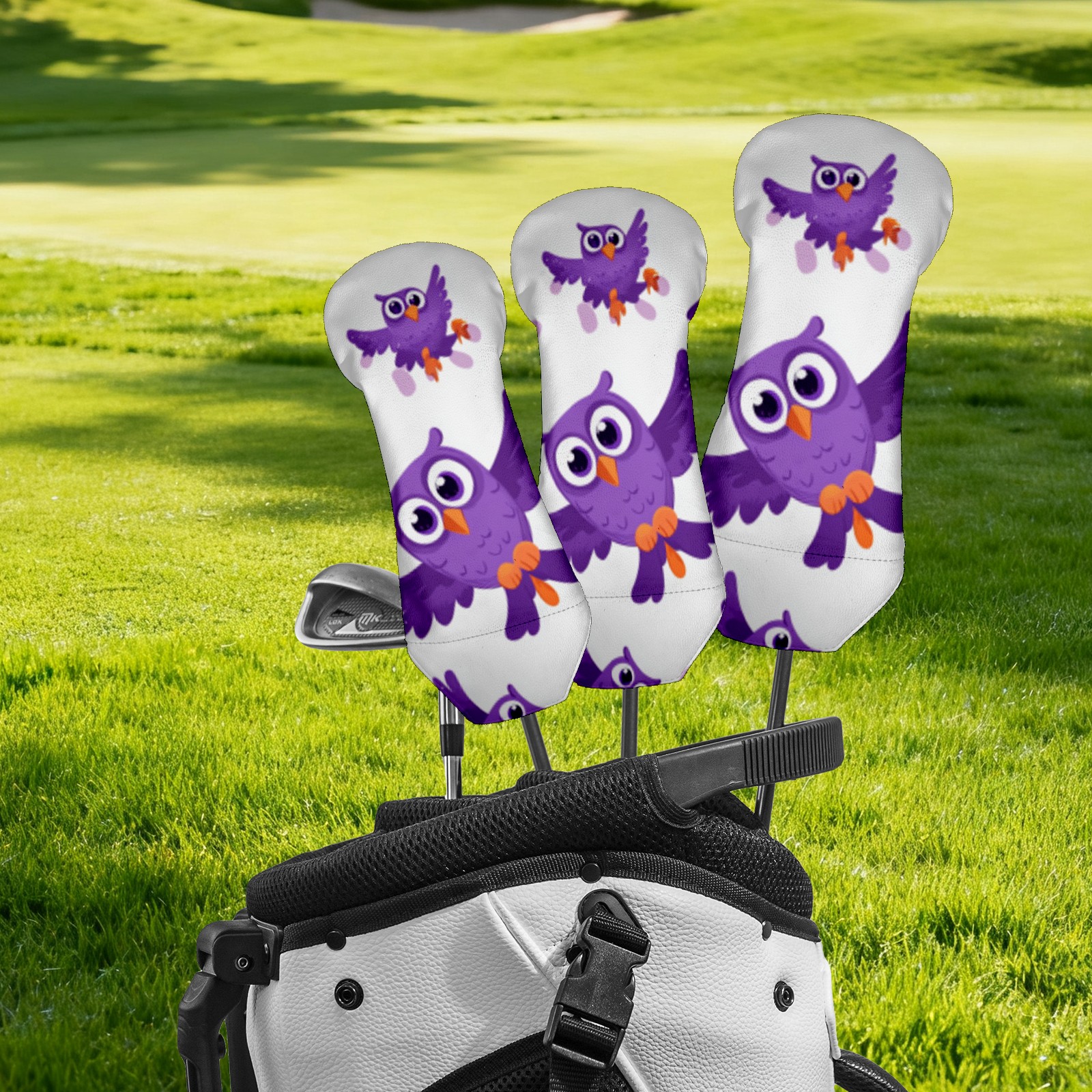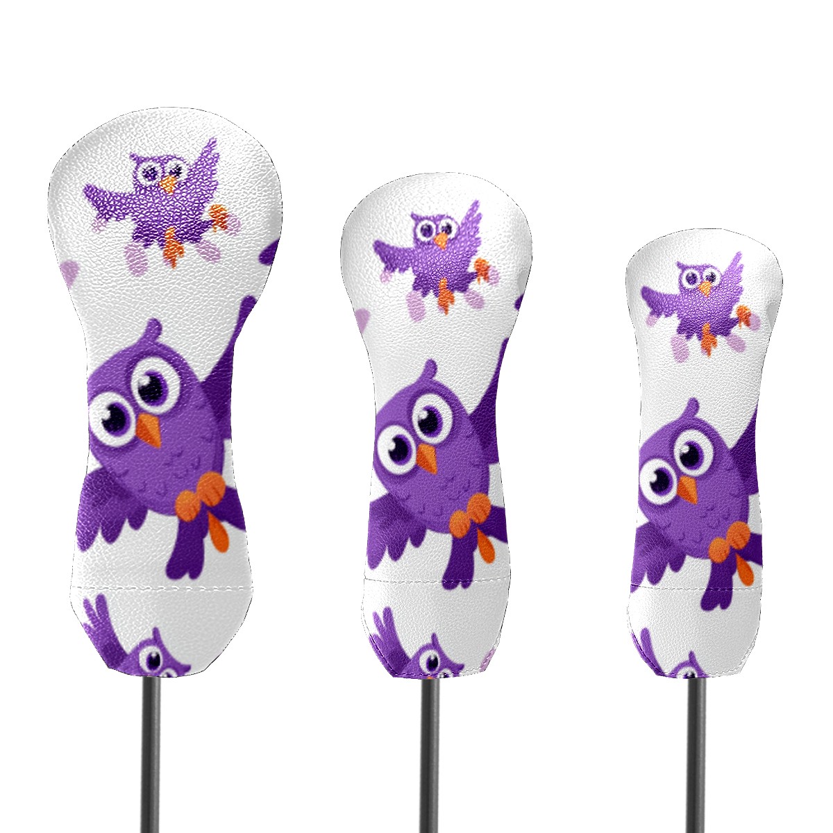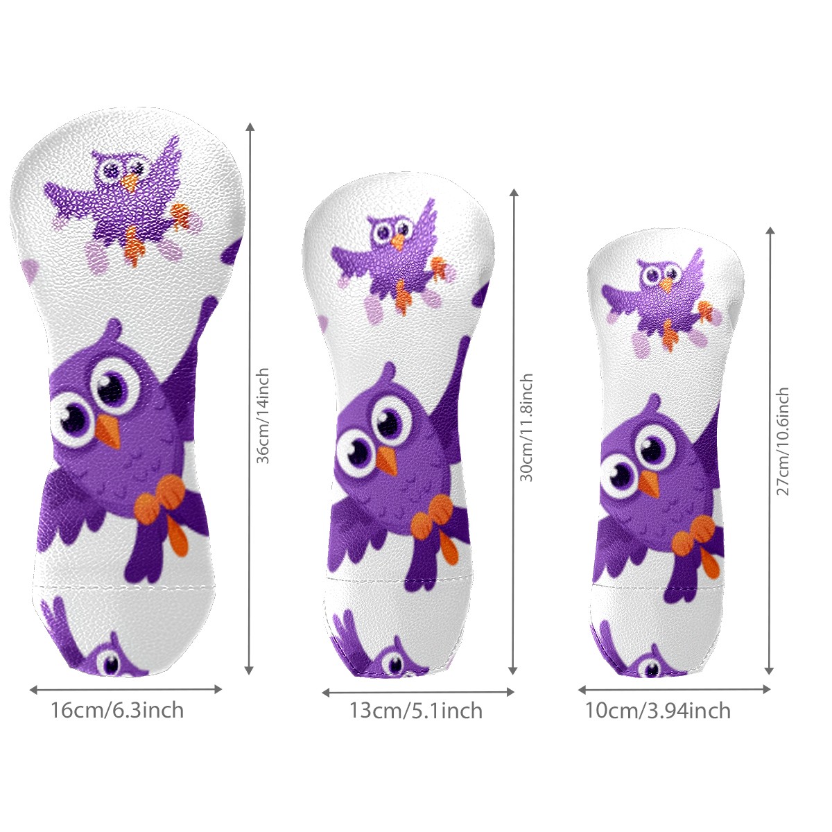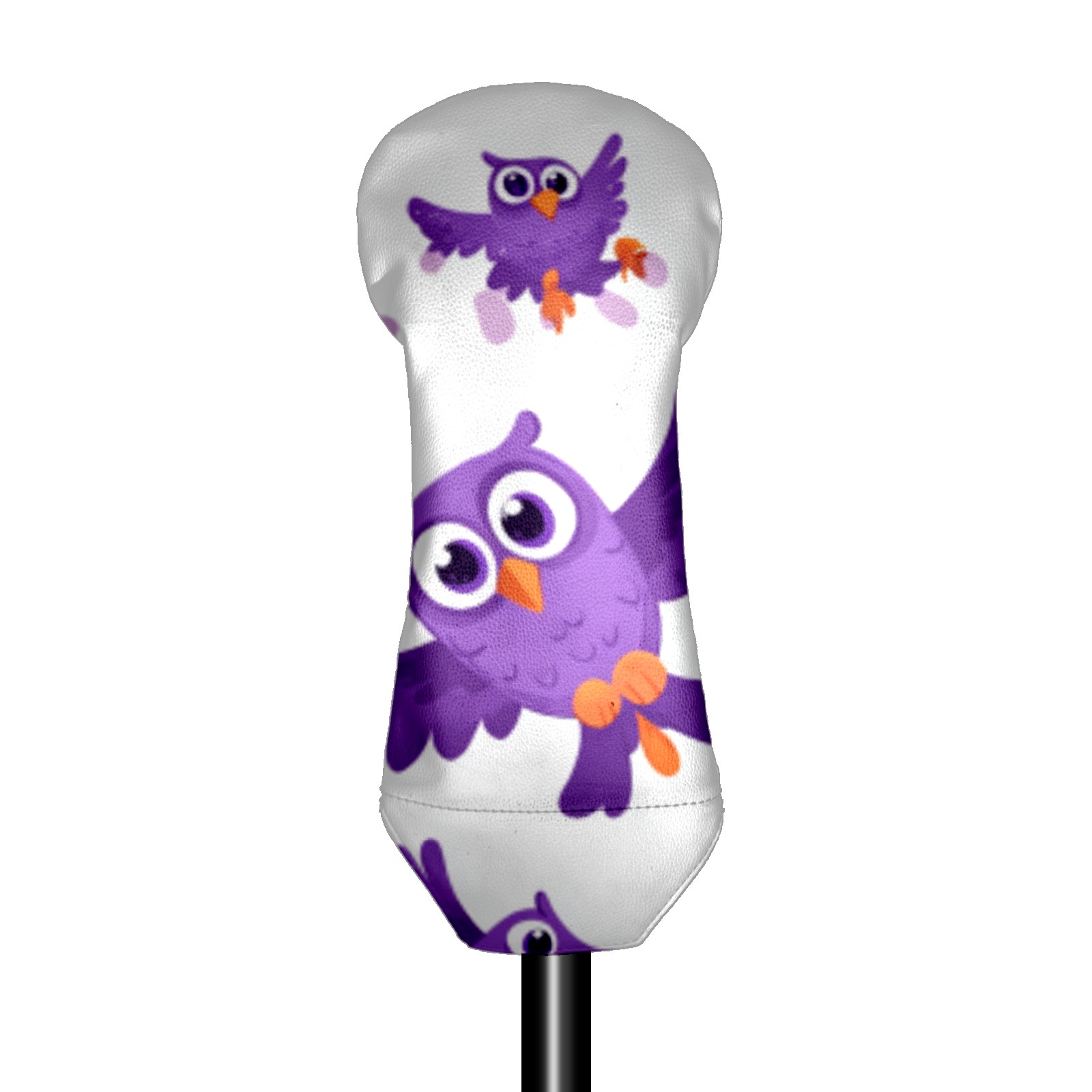 Golf Head Cover Waterproof Leather Headcovers for Driver Golf Accessories Golf Christmas Gift for Golfers 1/3/5 Hybrid Fairway Wood Cover Purple Owl