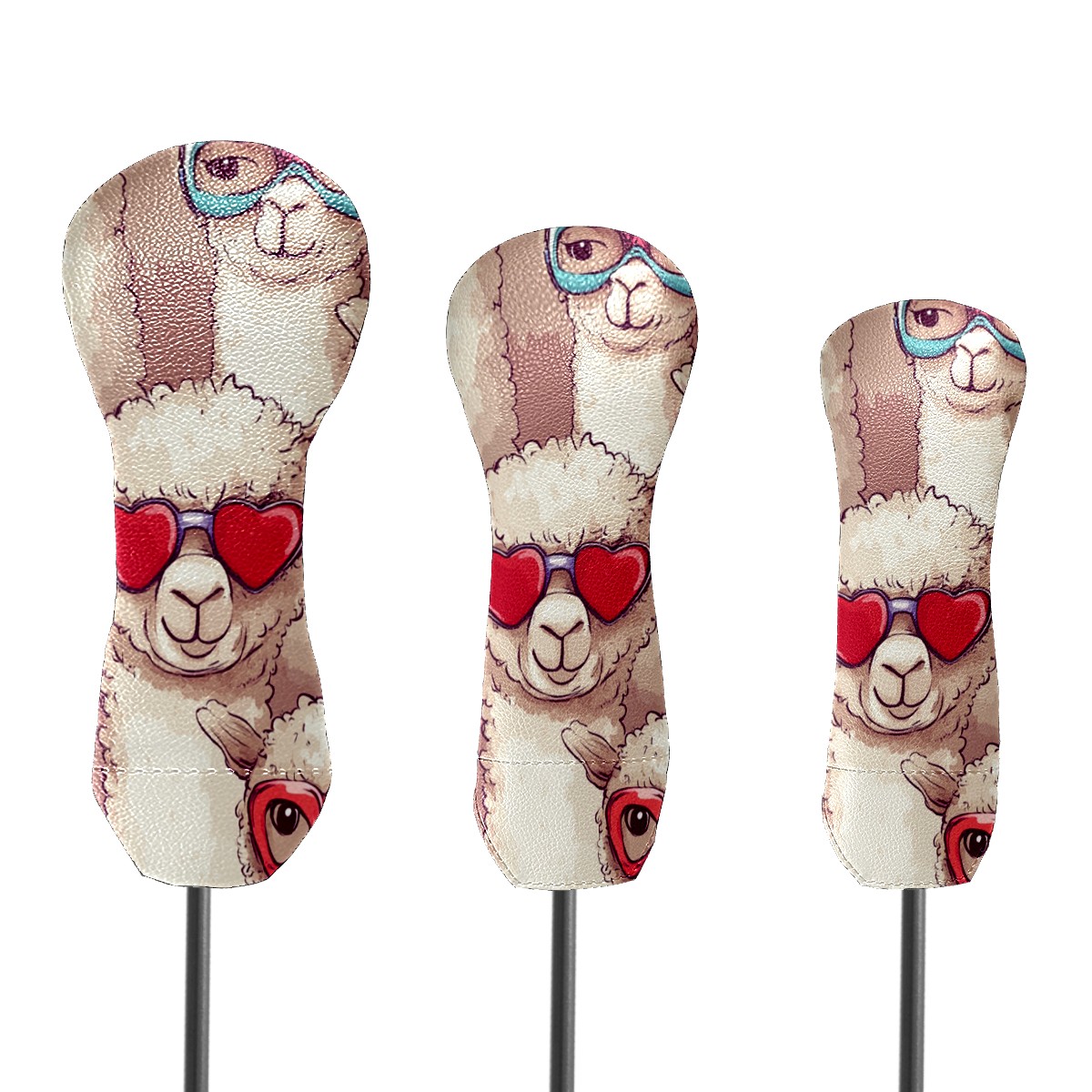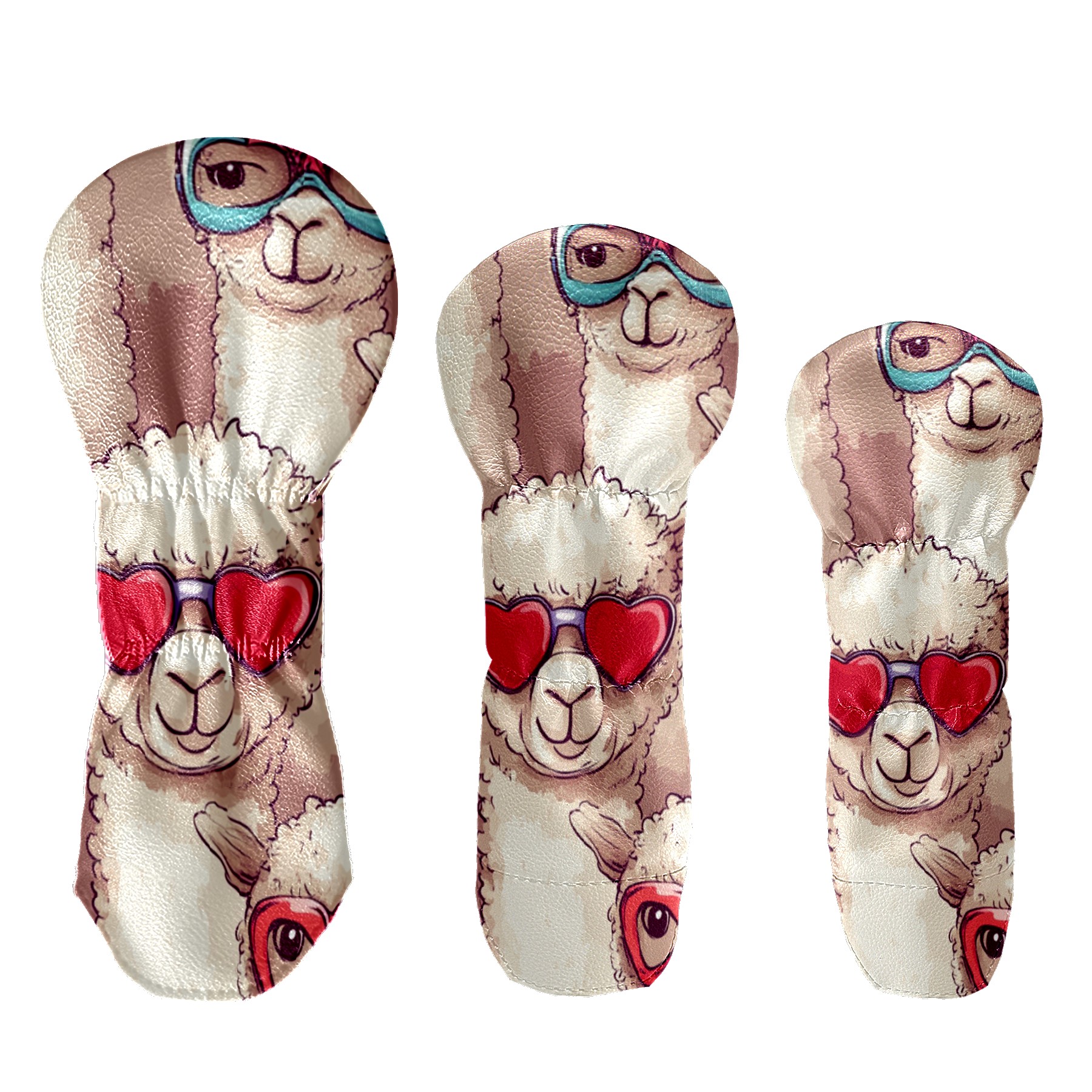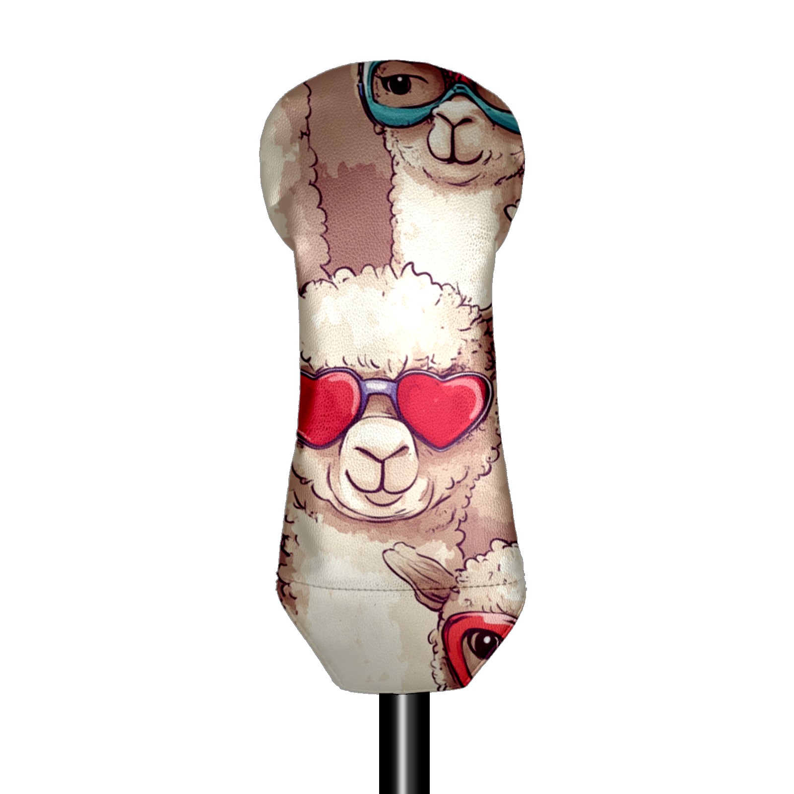 Golf Head Cover Waterproof Leather Headcovers for Driver Golf Accessories Golf Christmas Gift for Golfers 1/3/5 Hybrid Fairway Wood Cover AlpacaWithSunglasses_Pink_