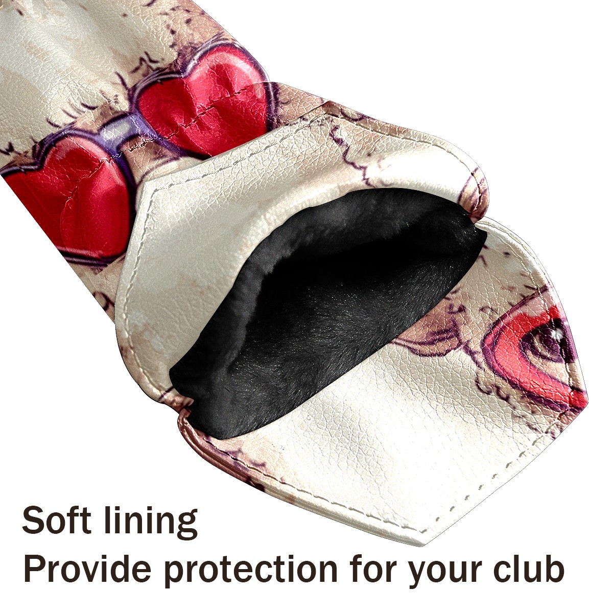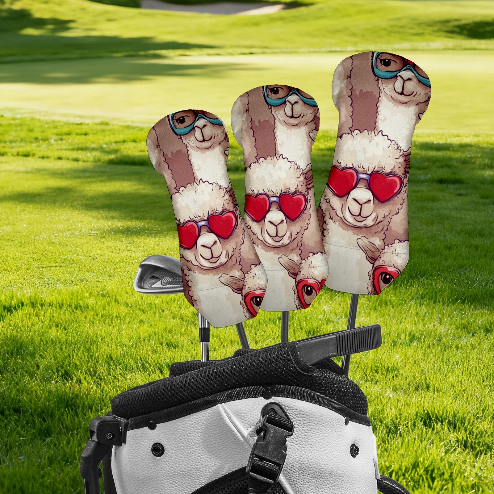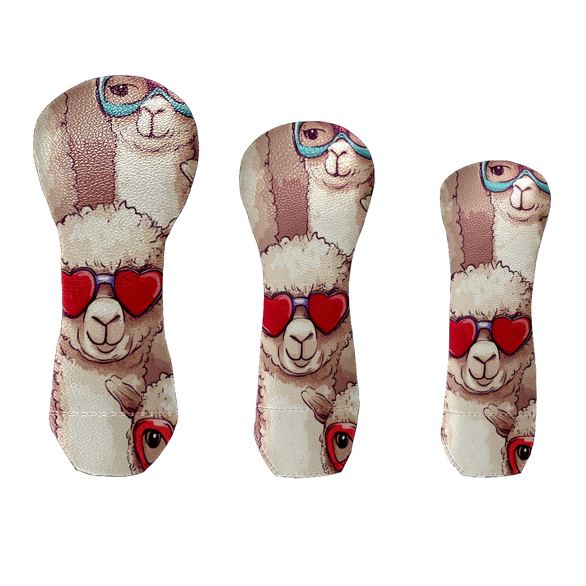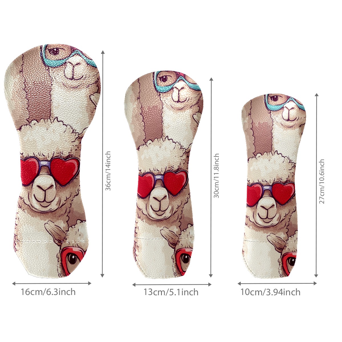 Golf Head Cover Waterproof Leather Headcovers for Driver Golf Accessories Golf Christmas Gift for Golfers 1/3/5 Hybrid Fairway Wood Cover AlpacaWithSunglasses_Pink_