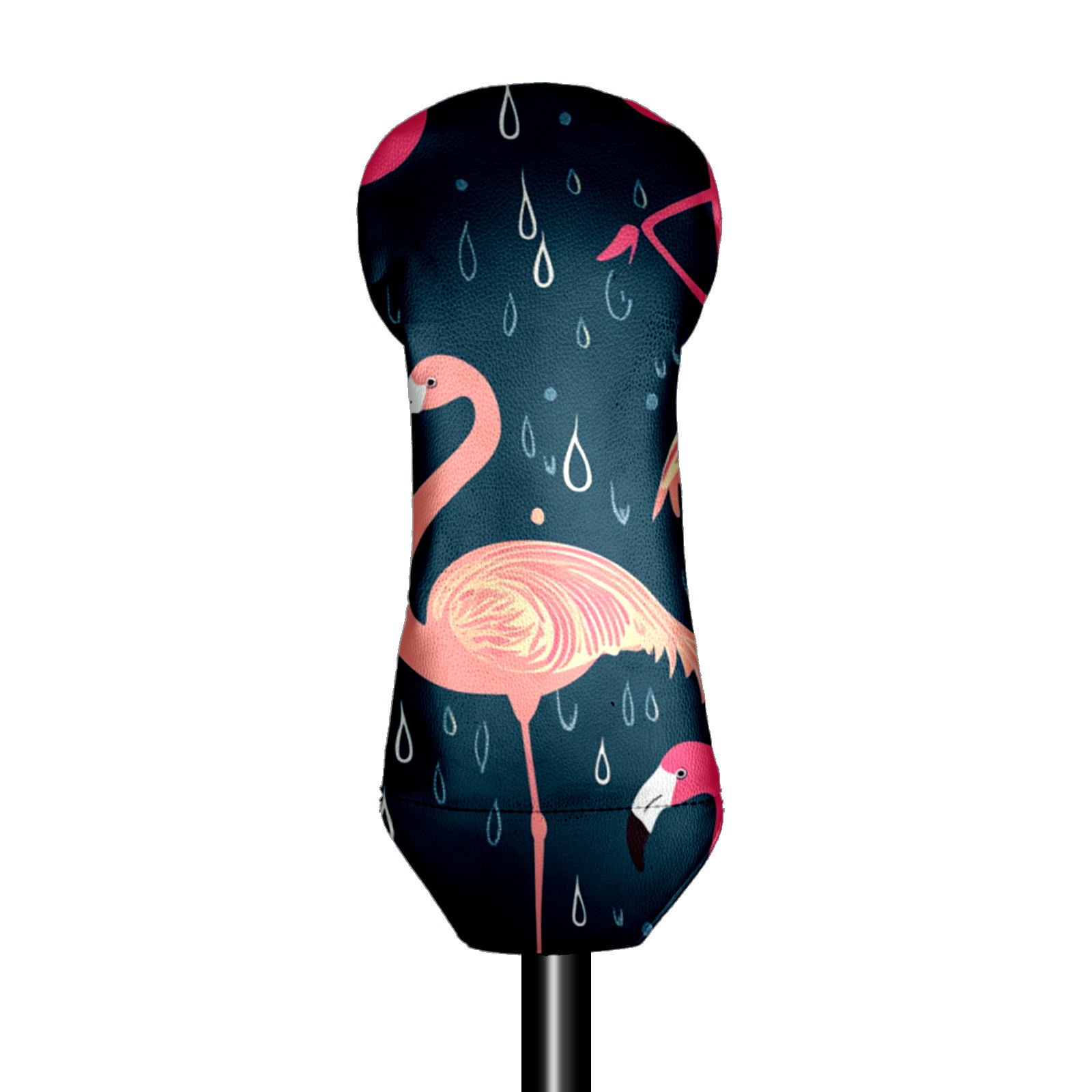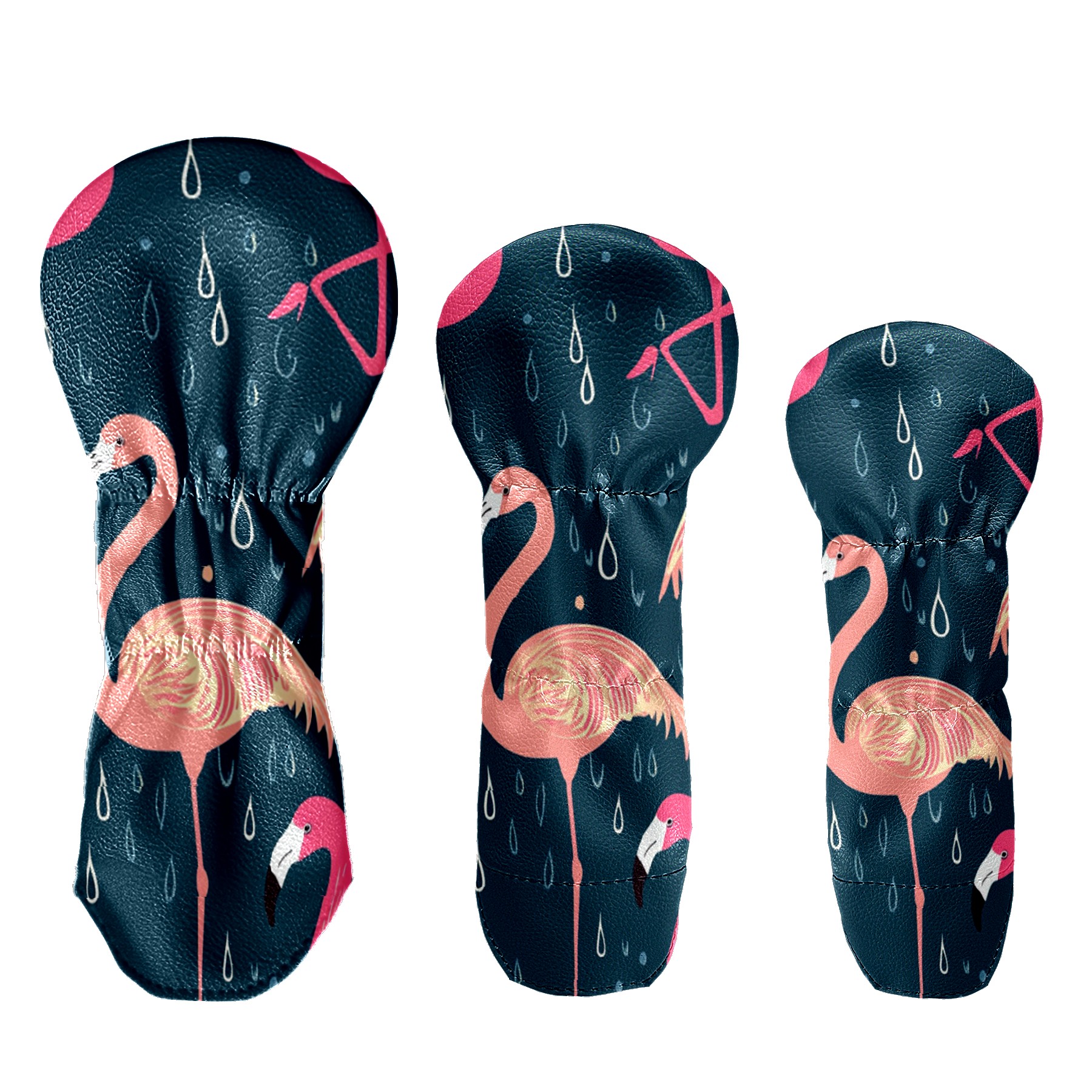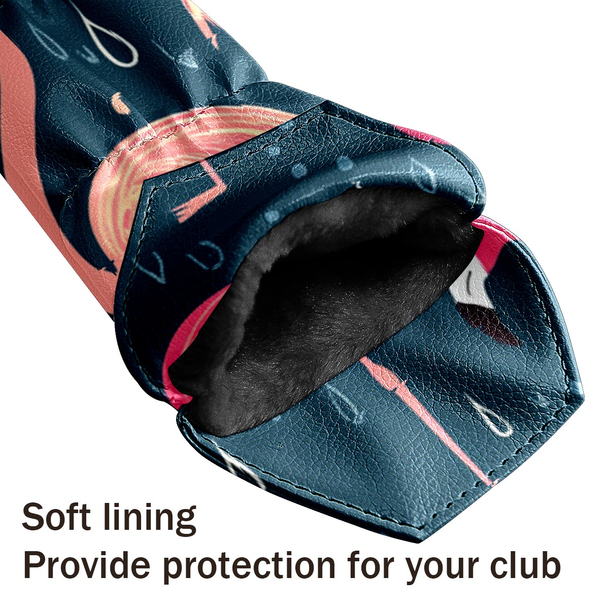 Golf Head Cover Waterproof Leather Headcovers for Driver Golf Accessories Golf Christmas Gift for Golfers 1/3/5 Hybrid Fairway Wood Cover PinkFlamingo