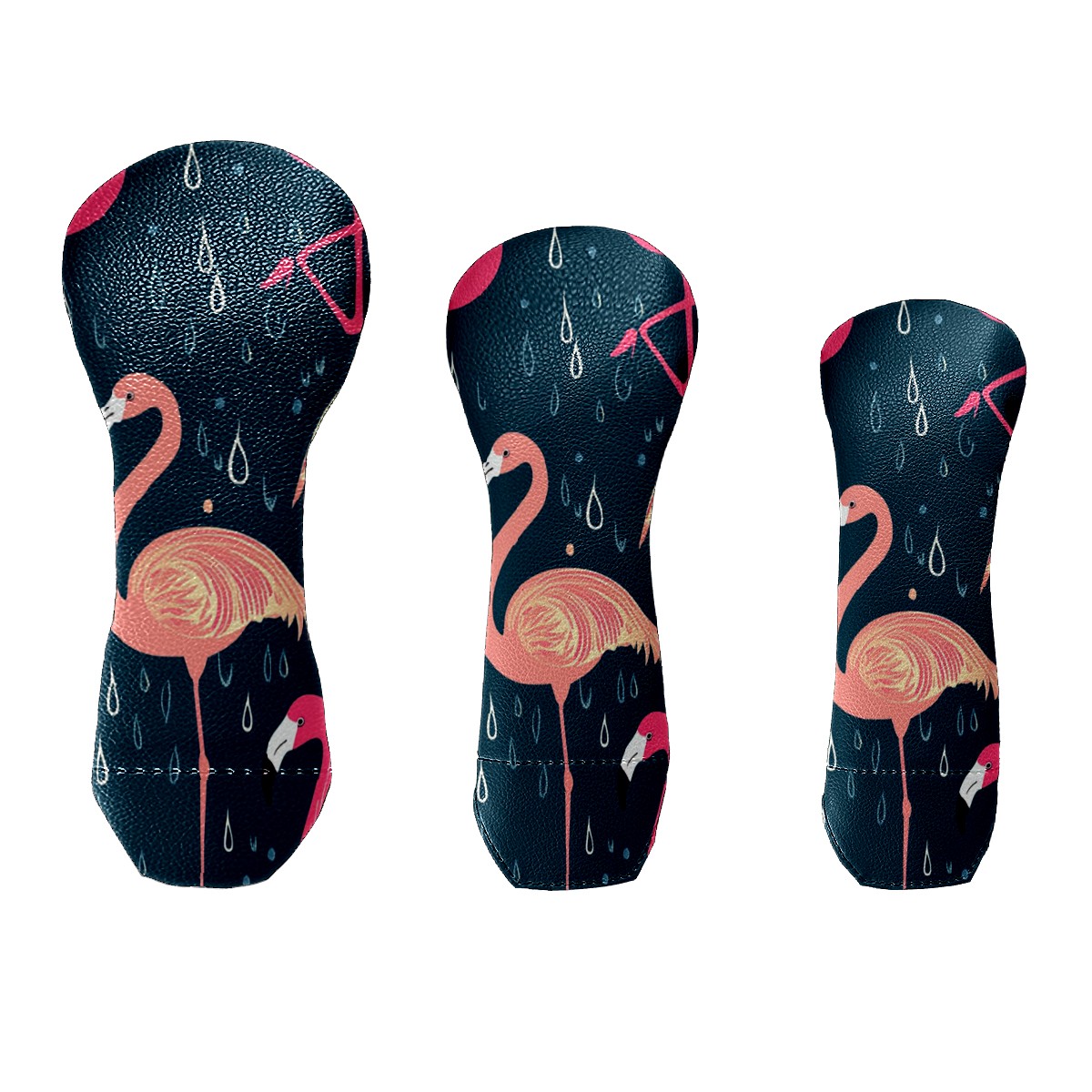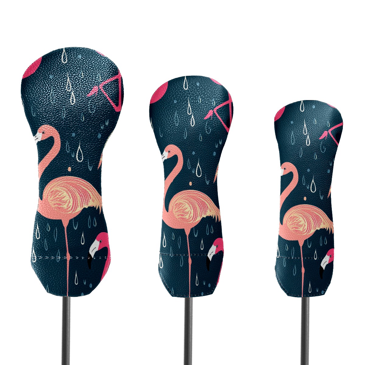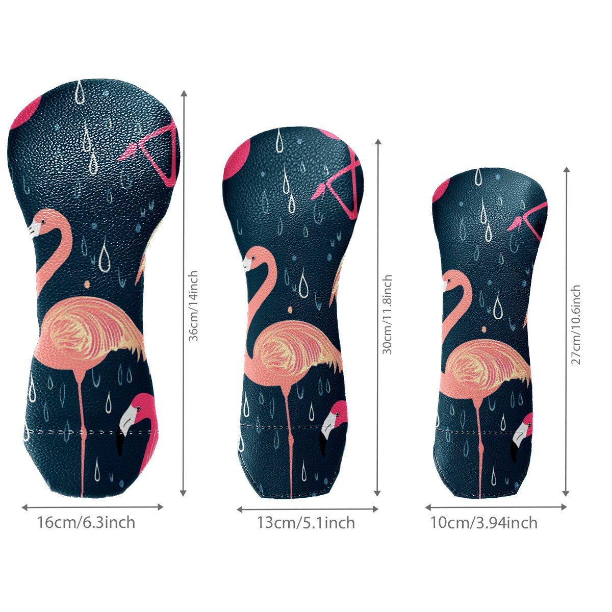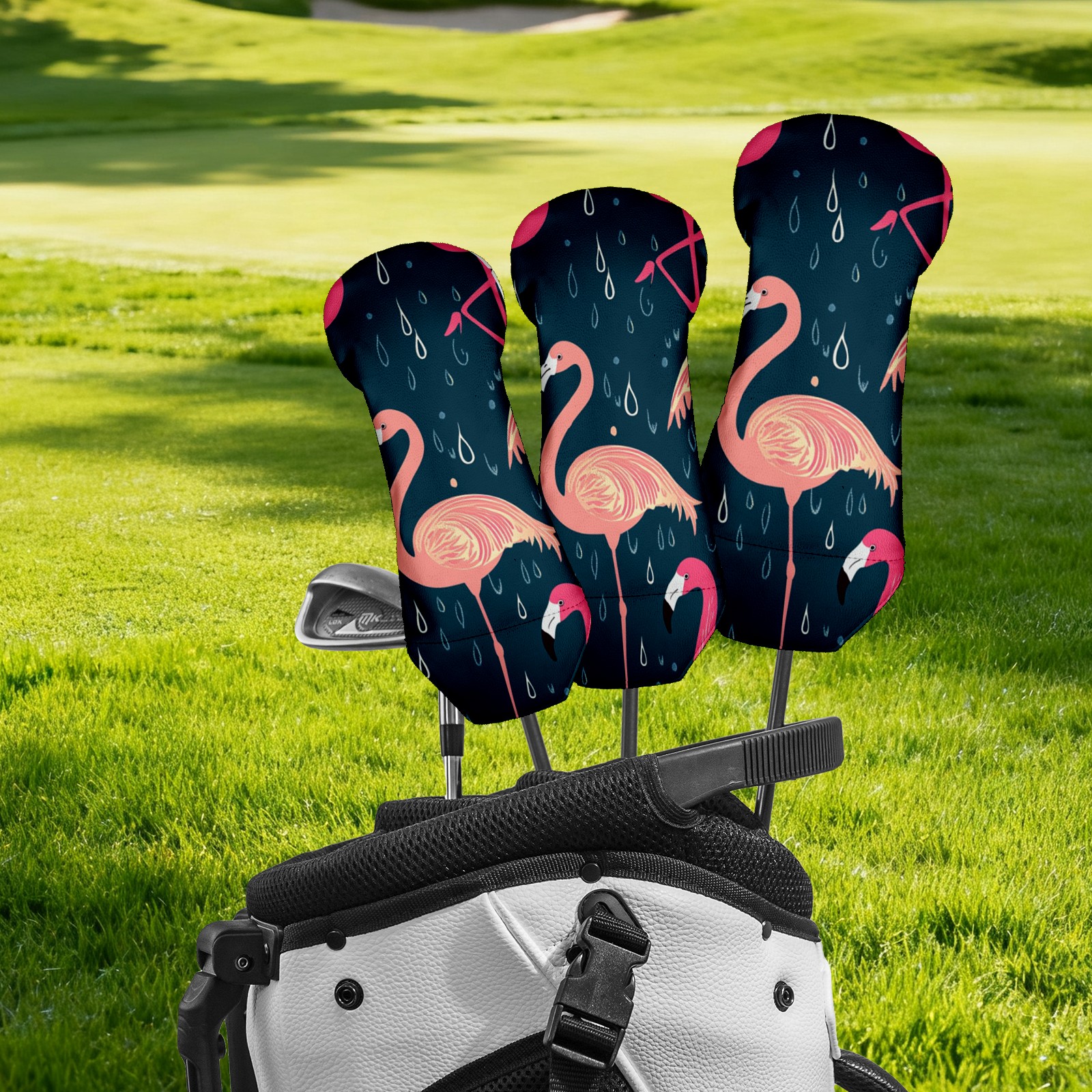 Golf Head Cover Waterproof Leather Headcovers for Driver Golf Accessories Golf Christmas Gift for Golfers 1/3/5 Hybrid Fairway Wood Cover PinkFlamingo