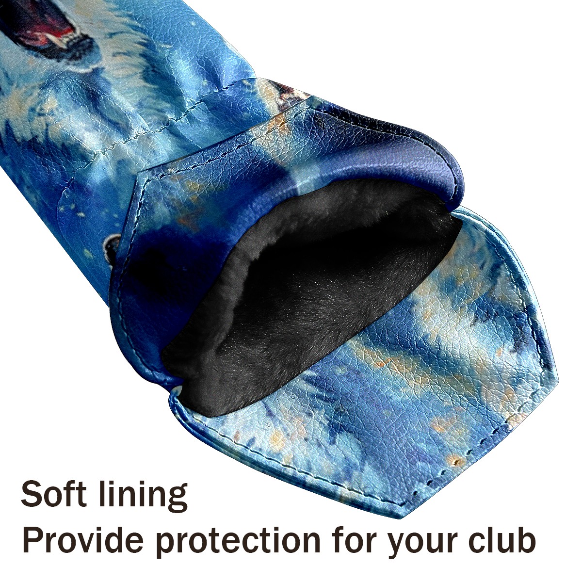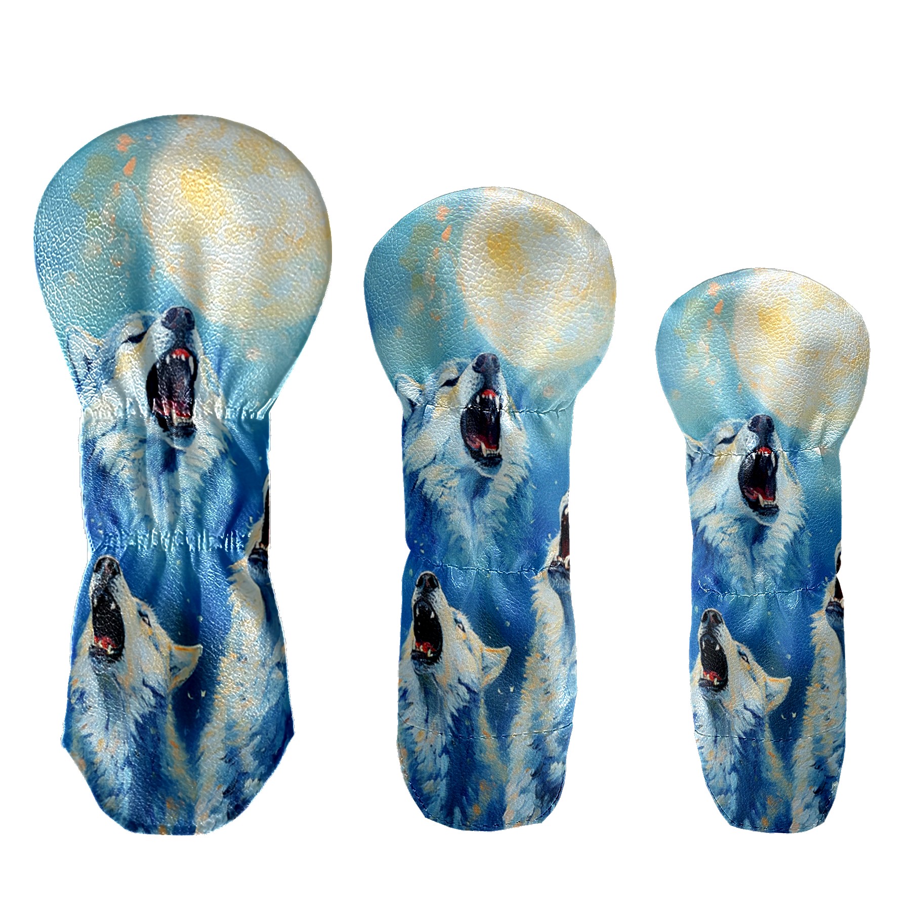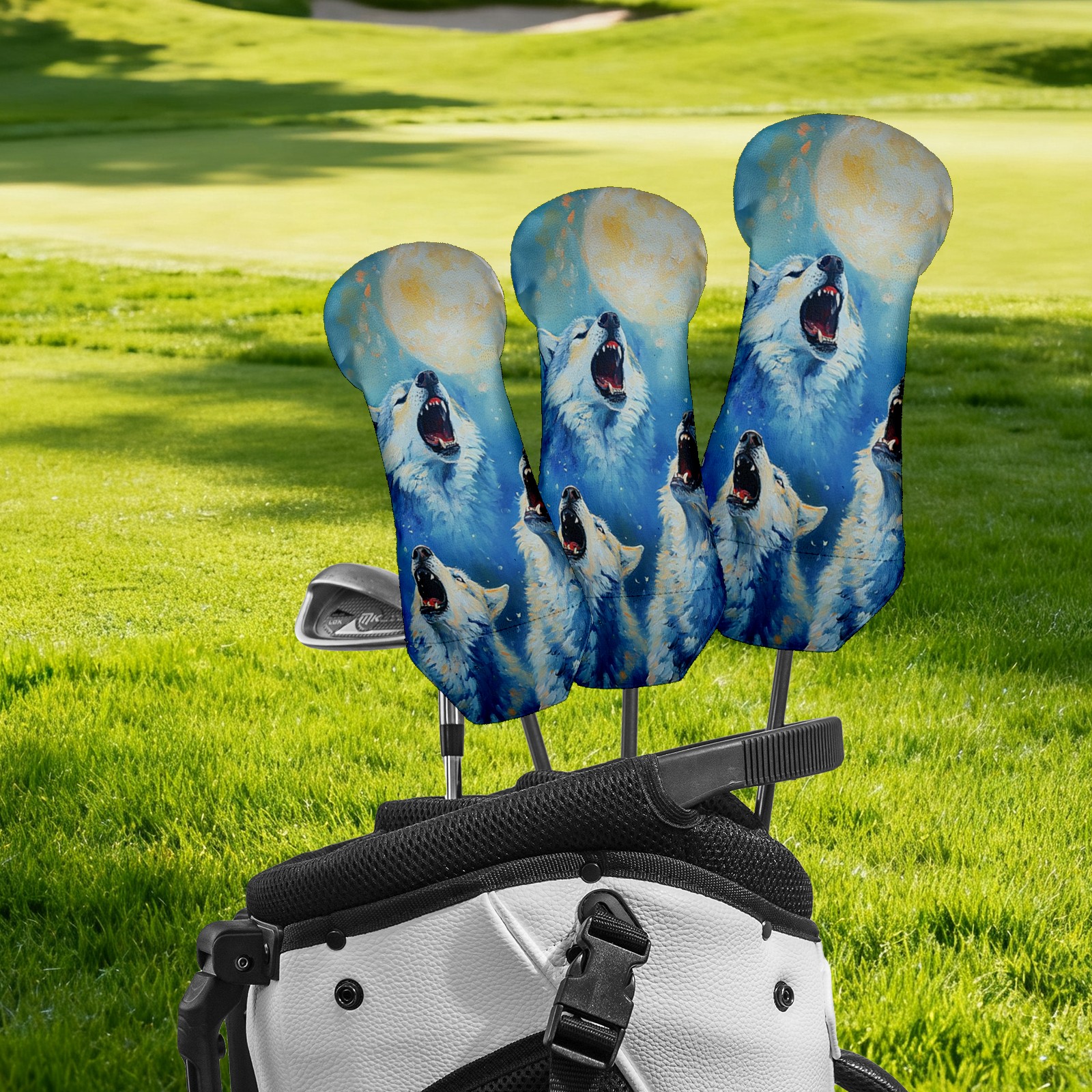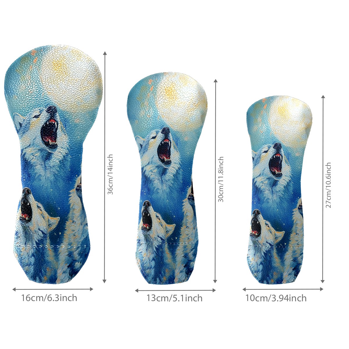 Golf Head Cover Waterproof Leather Headcovers for Driver Golf Accessories Golf Christmas Gift for Golfers 1/3/5 Hybrid Fairway Wood Cover WolfHowlMoonlitNight