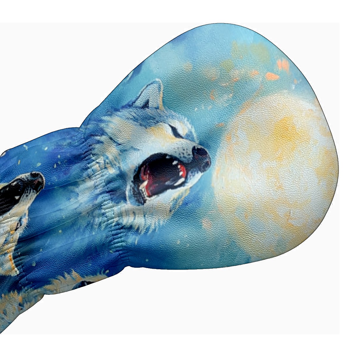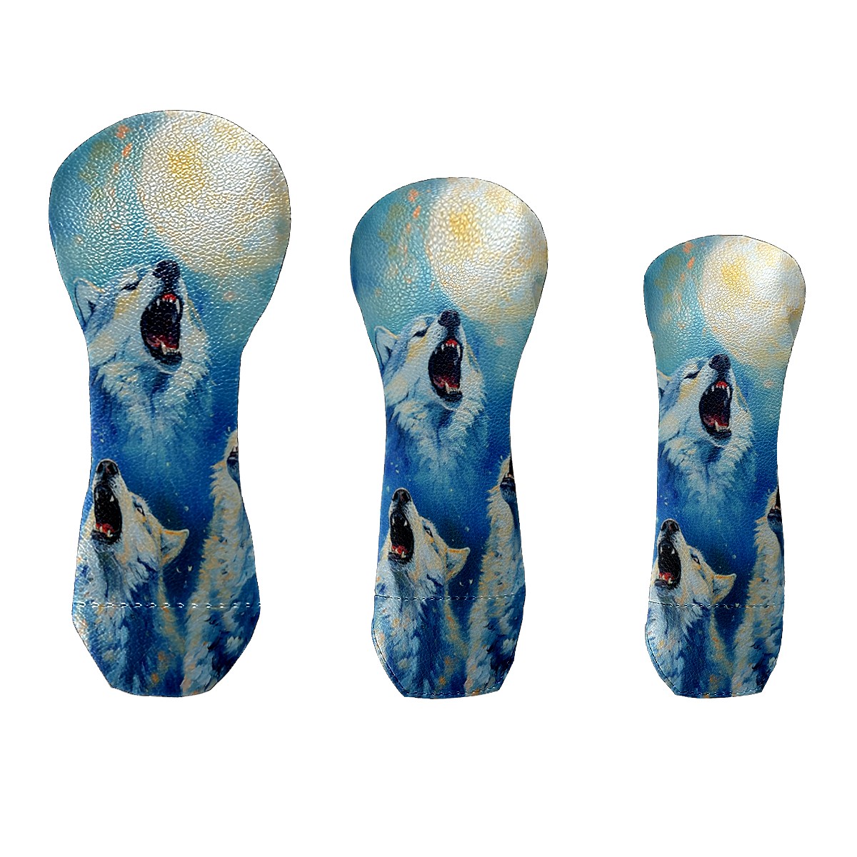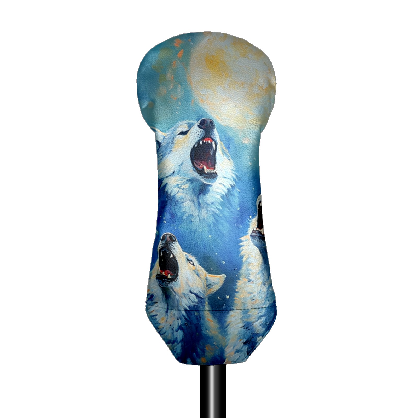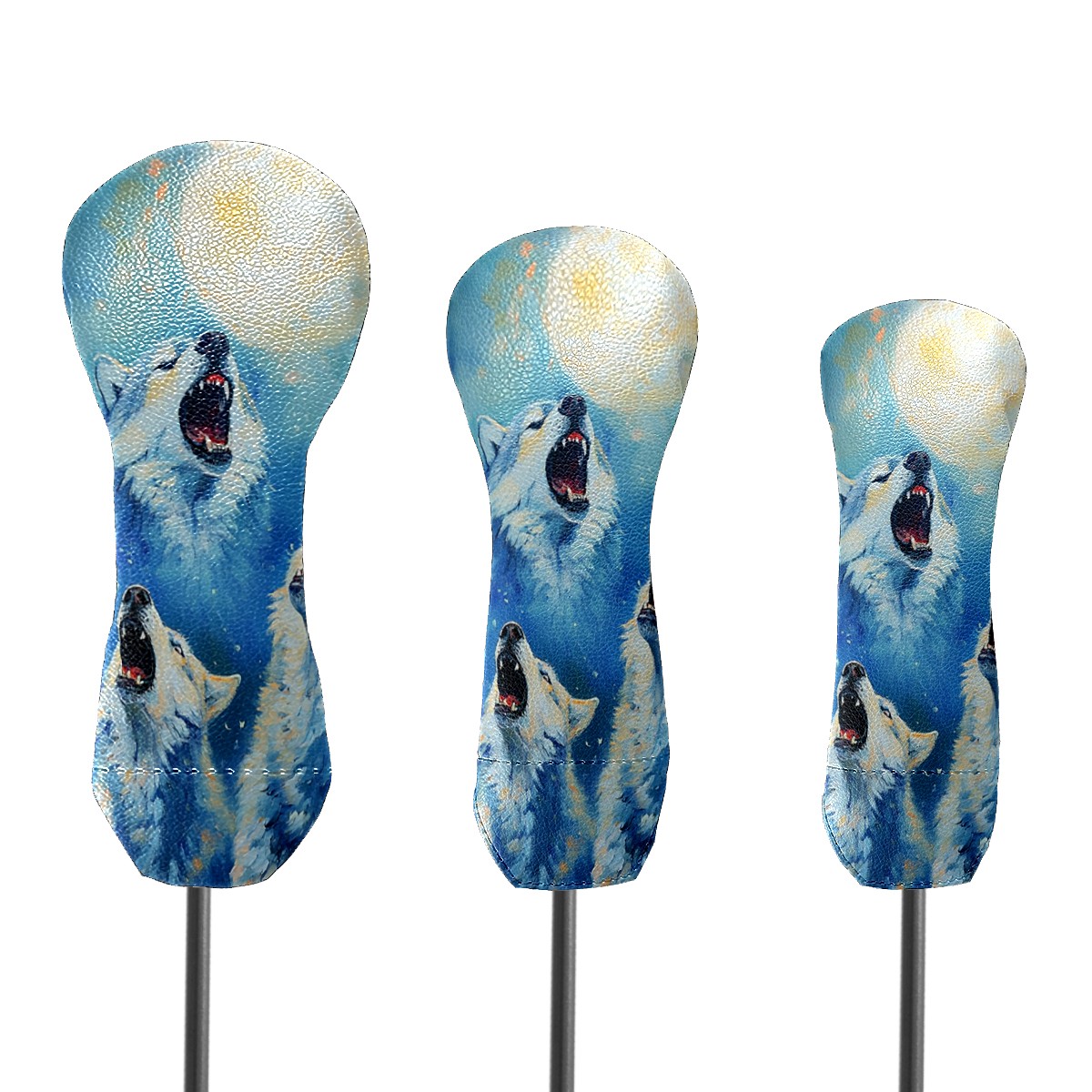 Golf Head Cover Waterproof Leather Headcovers for Driver Golf Accessories Golf Christmas Gift for Golfers 1/3/5 Hybrid Fairway Wood Cover WolfHowlMoonlitNight