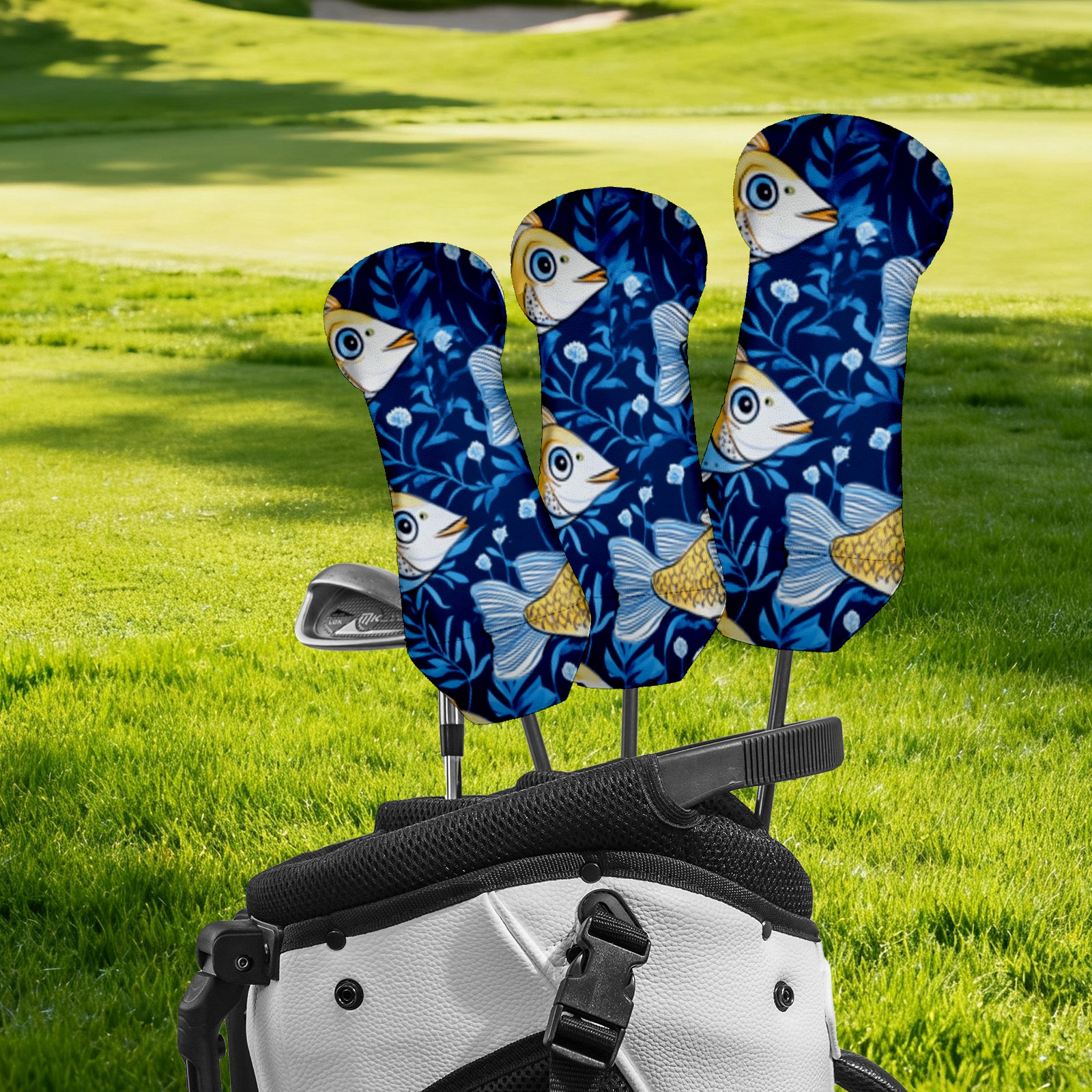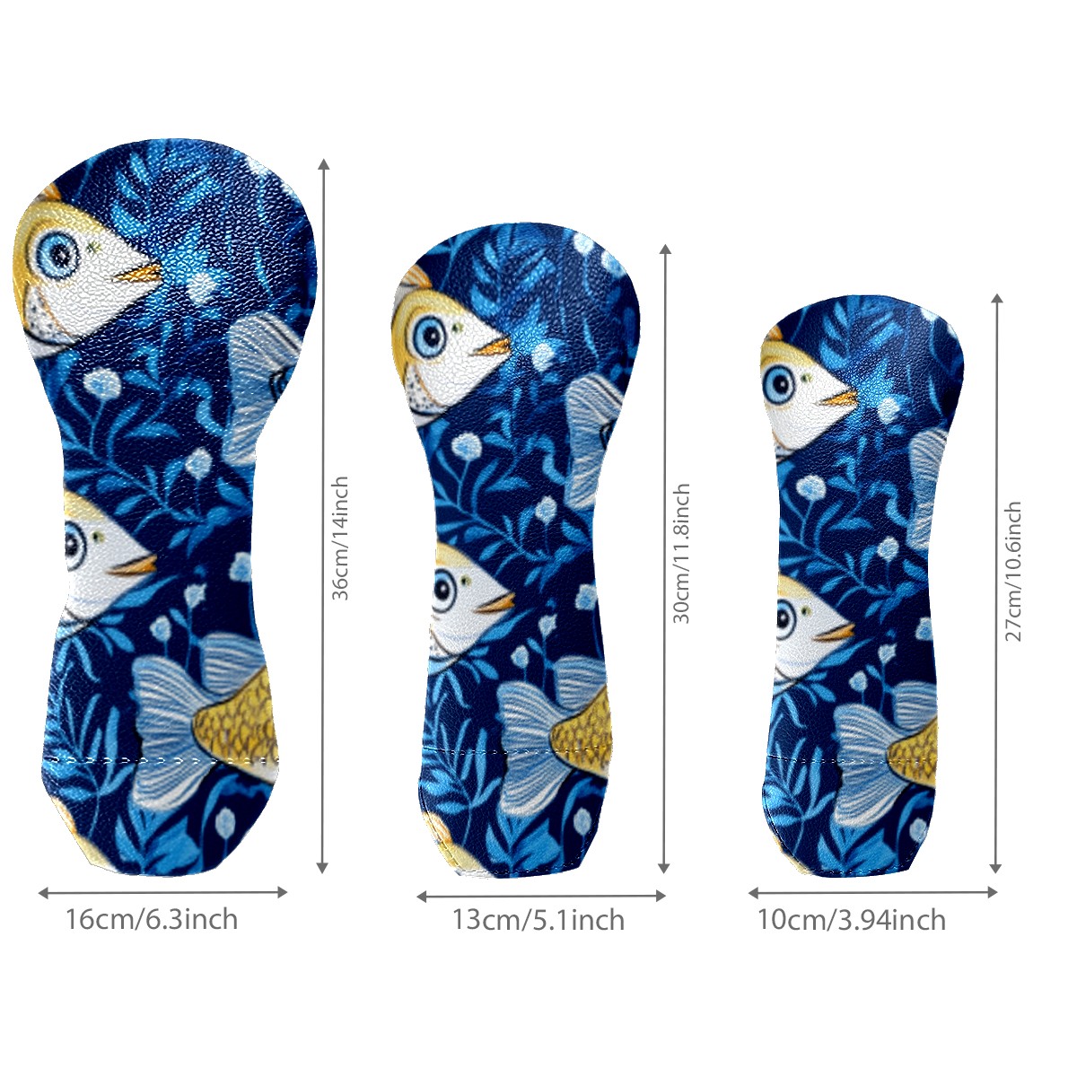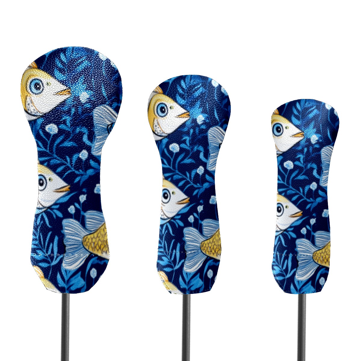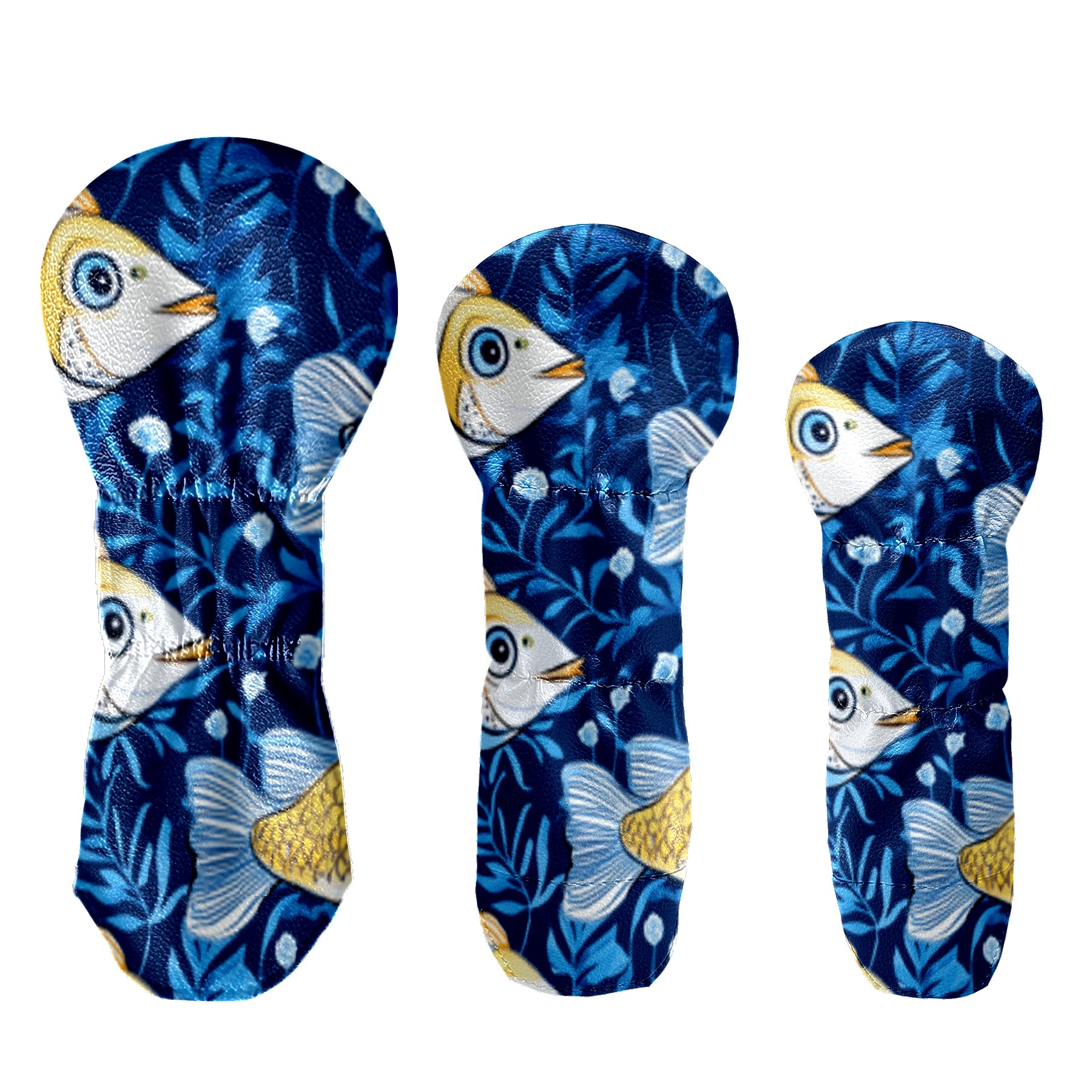Golf Head Cover Waterproof Leather Headcovers for Driver Golf Accessories Golf Christmas Gift for Golfers 1/3/5 Hybrid Fairway Wood Cover GoldBlueFishUnderwater