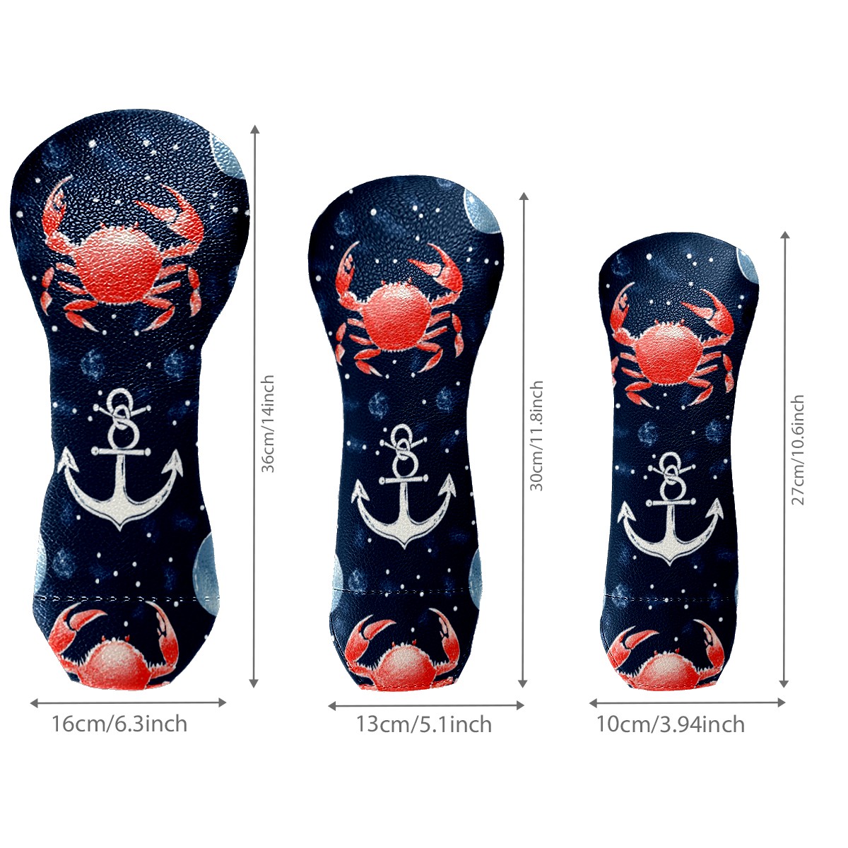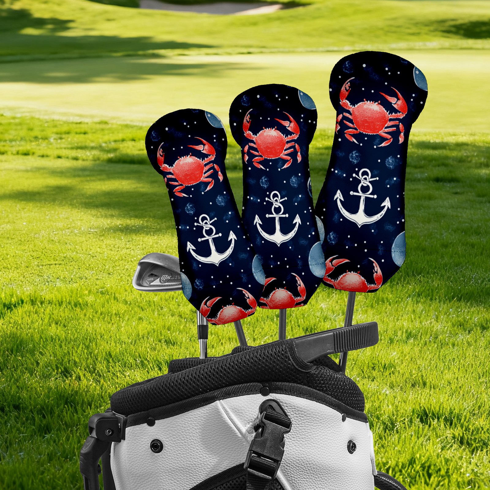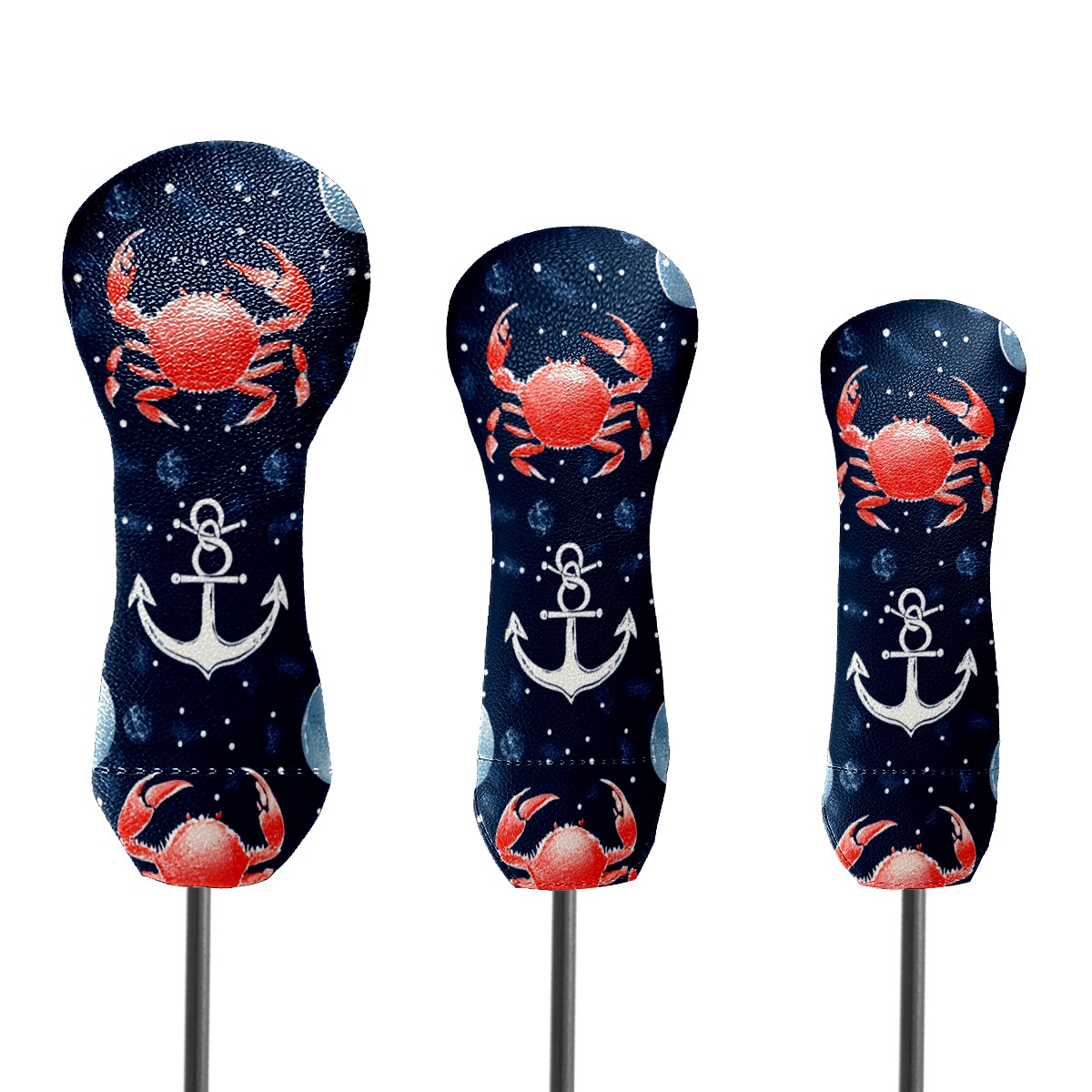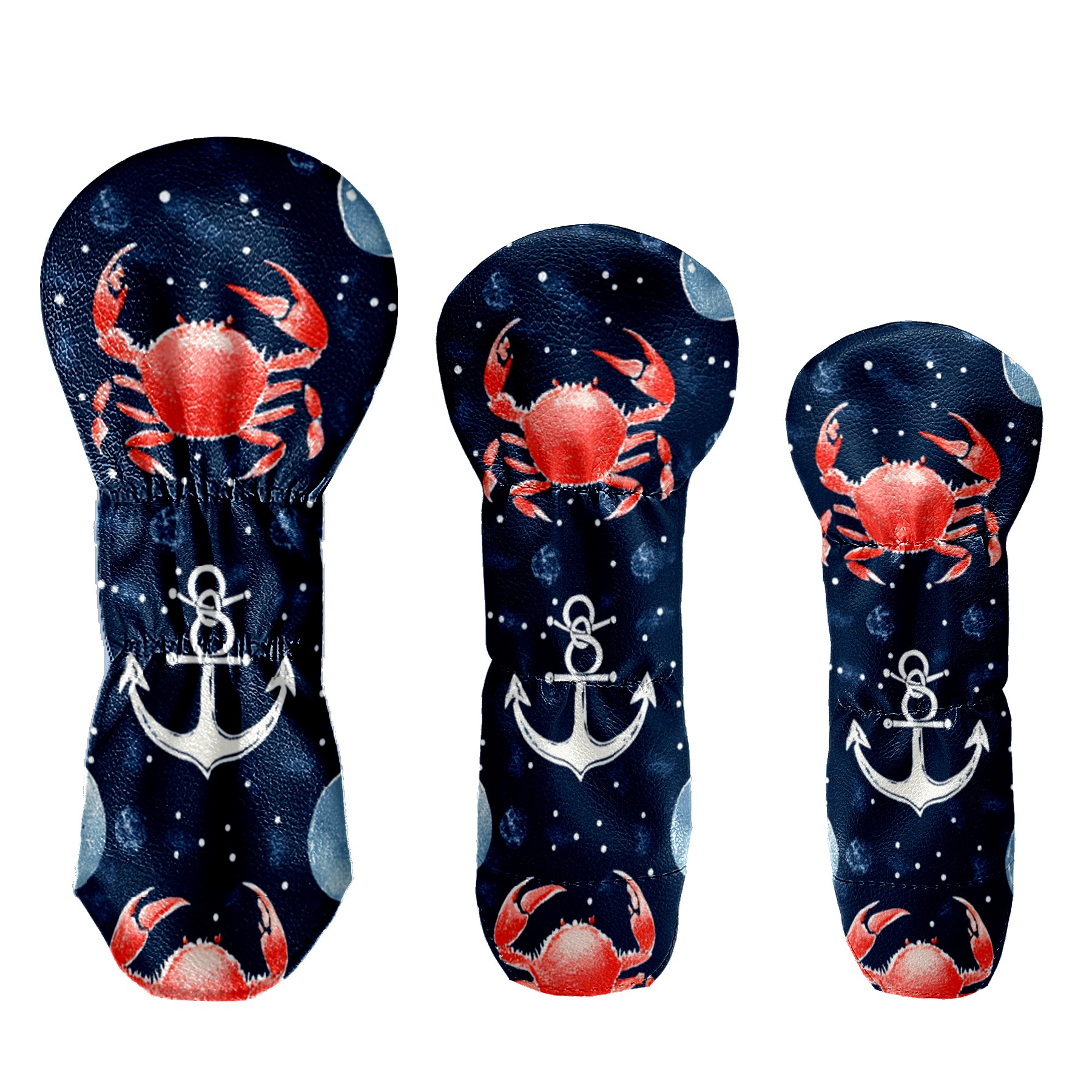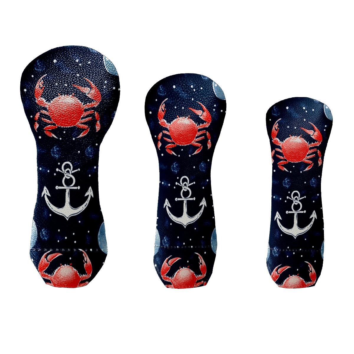 Golf Head Cover Waterproof Leather Headcovers for Driver Golf Accessories Golf Christmas Gift for Golfers 1/3/5 Hybrid Fairway Wood Cover RedCrabNauticalAnchor