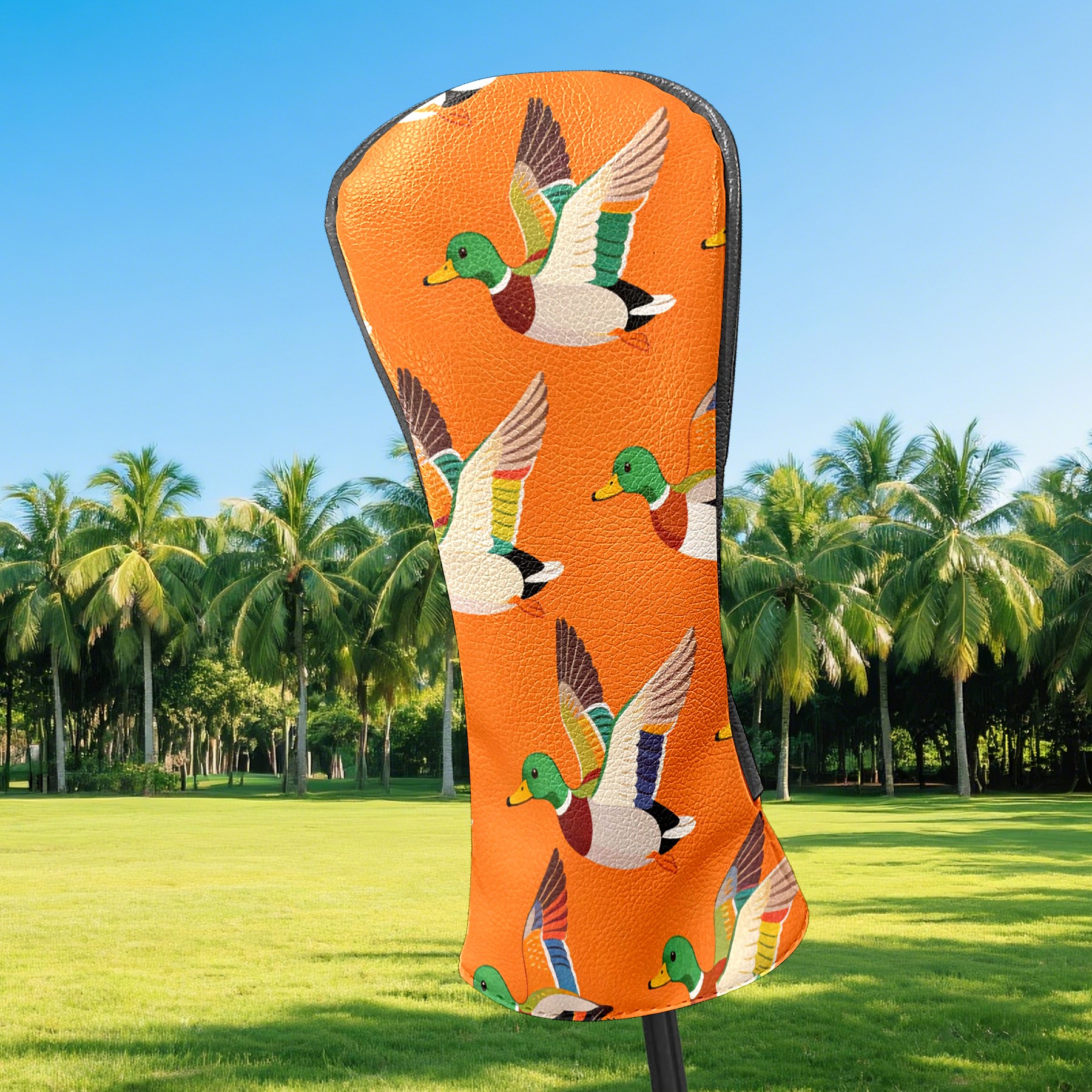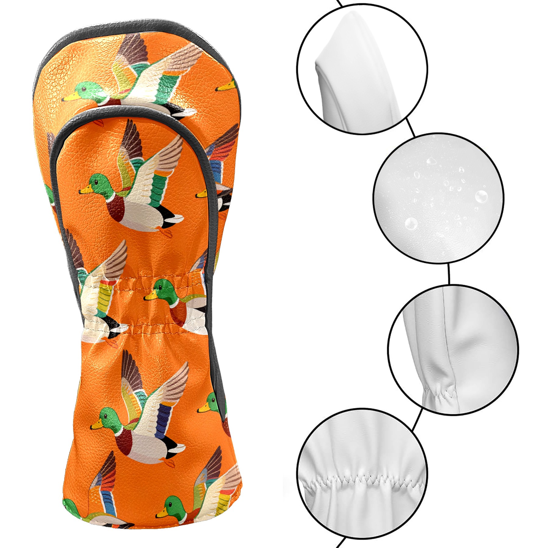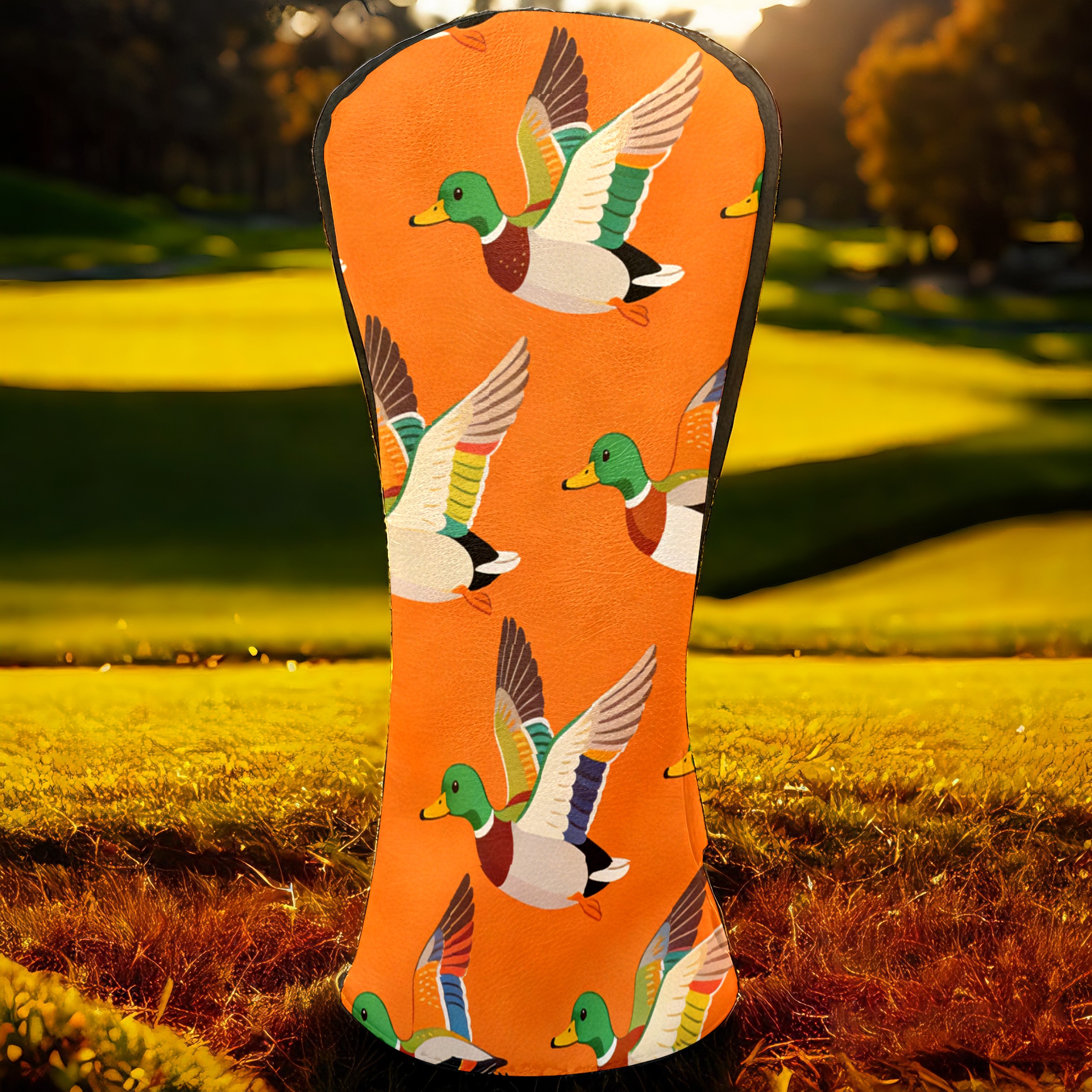 Golf Driver Head Cover Leather Driver Fairway Headcover, Premium Golf Club Covers with Plush Lining Girls Womens Mens Head Cover for Golf Clubs (Mallard Ducks Orange)