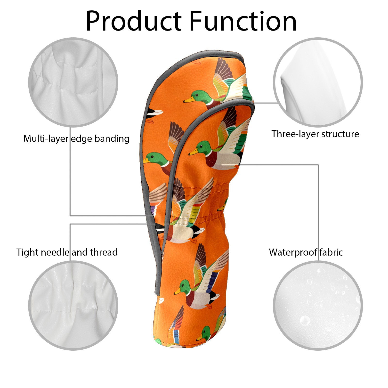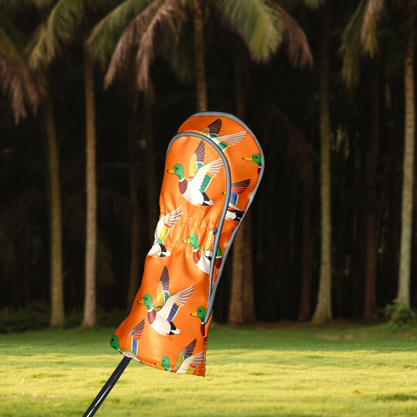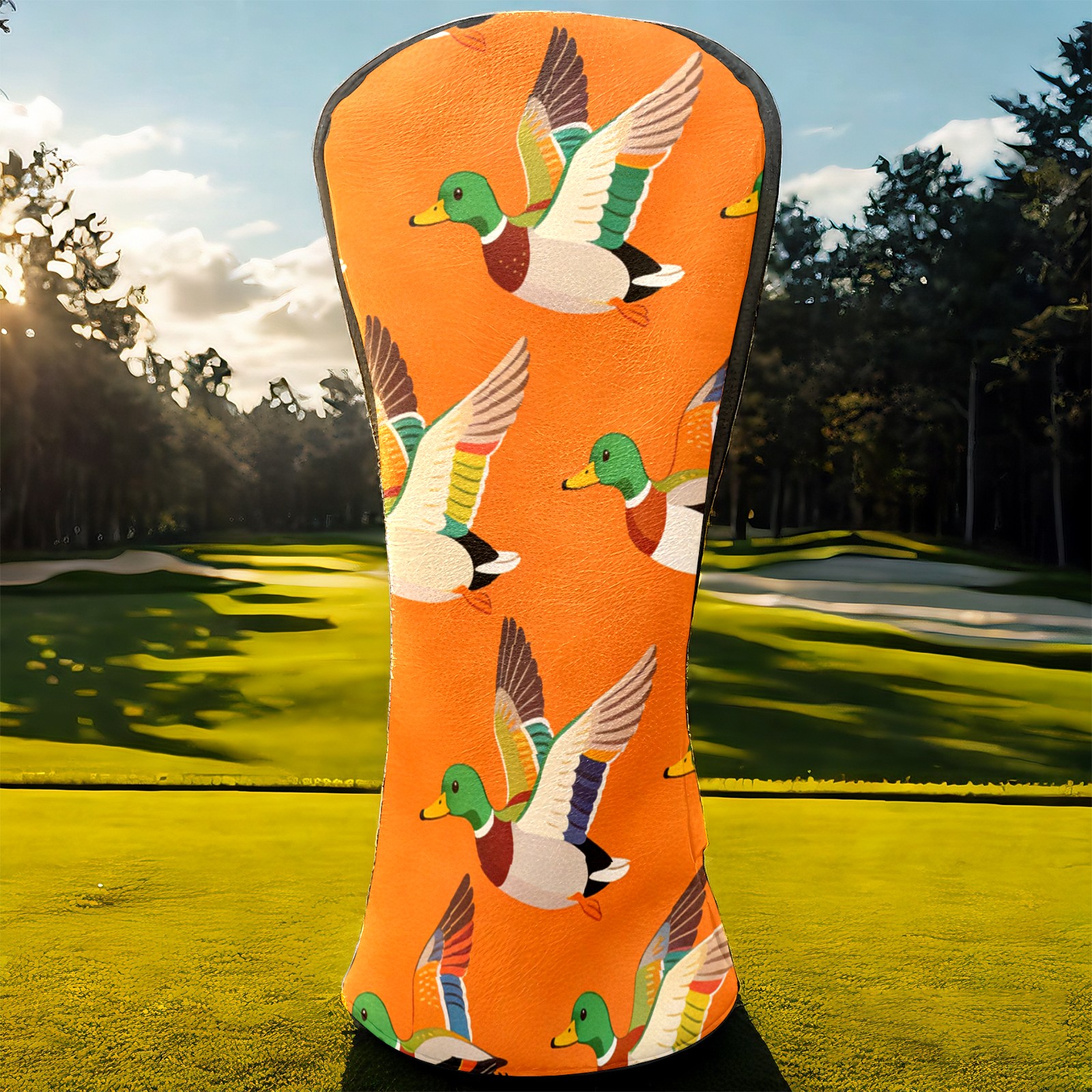 Golf Driver Head Cover Leather Driver Fairway Headcover, Premium Golf Club Covers with Plush Lining Girls Womens Mens Head Cover for Golf Clubs (Mallard Ducks Orange)