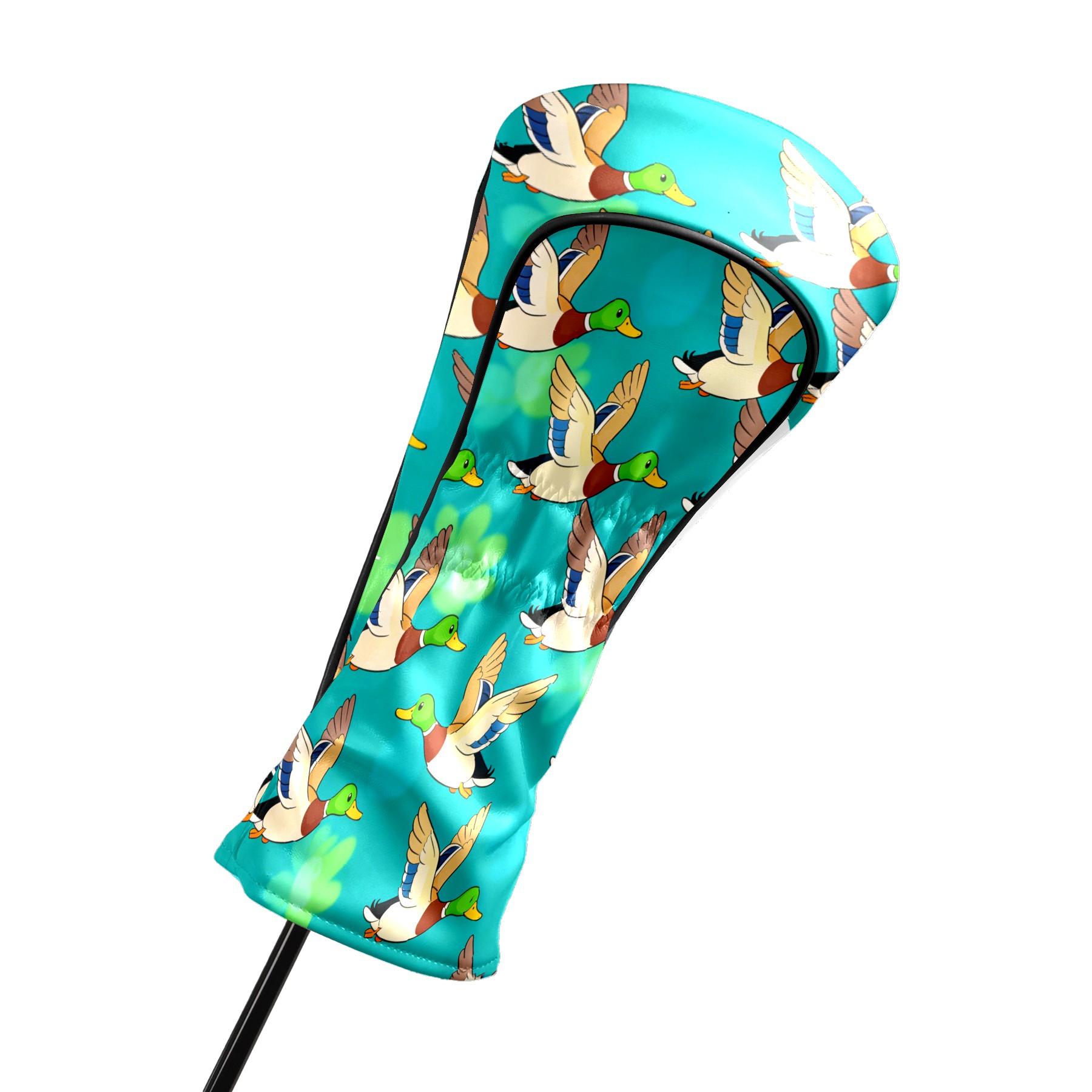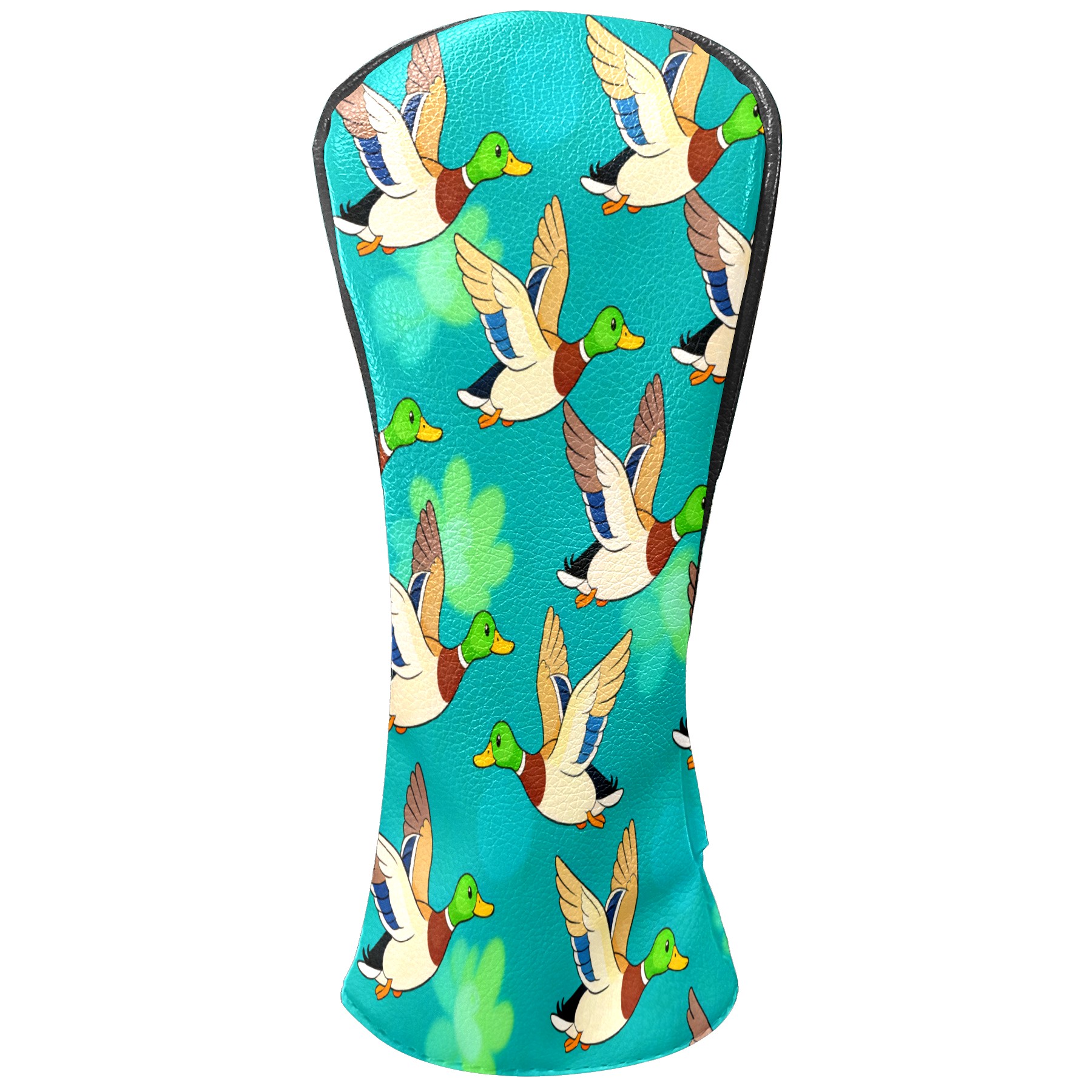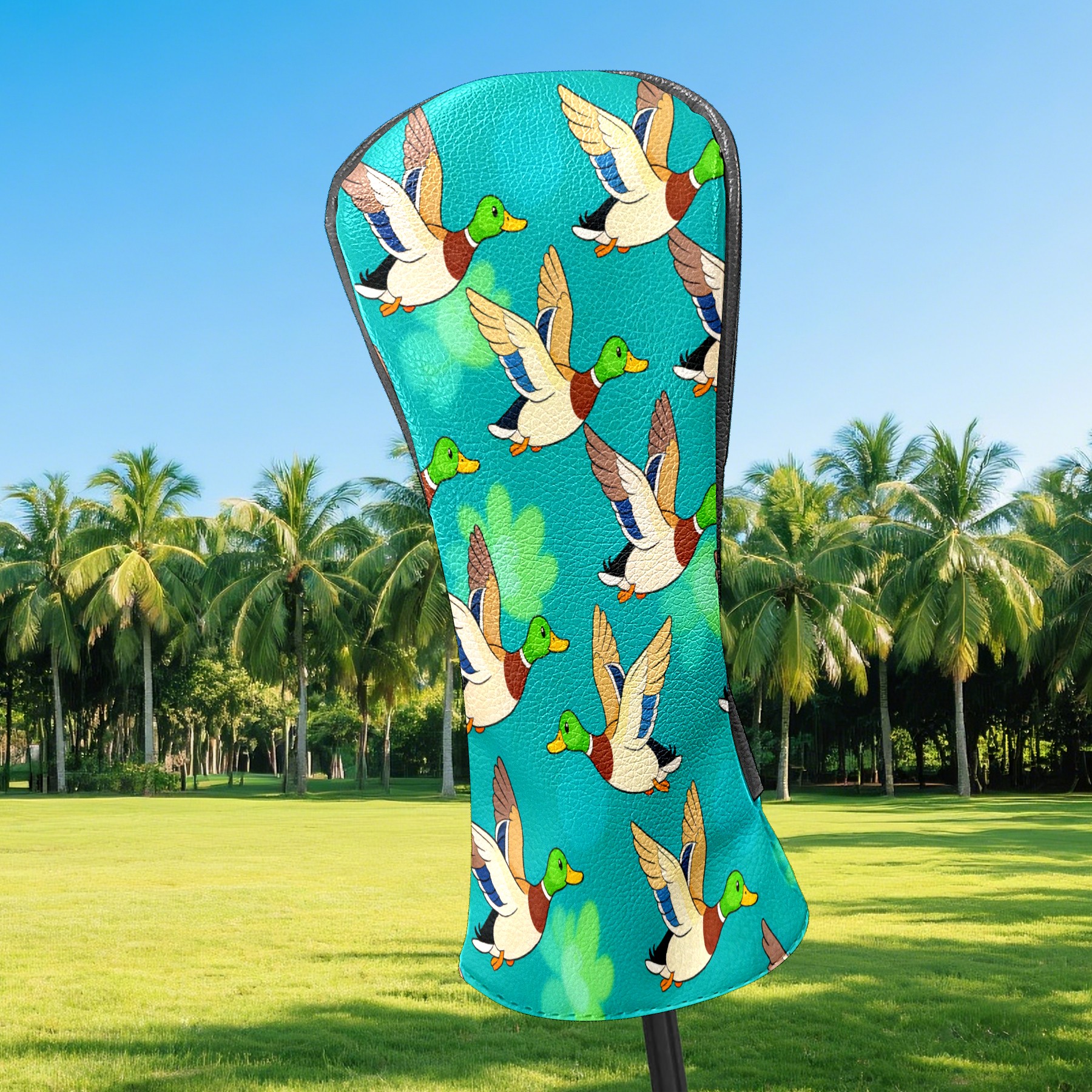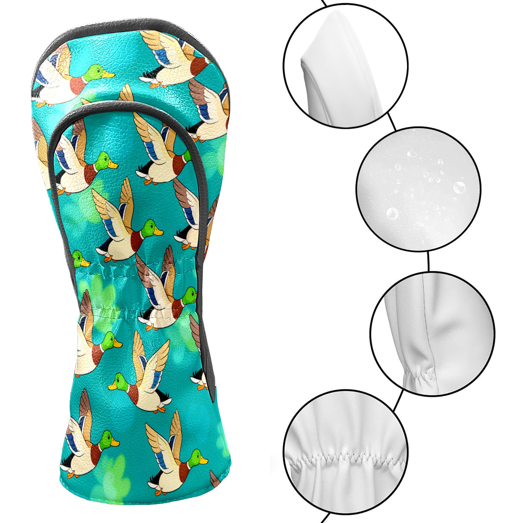 Golf Driver Head Cover Leather Driver Fairway Headcover, Premium Golf Club Covers with Plush Lining Girls Womens Mens Head Cover for Golf Clubs (Flying Ducks Teal)