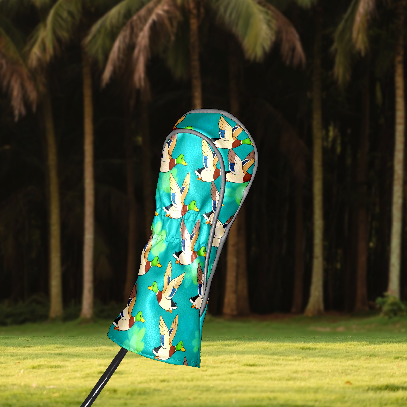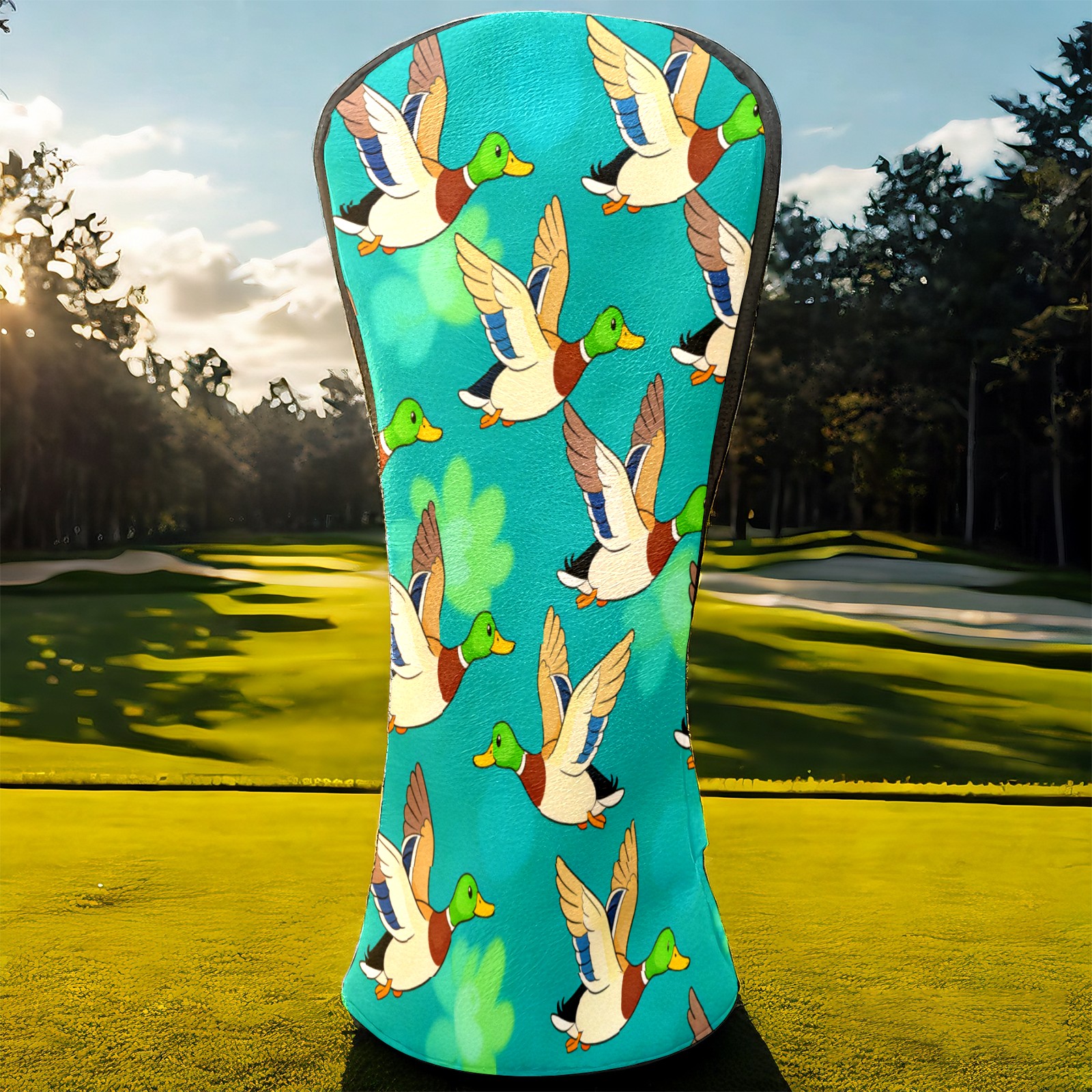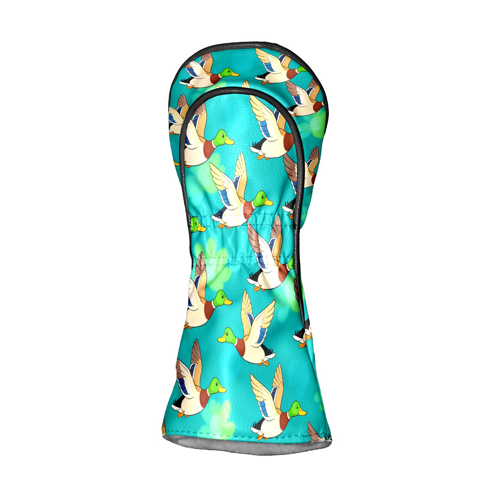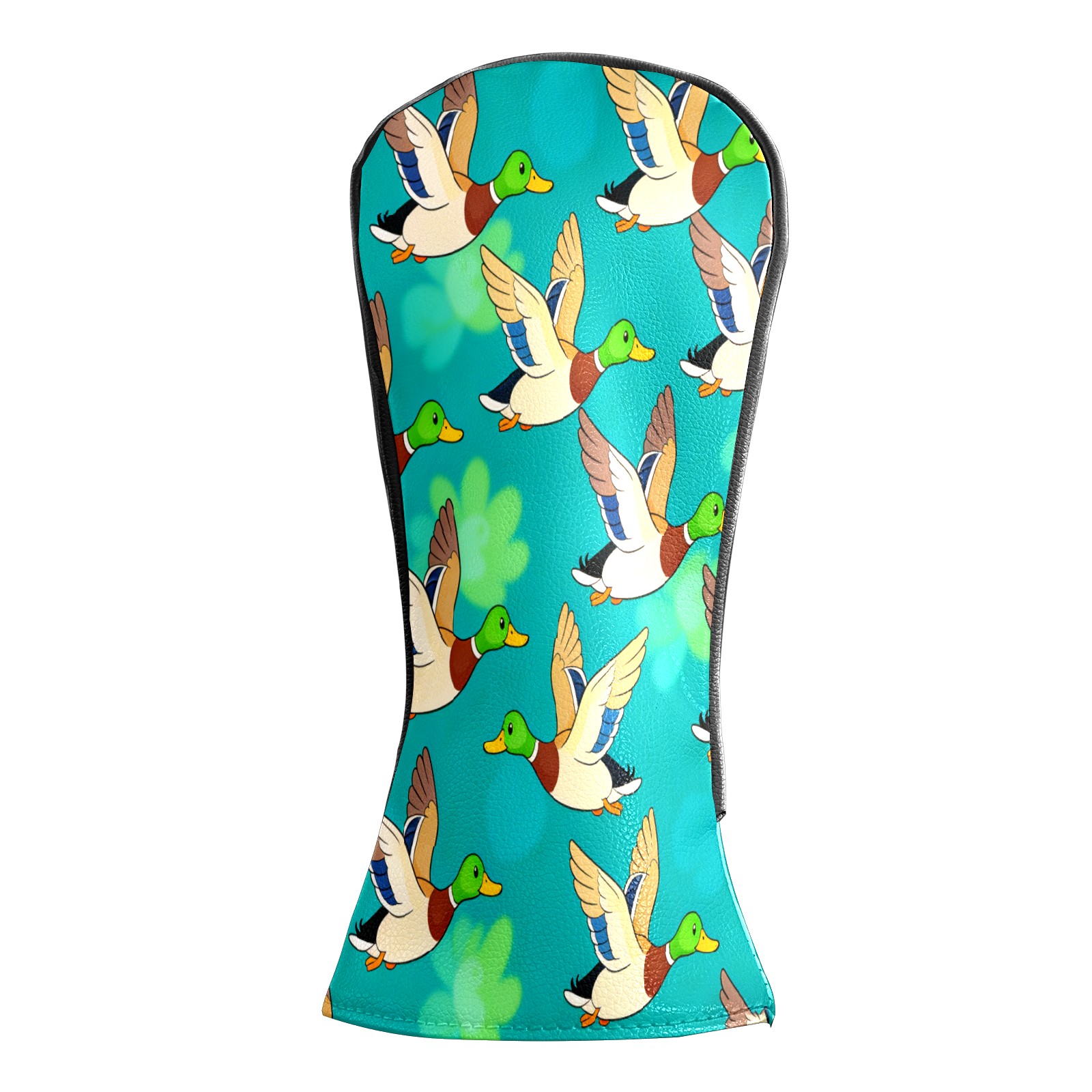 Golf Driver Head Cover Leather Driver Fairway Headcover, Premium Golf Club Covers with Plush Lining Girls Womens Mens Head Cover for Golf Clubs (Flying Ducks Teal)
