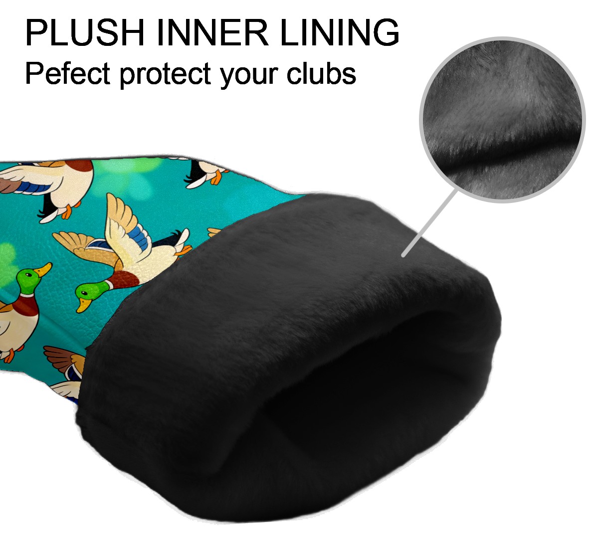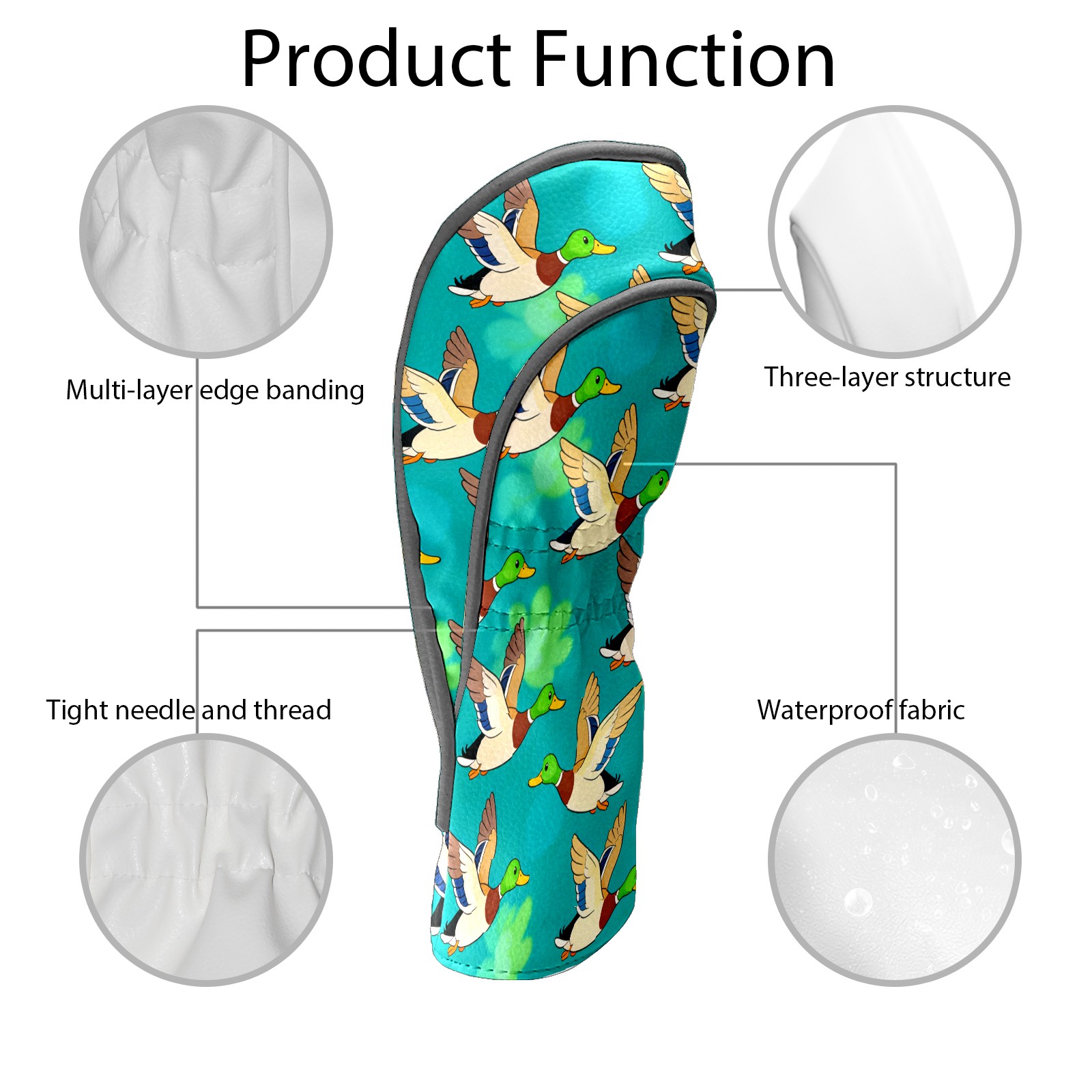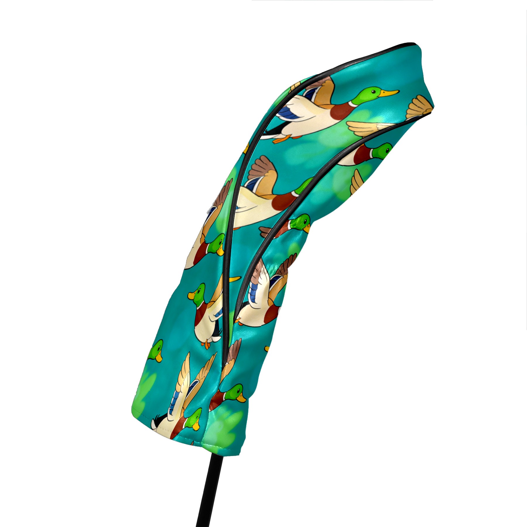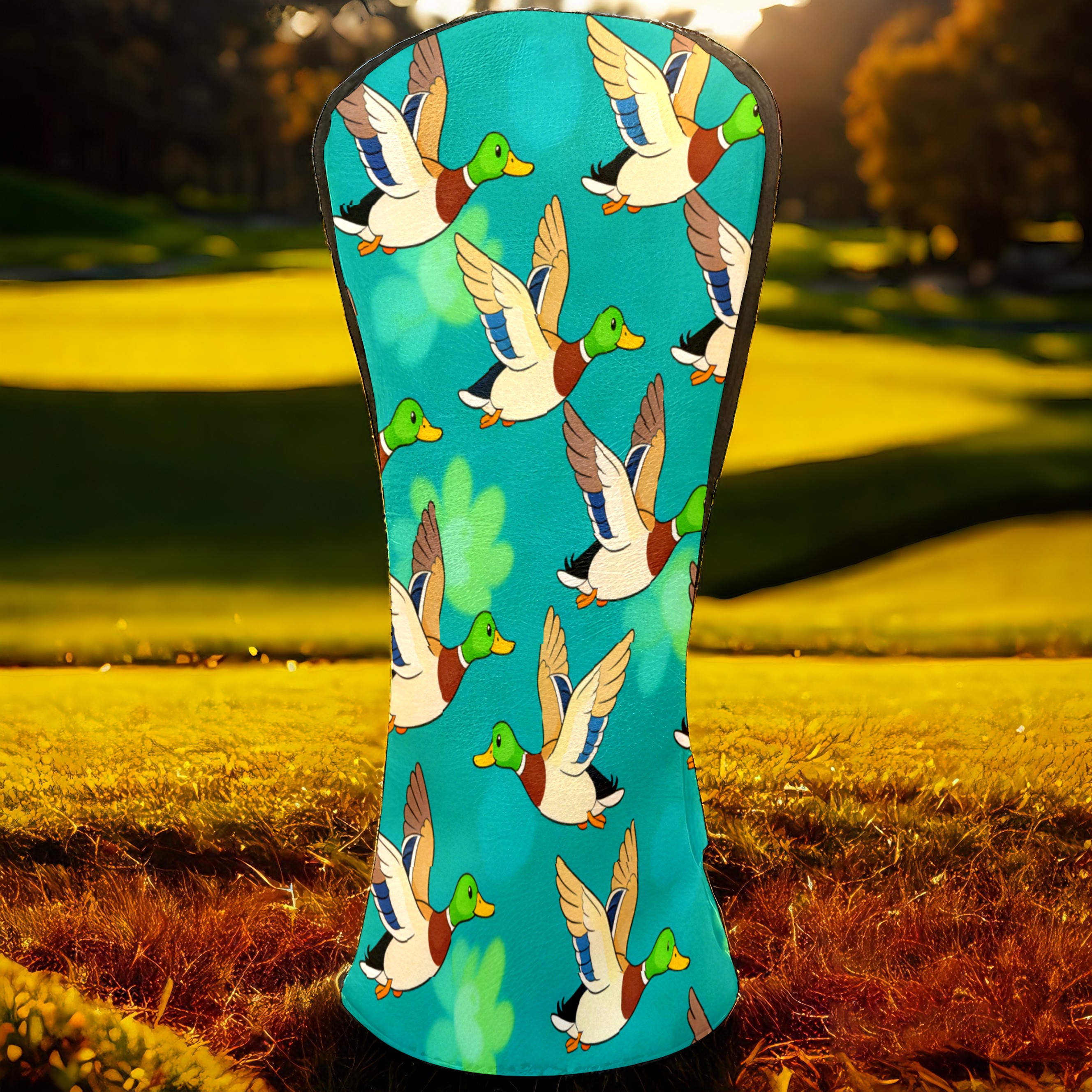 Golf Driver Head Cover Leather Driver Fairway Headcover, Premium Golf Club Covers with Plush Lining Girls Womens Mens Head Cover for Golf Clubs (Flying Ducks Teal)