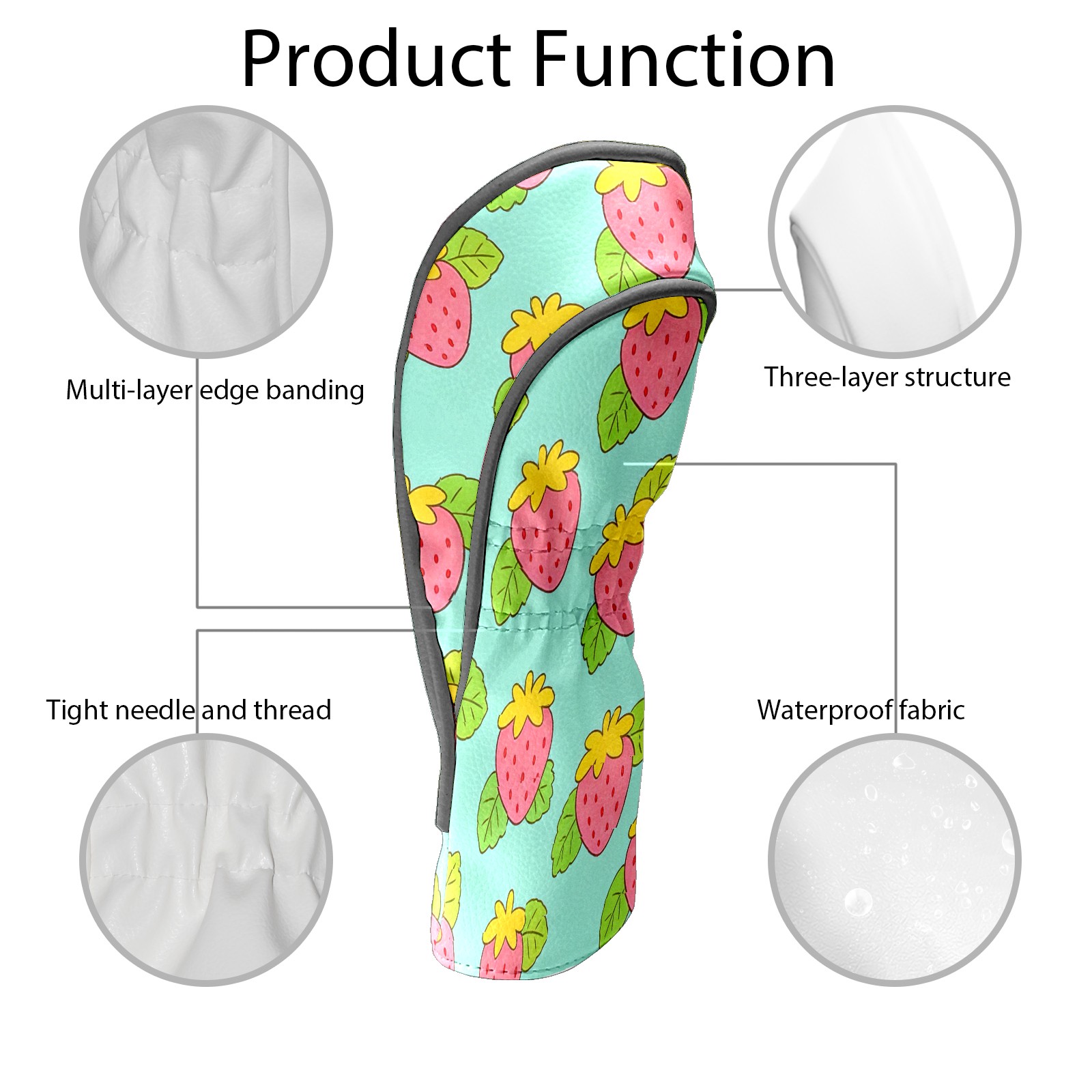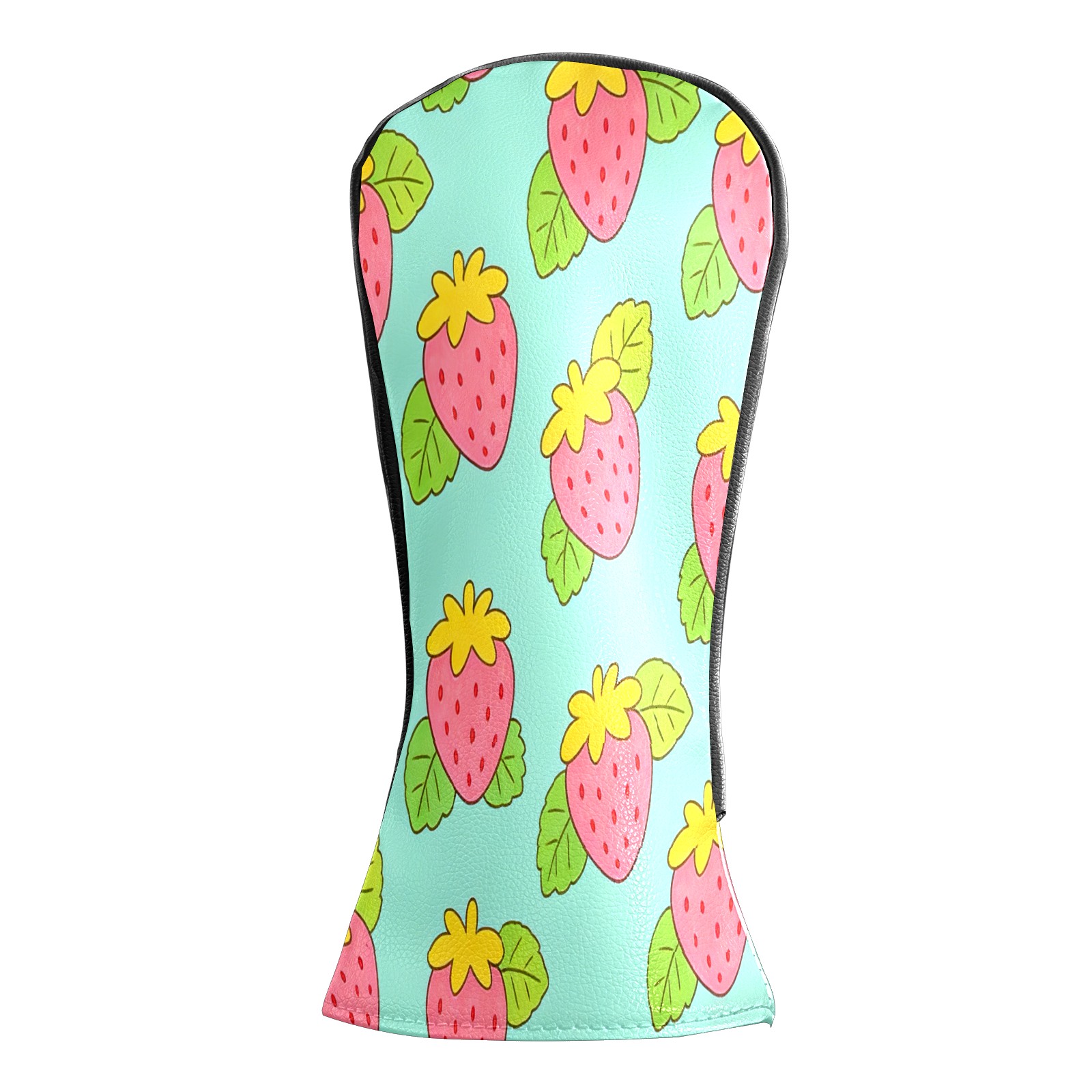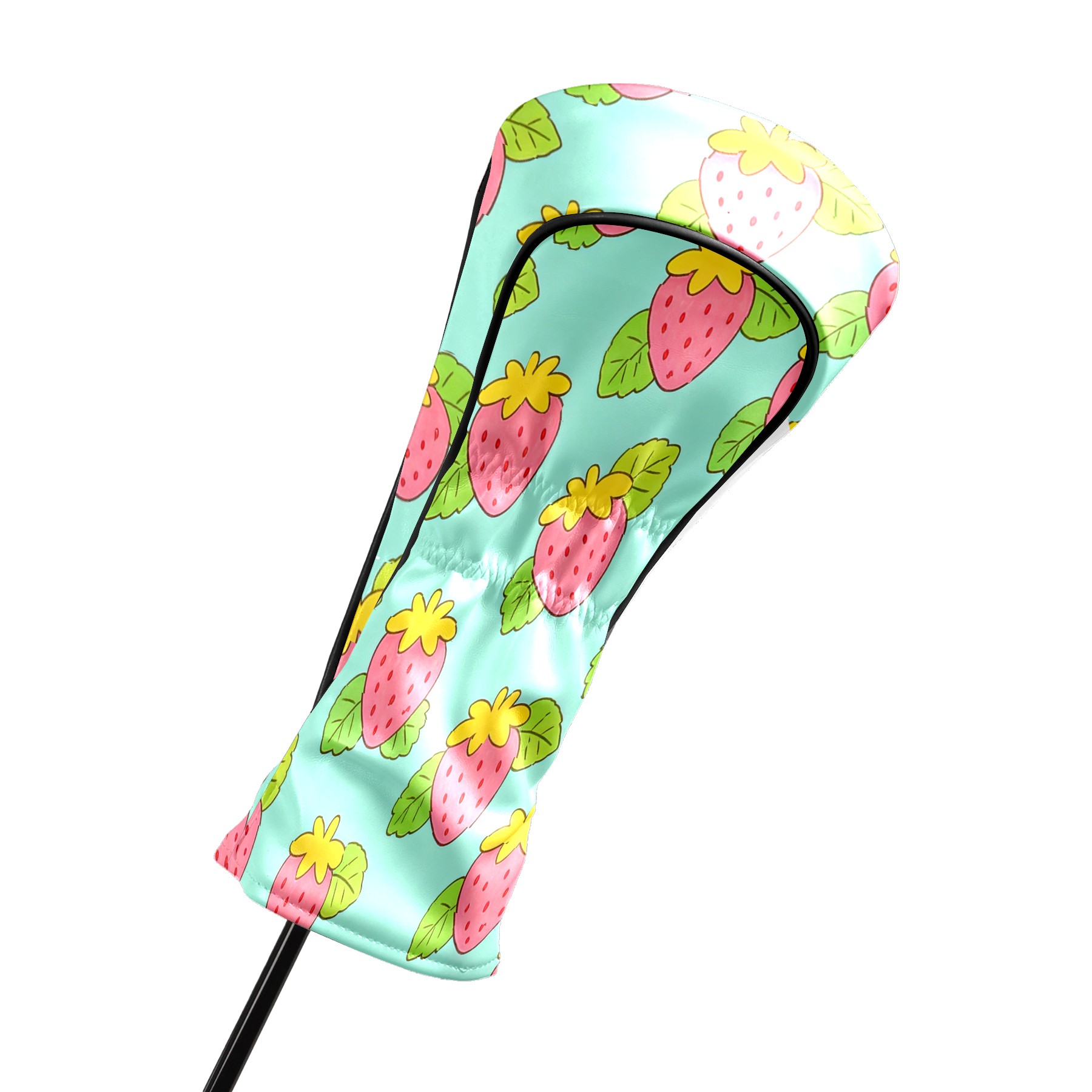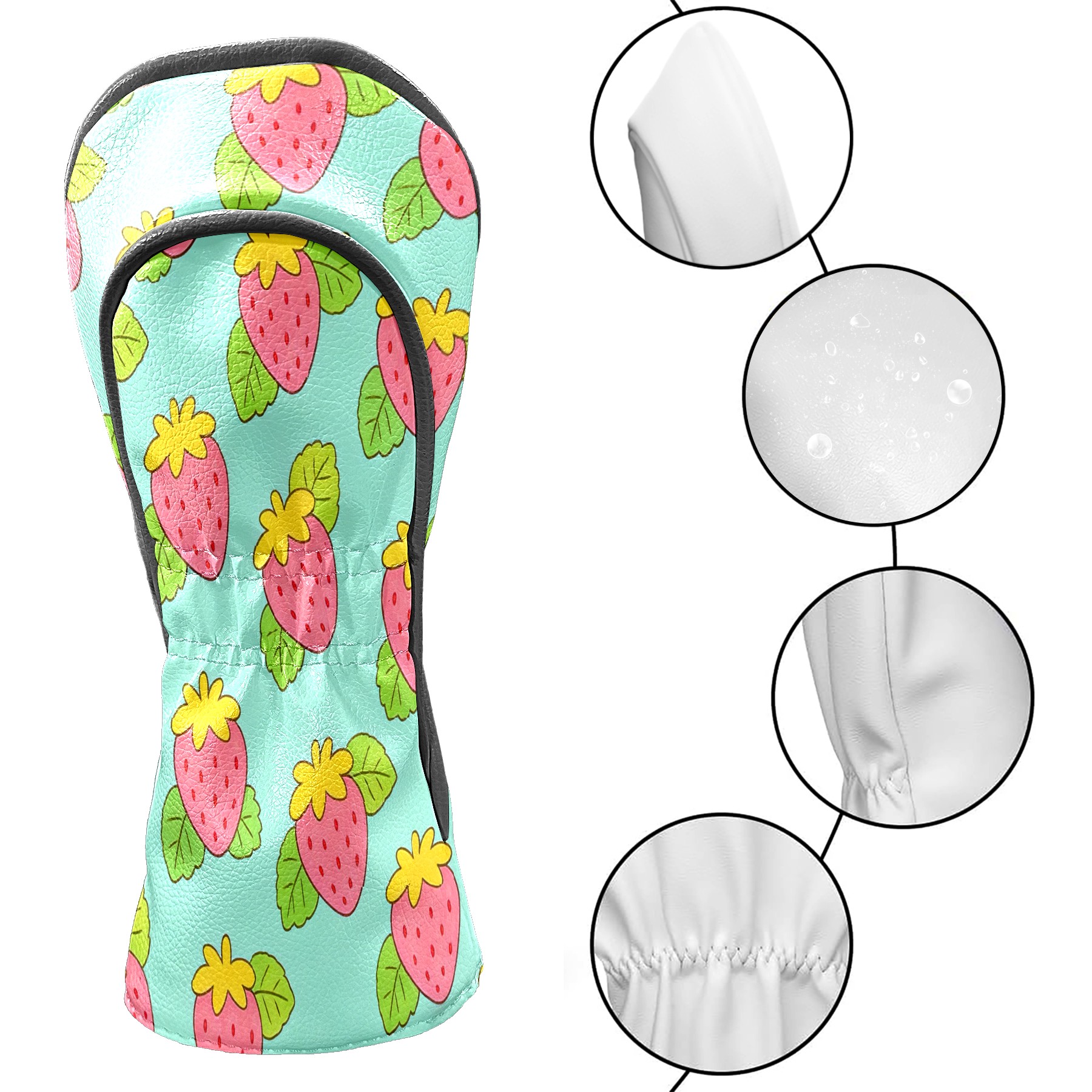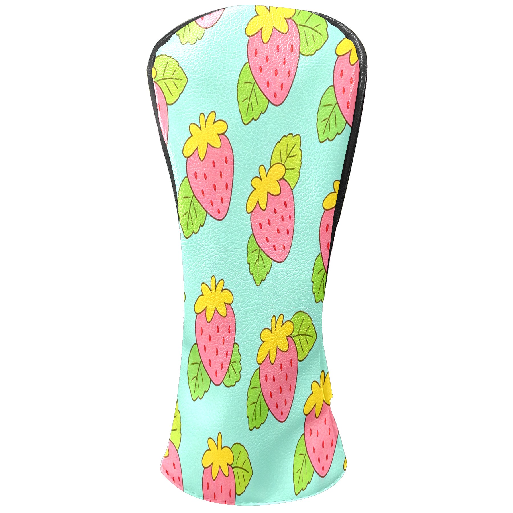 Golf Driver Head Cover Leather Driver Fairway Headcover, Premium Golf Club Covers with Plush Lining Girls Womens Mens Head Cover for Golf Clubs (Pink Strawberry Green)