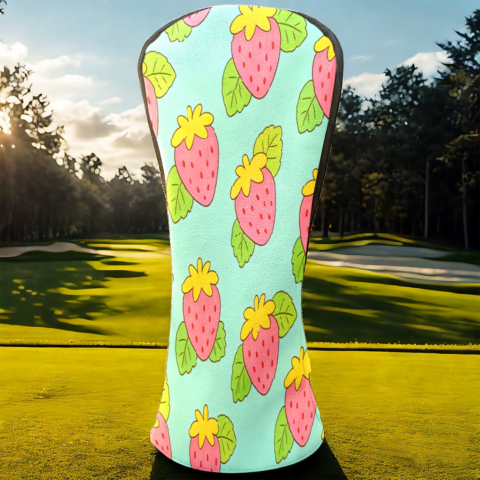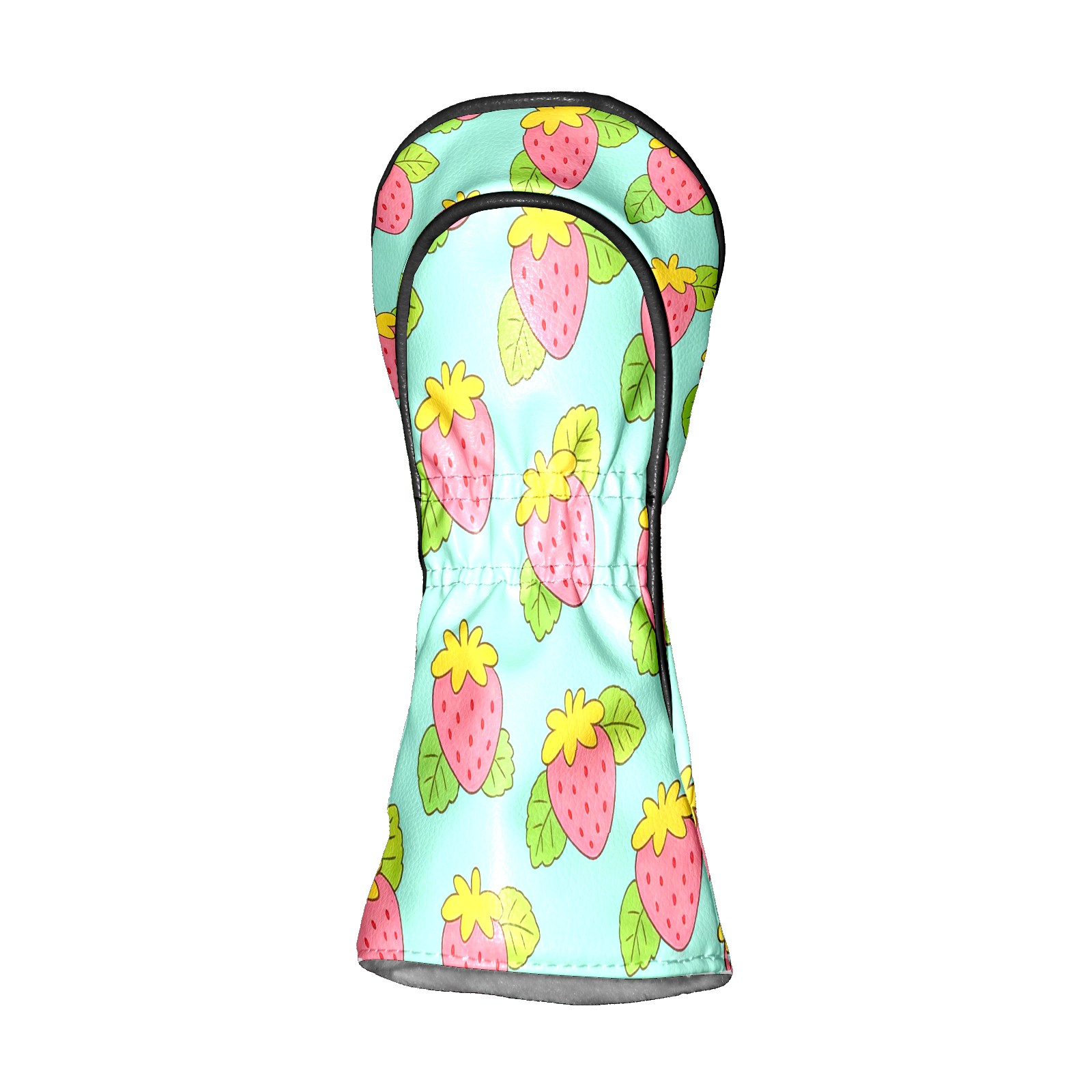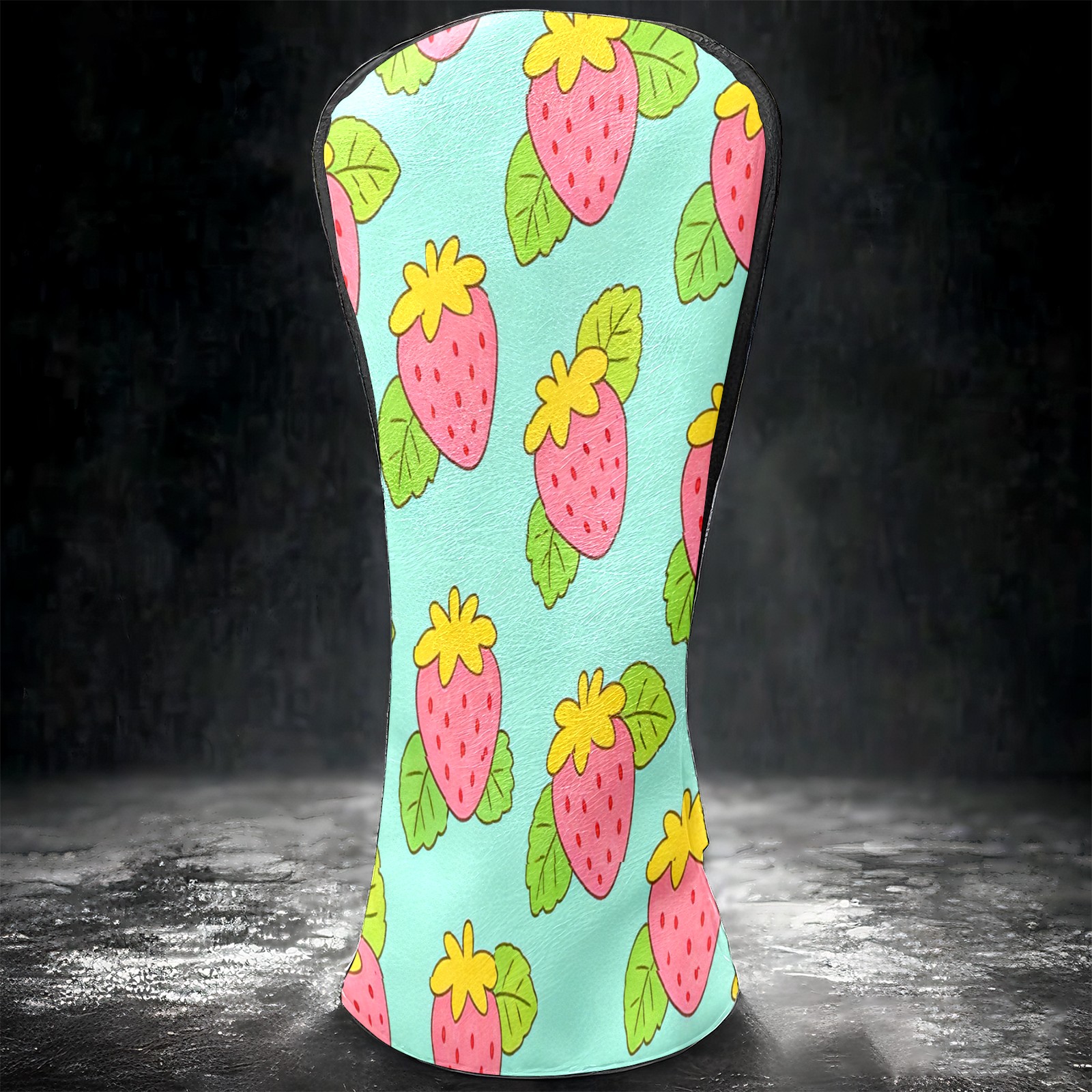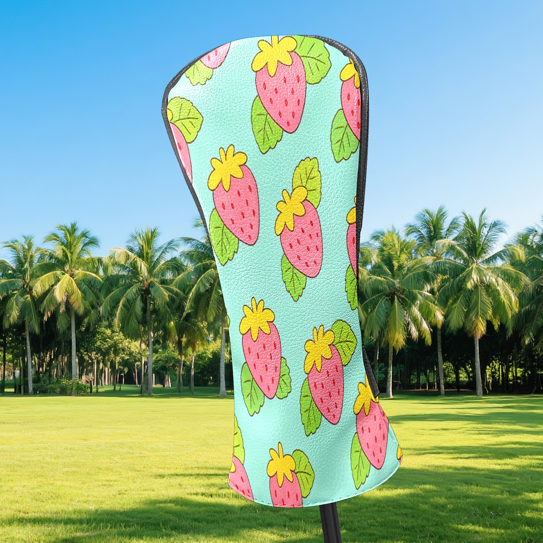 Golf Driver Head Cover Leather Driver Fairway Headcover, Premium Golf Club Covers with Plush Lining Girls Womens Mens Head Cover for Golf Clubs (Pink Strawberry Green)