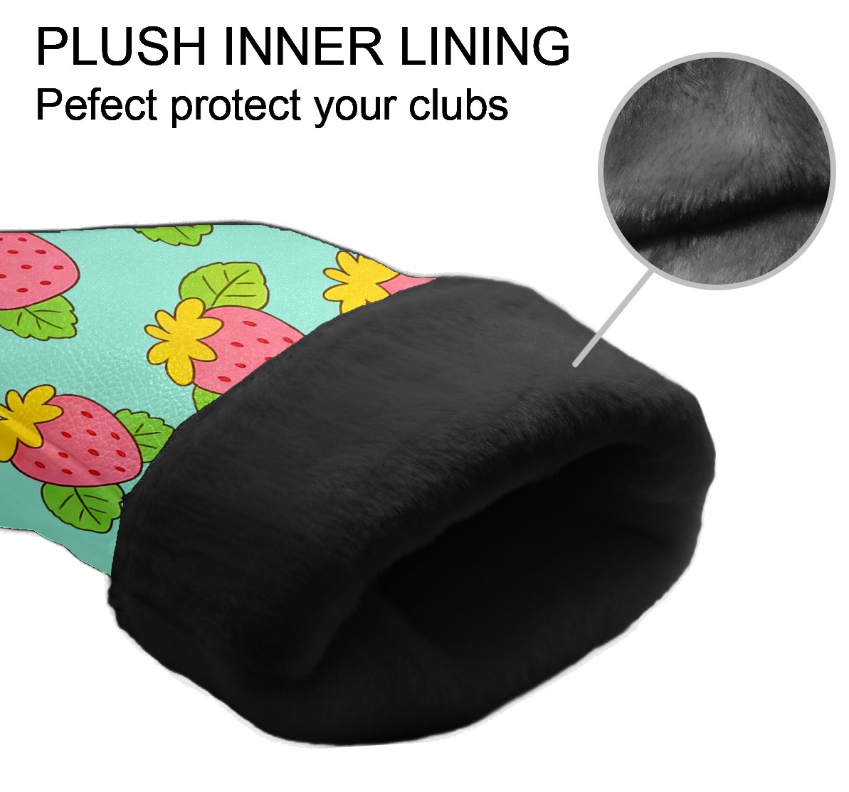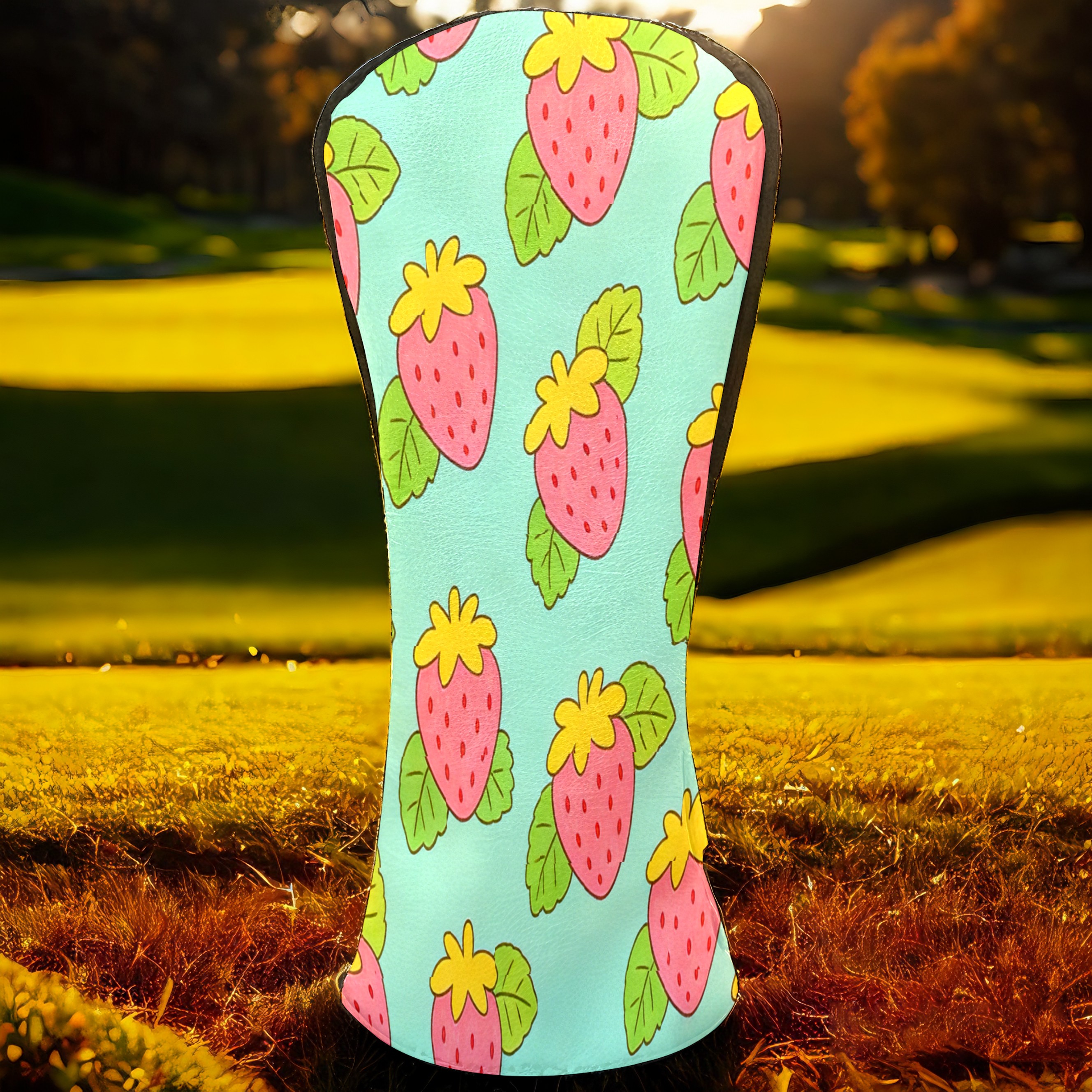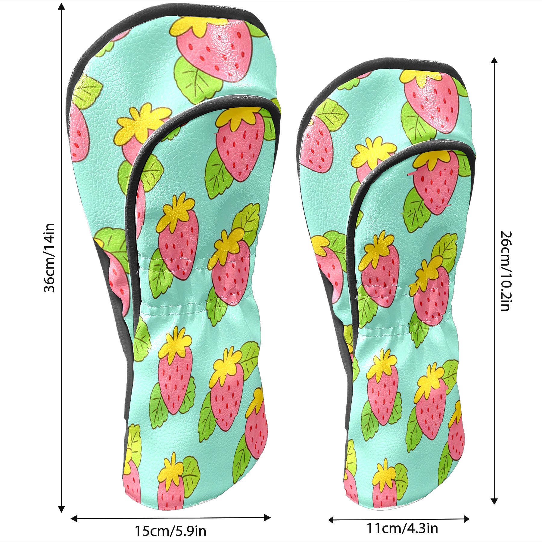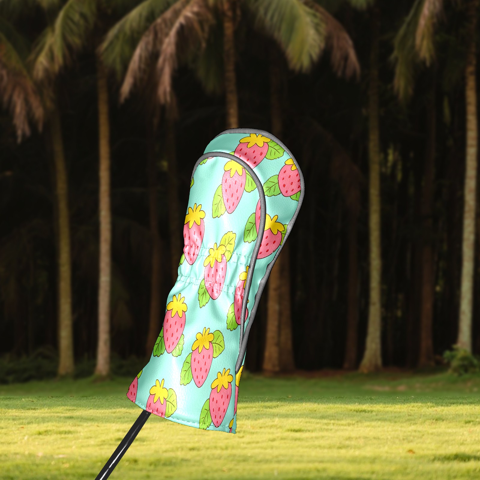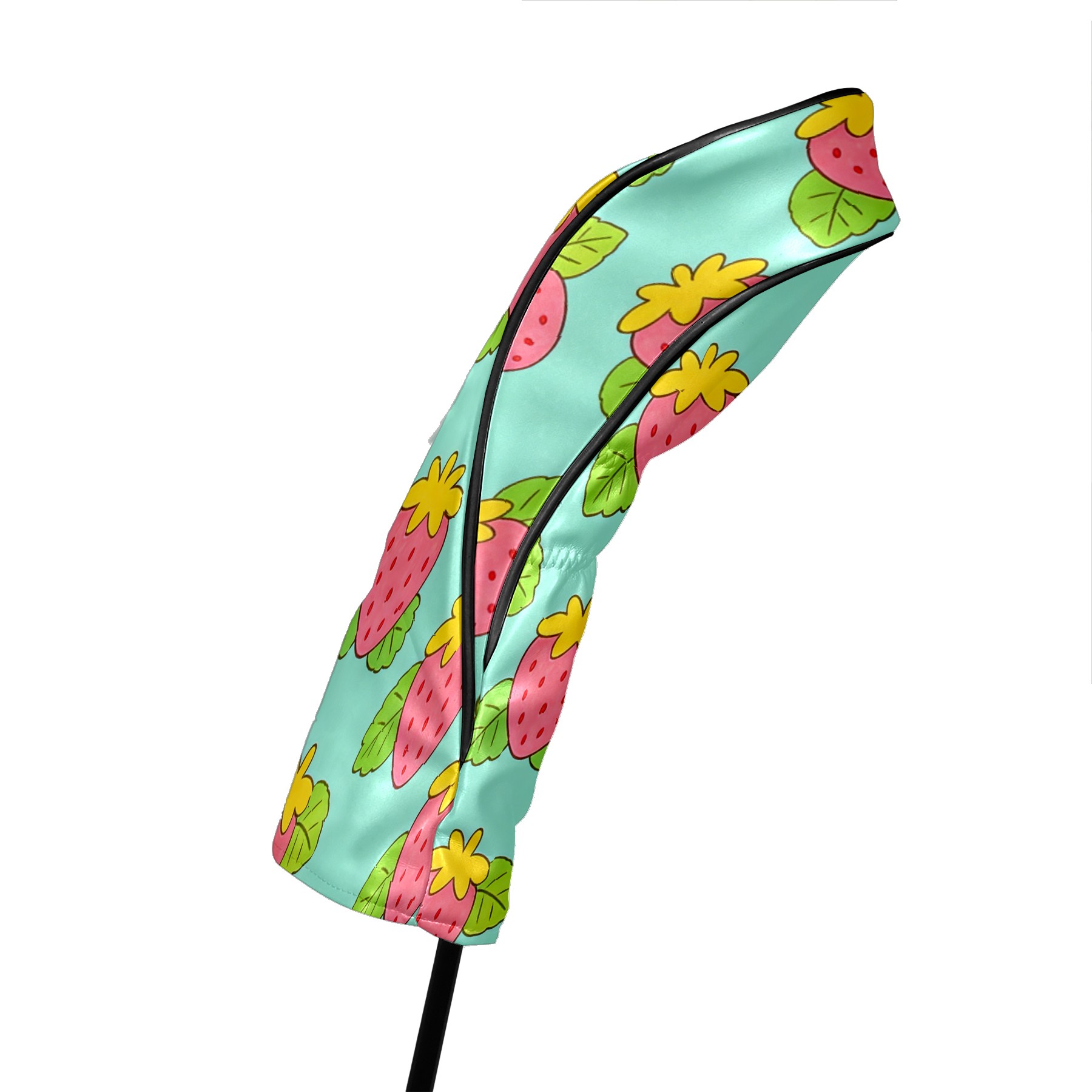 Golf Driver Head Cover Leather Driver Fairway Headcover, Premium Golf Club Covers with Plush Lining Girls Womens Mens Head Cover for Golf Clubs (Pink Strawberry Green)