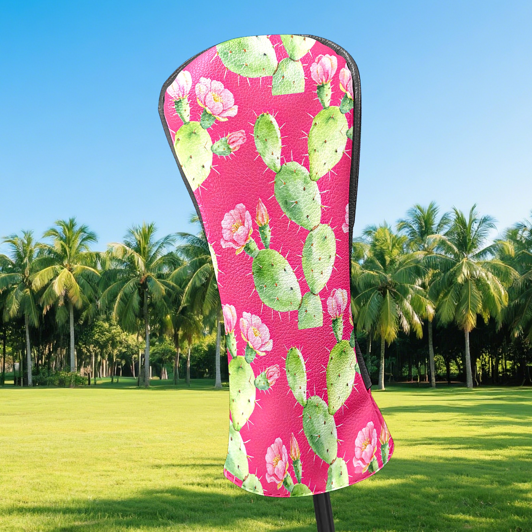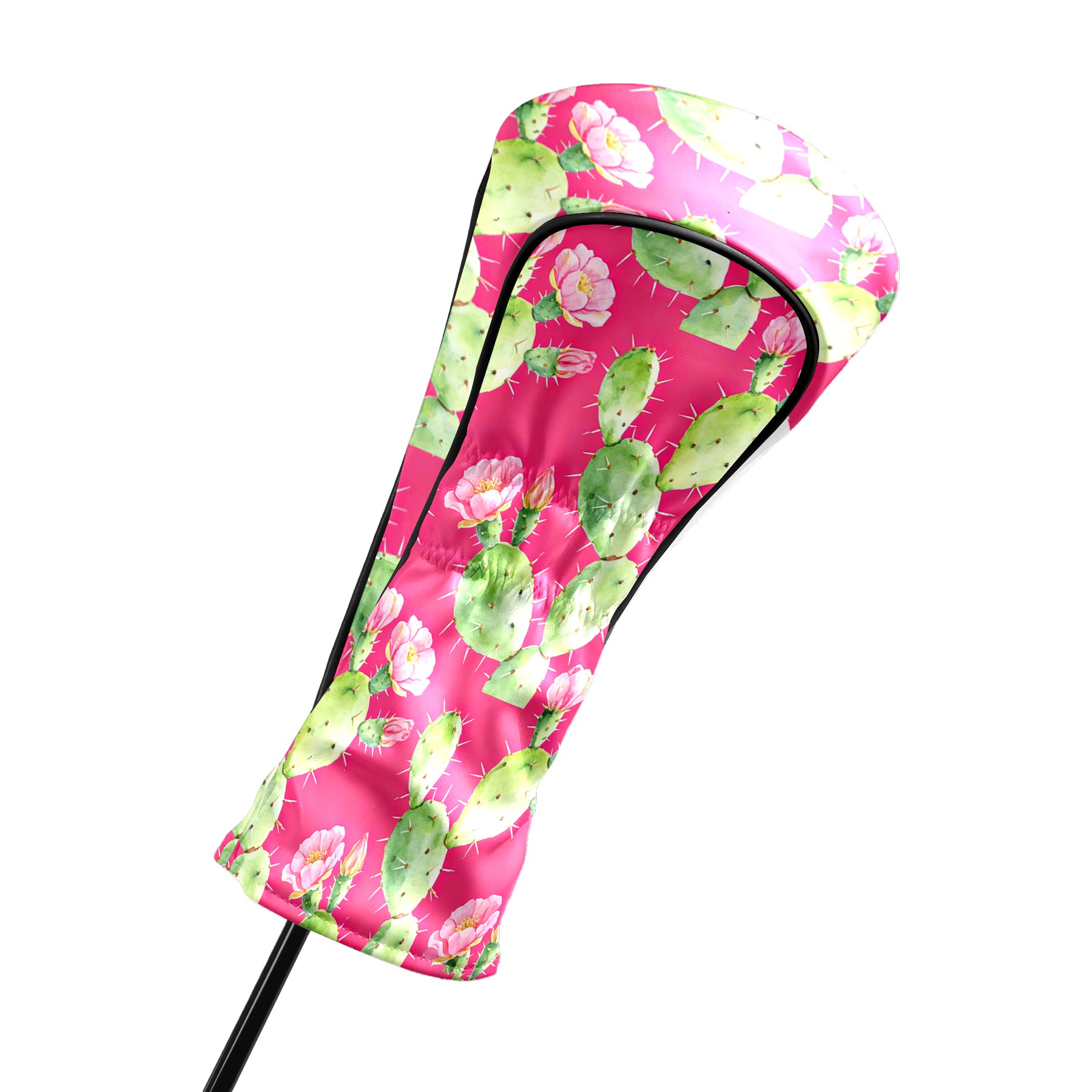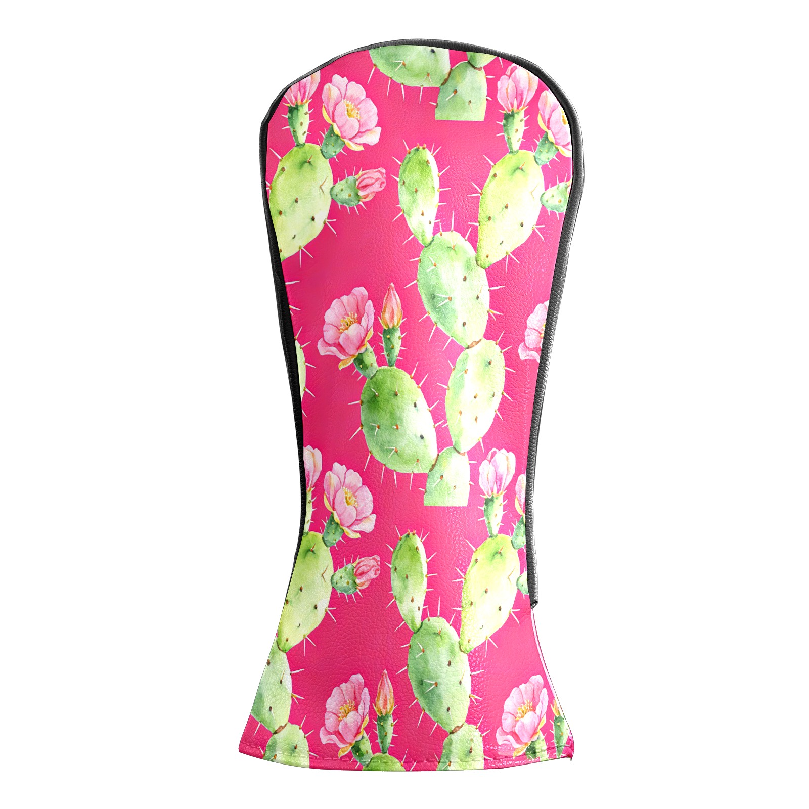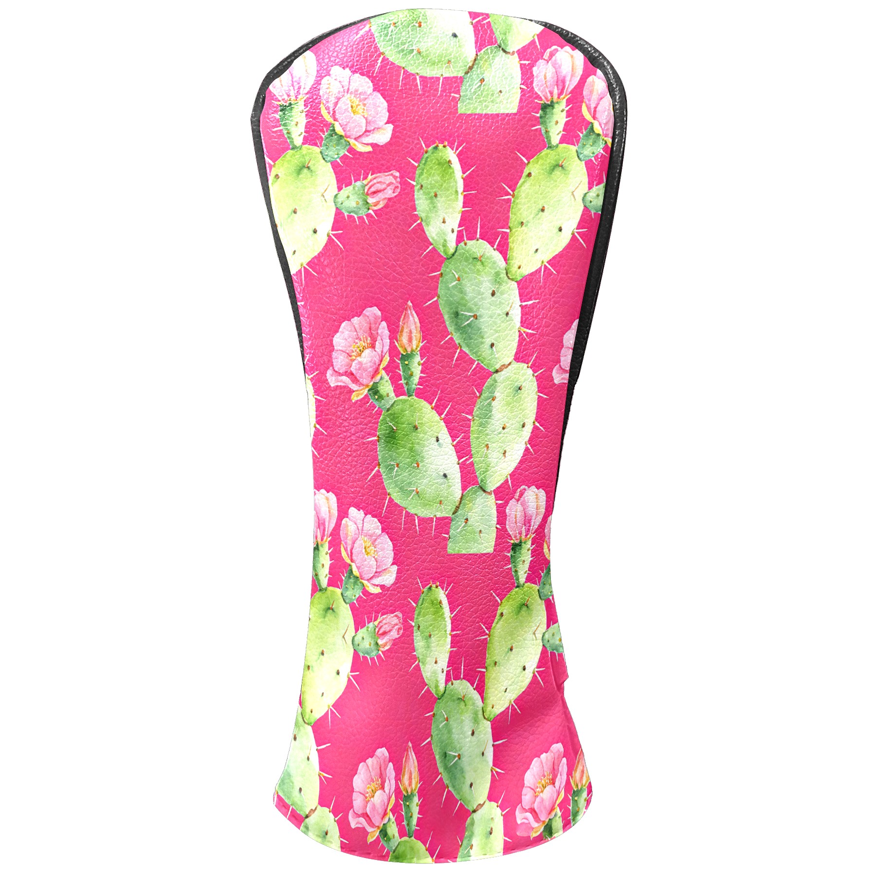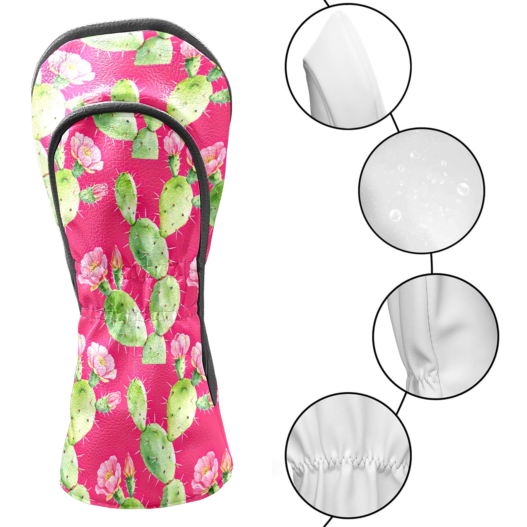 Golf Driver Head Cover Leather Driver Fairway Headcover, Premium Golf Club Covers with Plush Lining Girls Womens Mens Head Cover for Golf Clubs (Hot Pink Cactus)