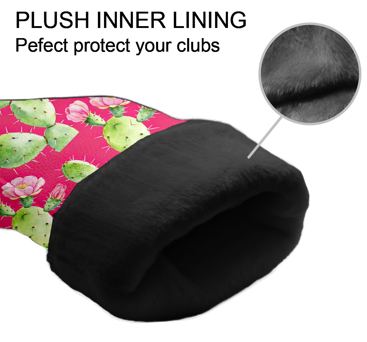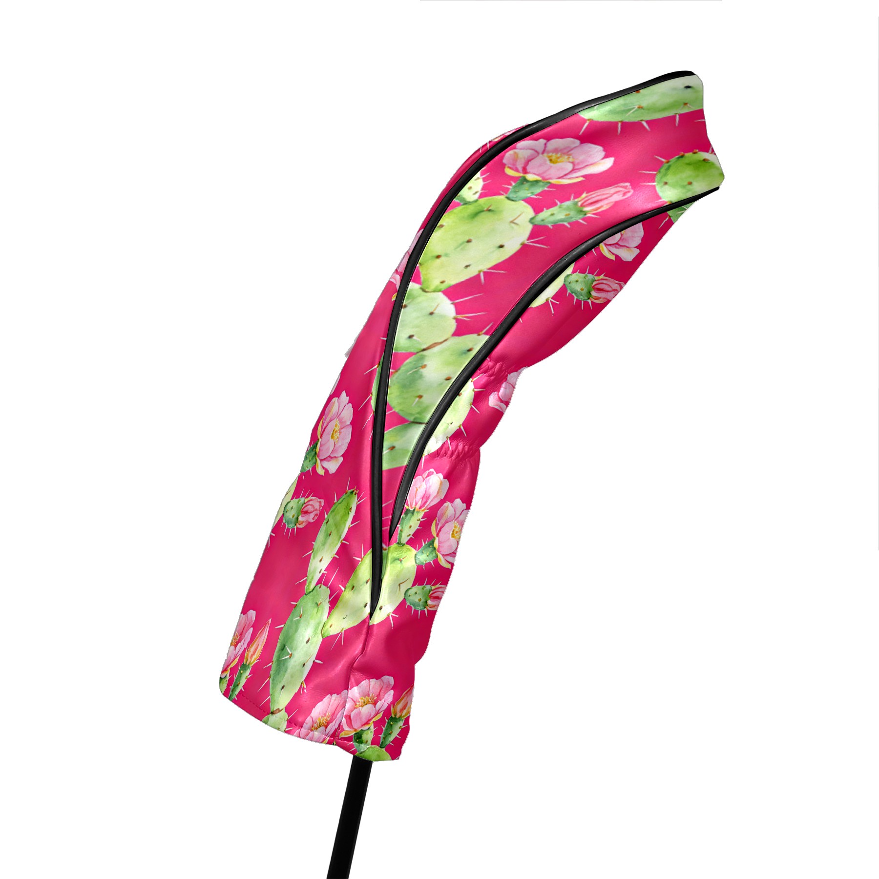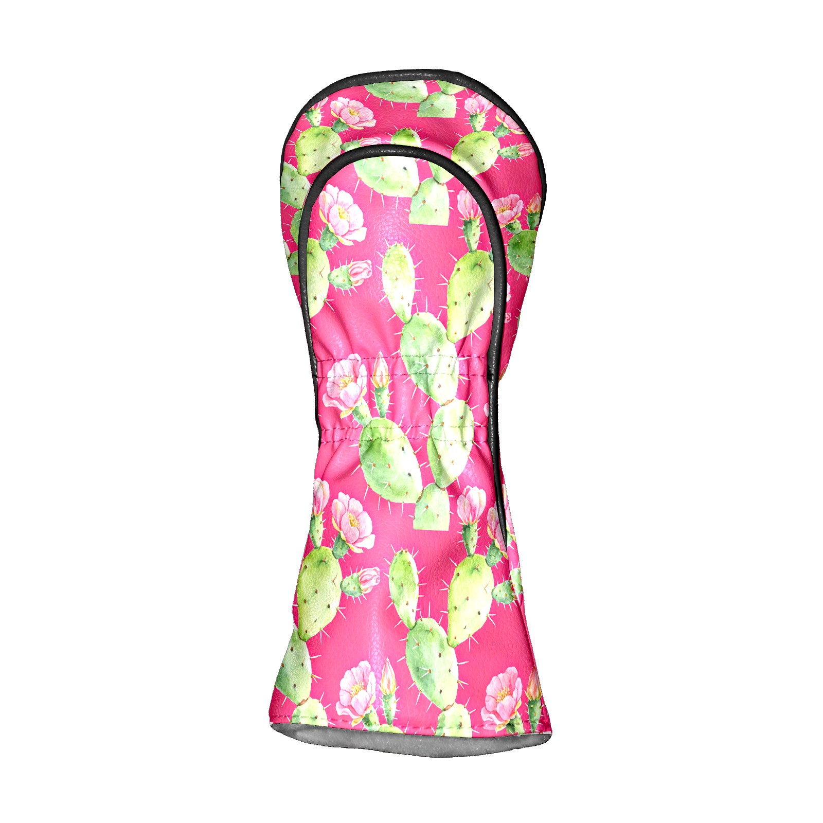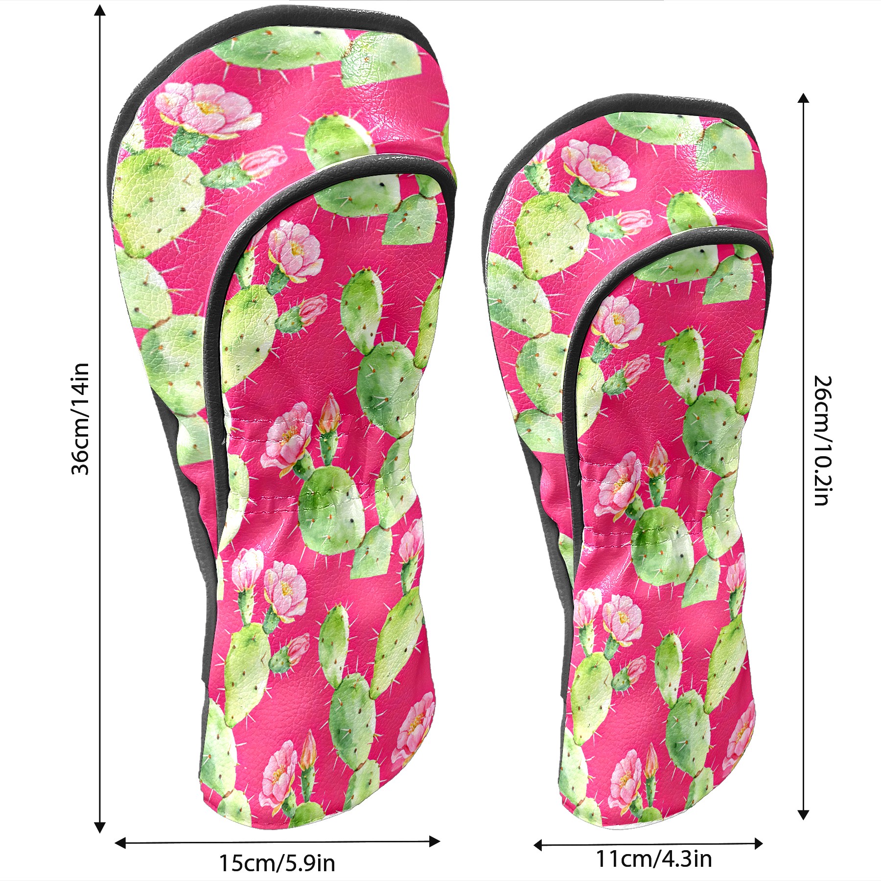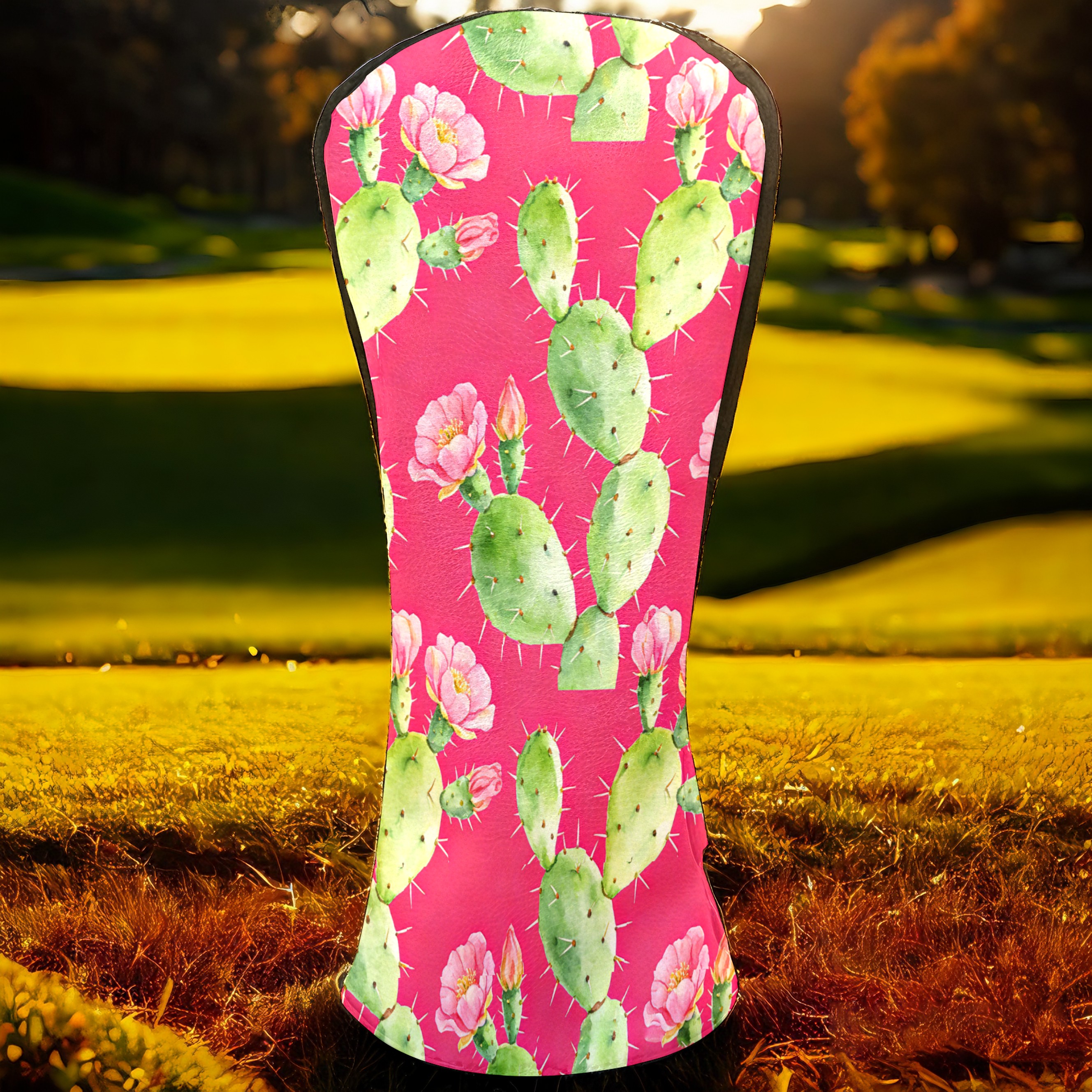 Golf Driver Head Cover Leather Driver Fairway Headcover, Premium Golf Club Covers with Plush Lining Girls Womens Mens Head Cover for Golf Clubs (Hot Pink Cactus)
