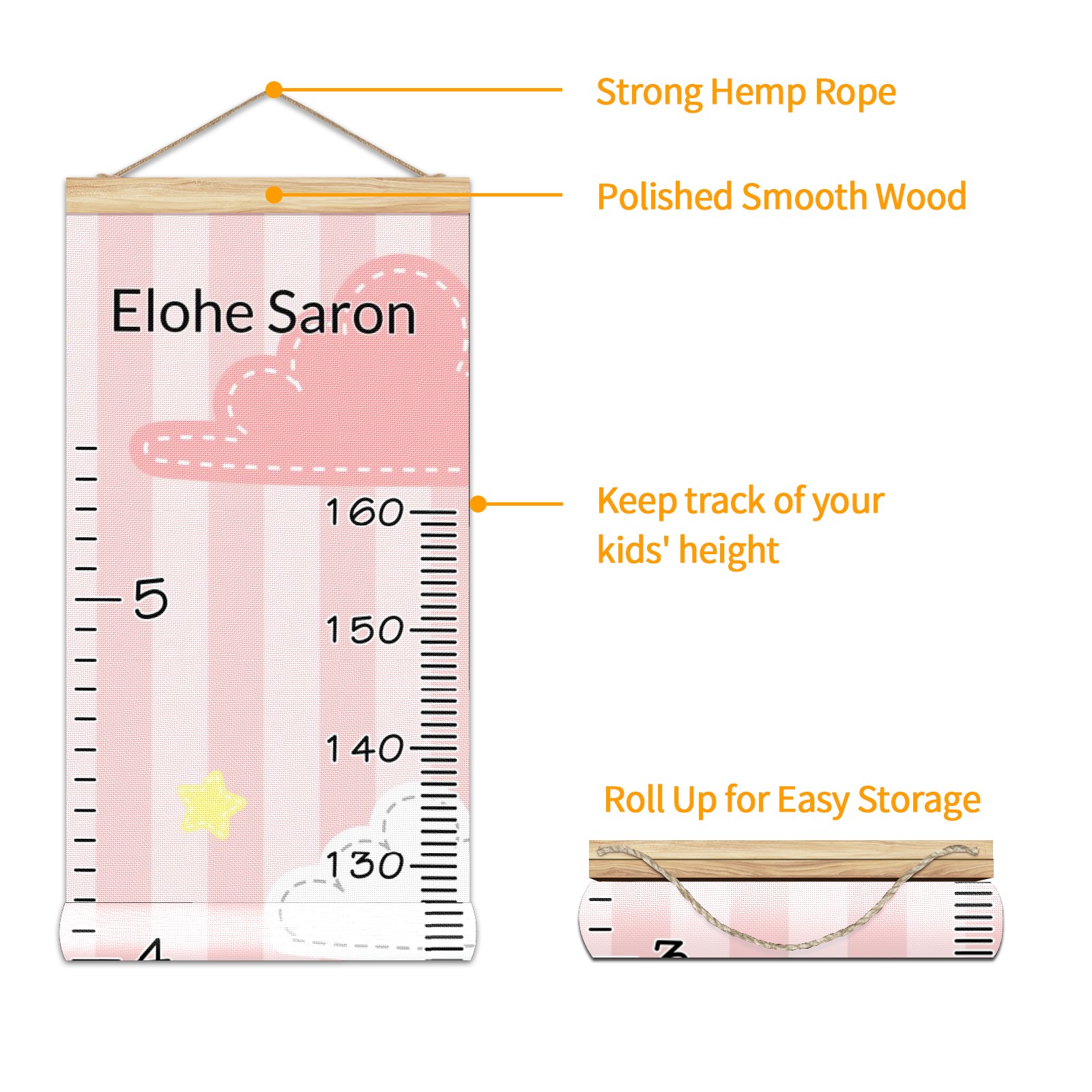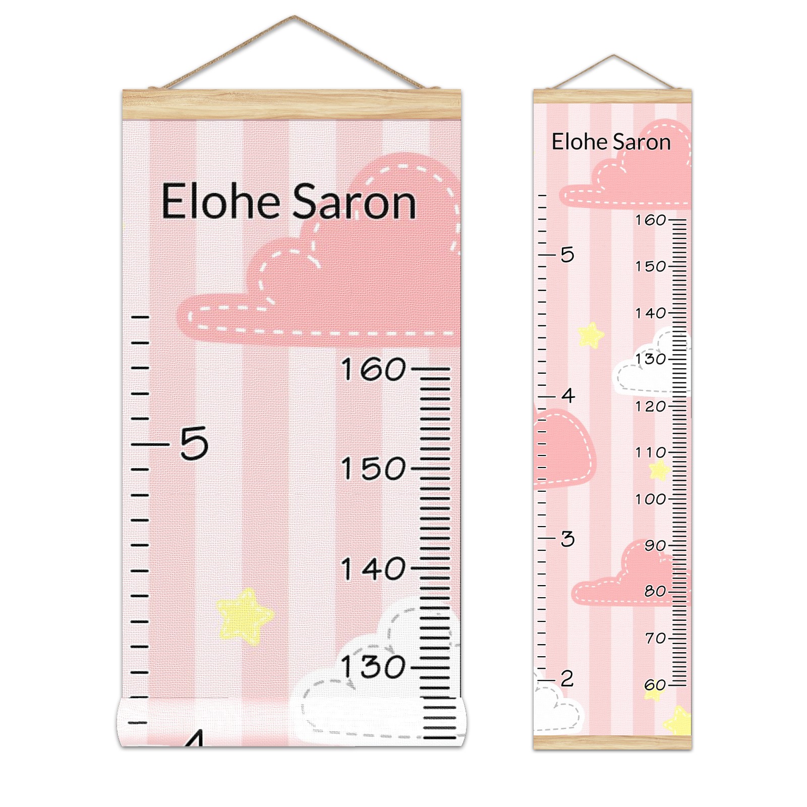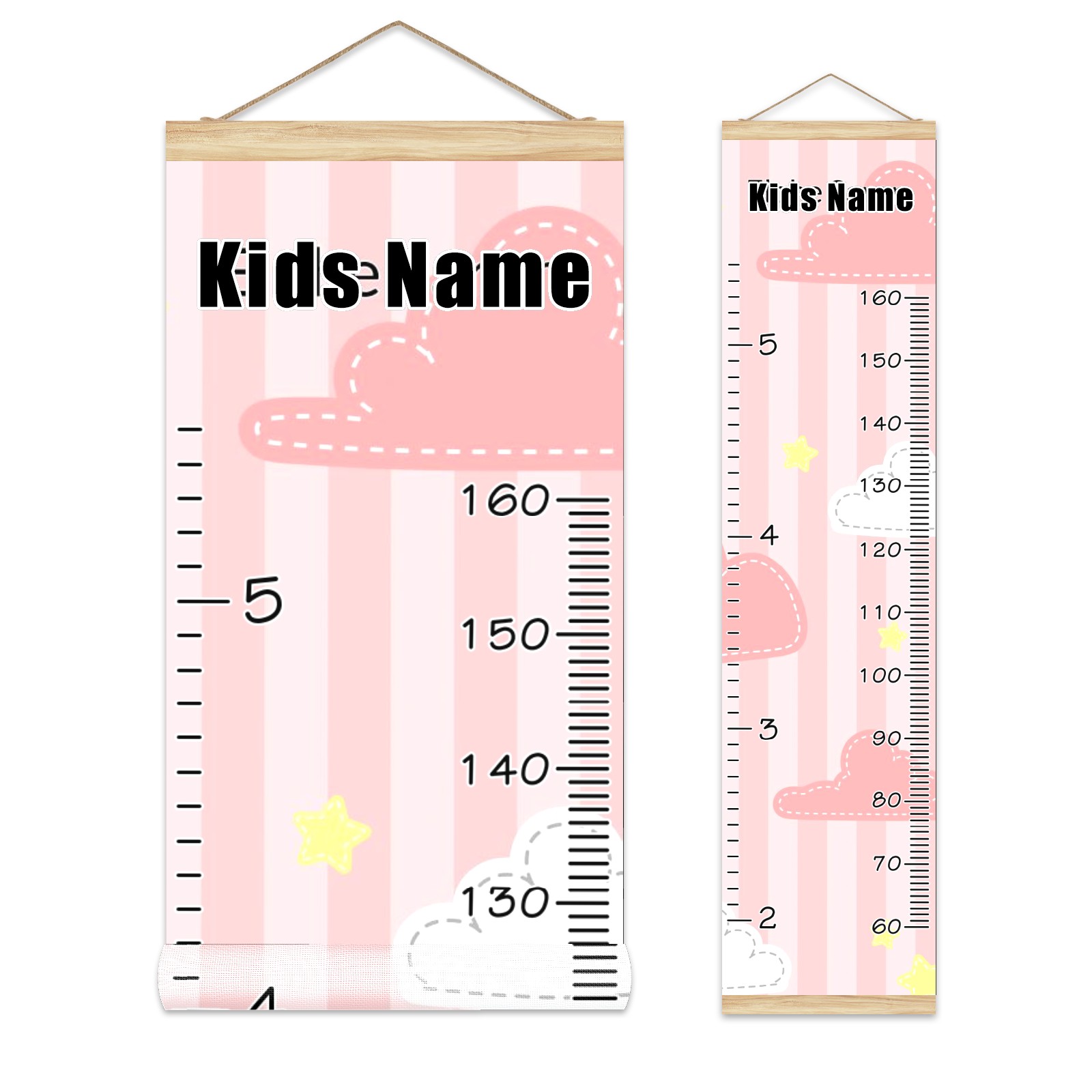 Personalized Kids Name Growth Chart Ruler for Wall Wood Frame Canvas Height Measure Chart 13.4x56 in Hanging Growth Chart Cute Pink Cloud And Star3.26 Boys Girls Room Decor