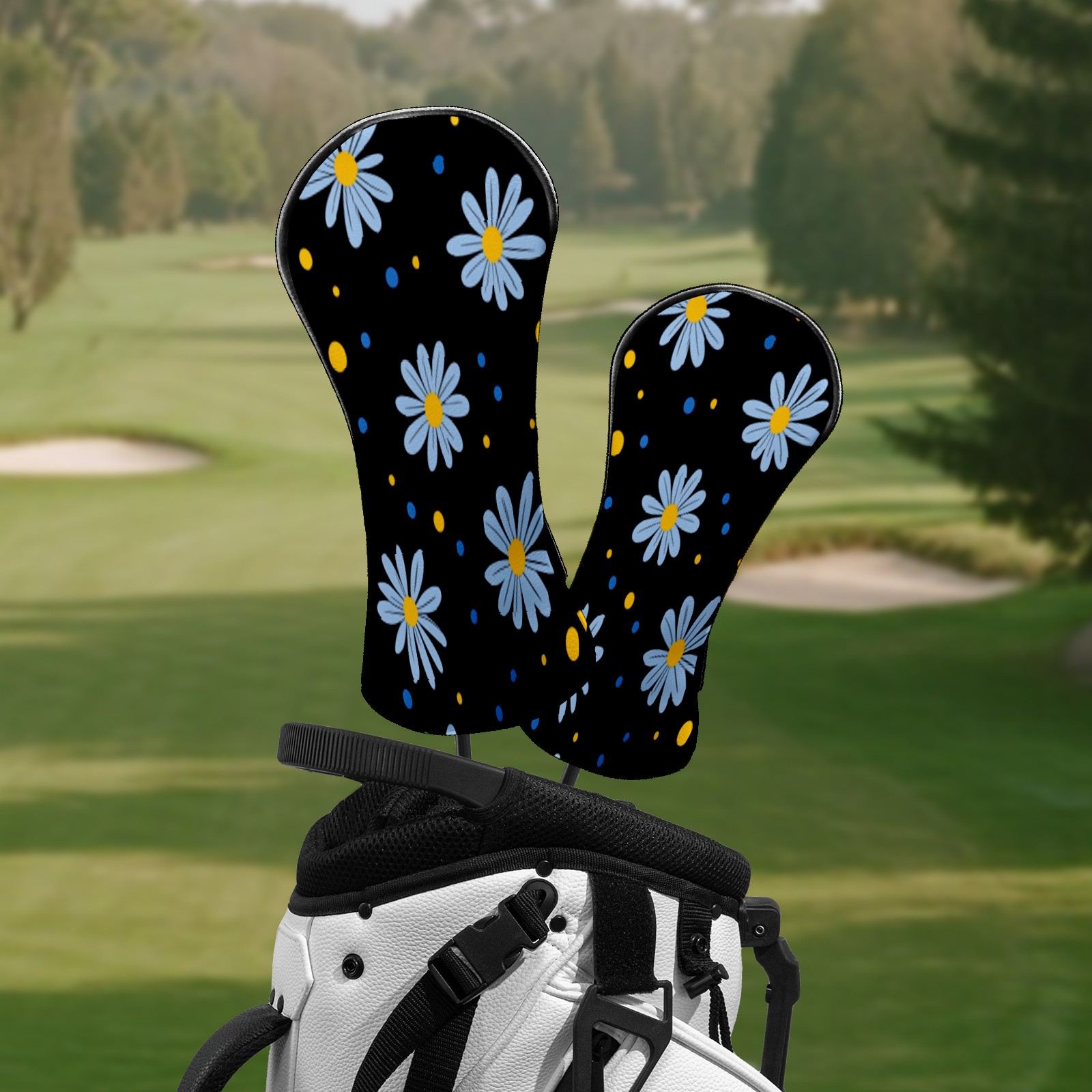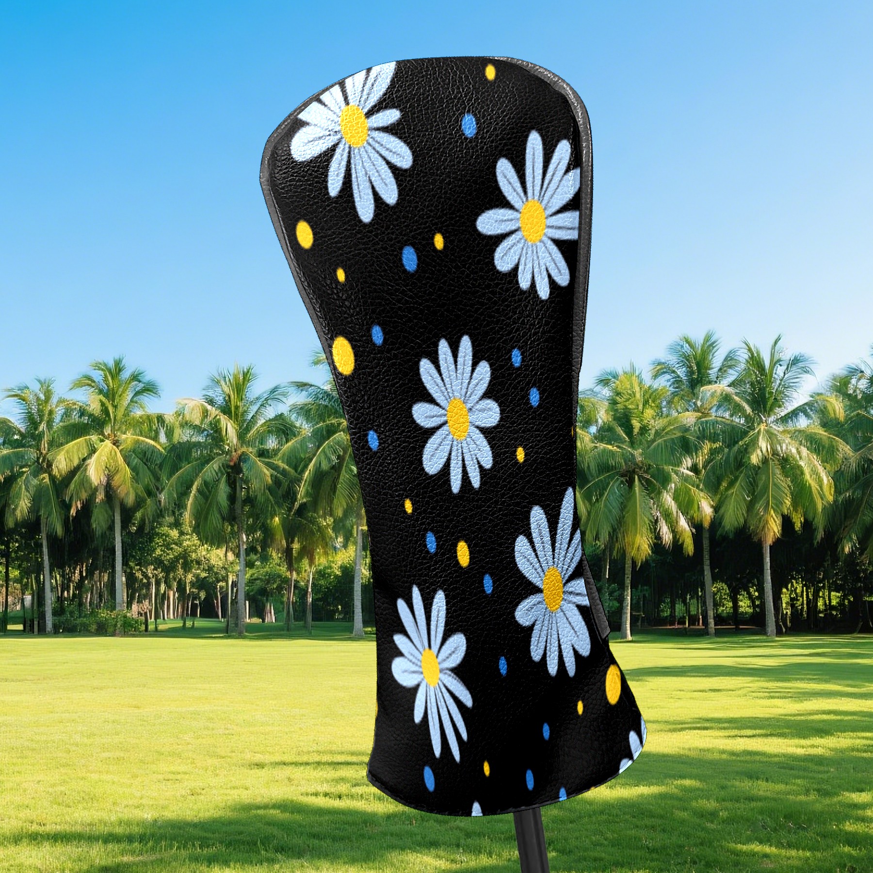 Golf Club Head Covers DaisyFlower Waterproof Leather Golf Head Covers for Men Women Driver Head Cover Fairway Headcover for Golf Lovers