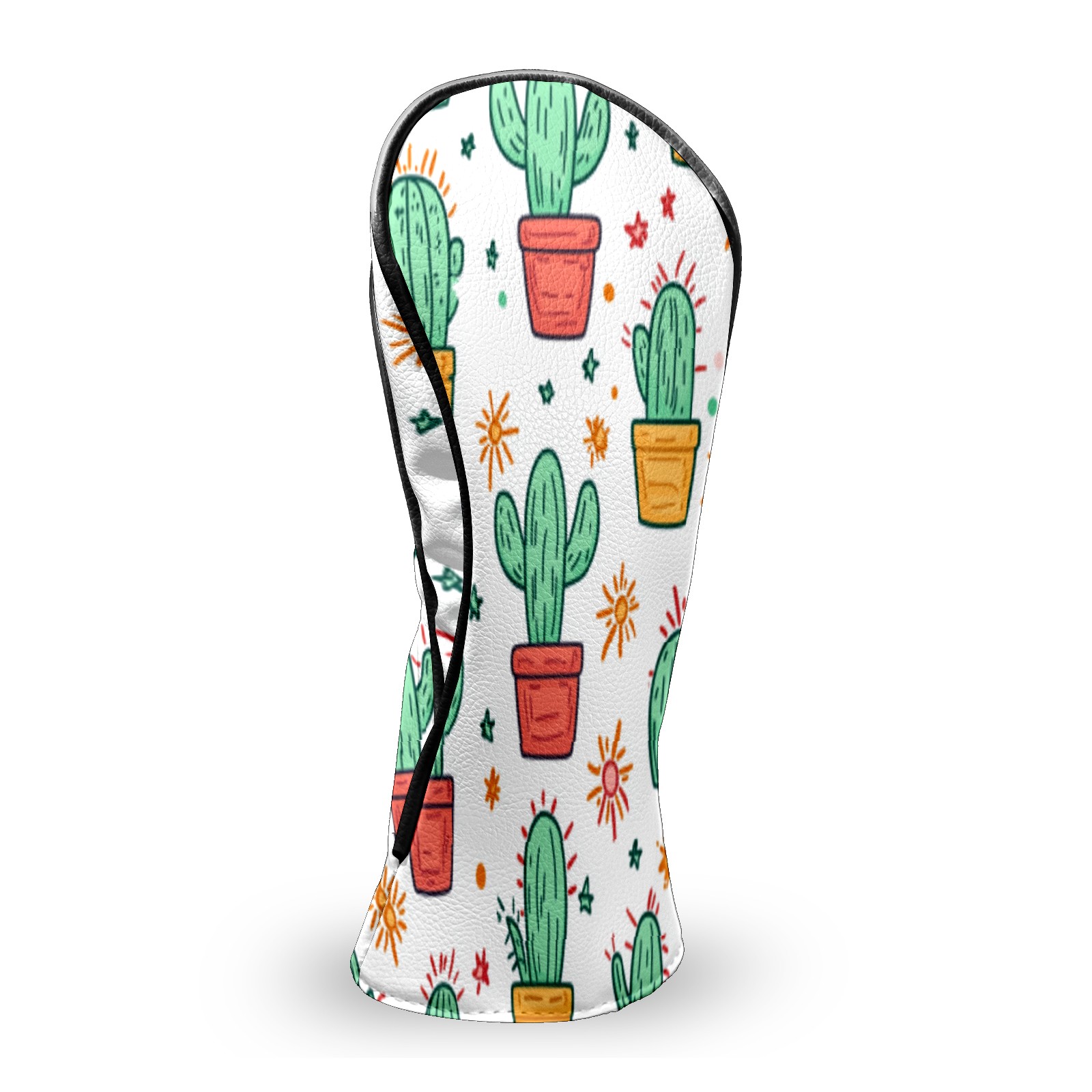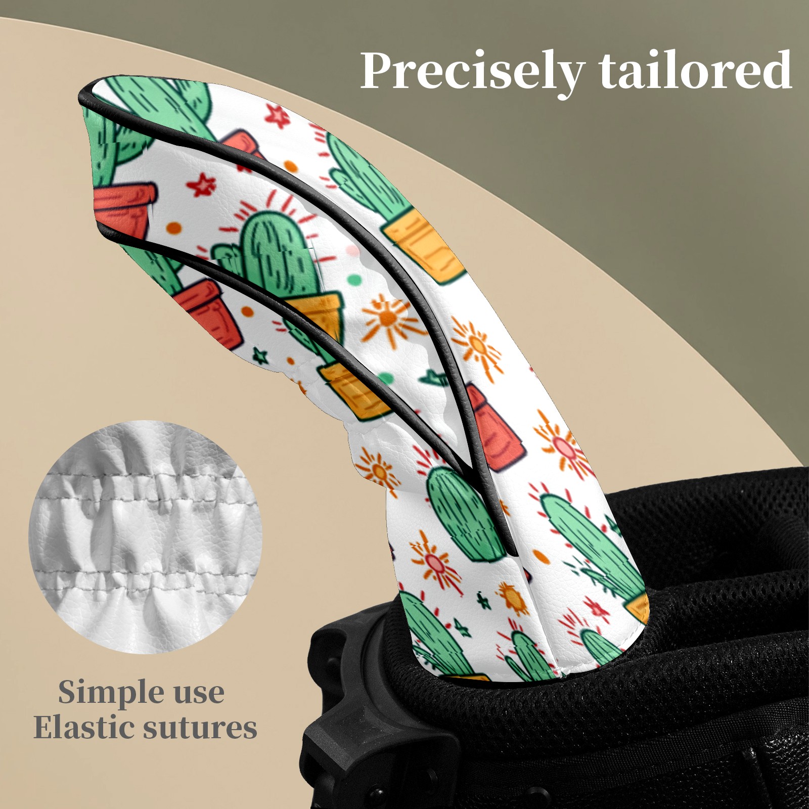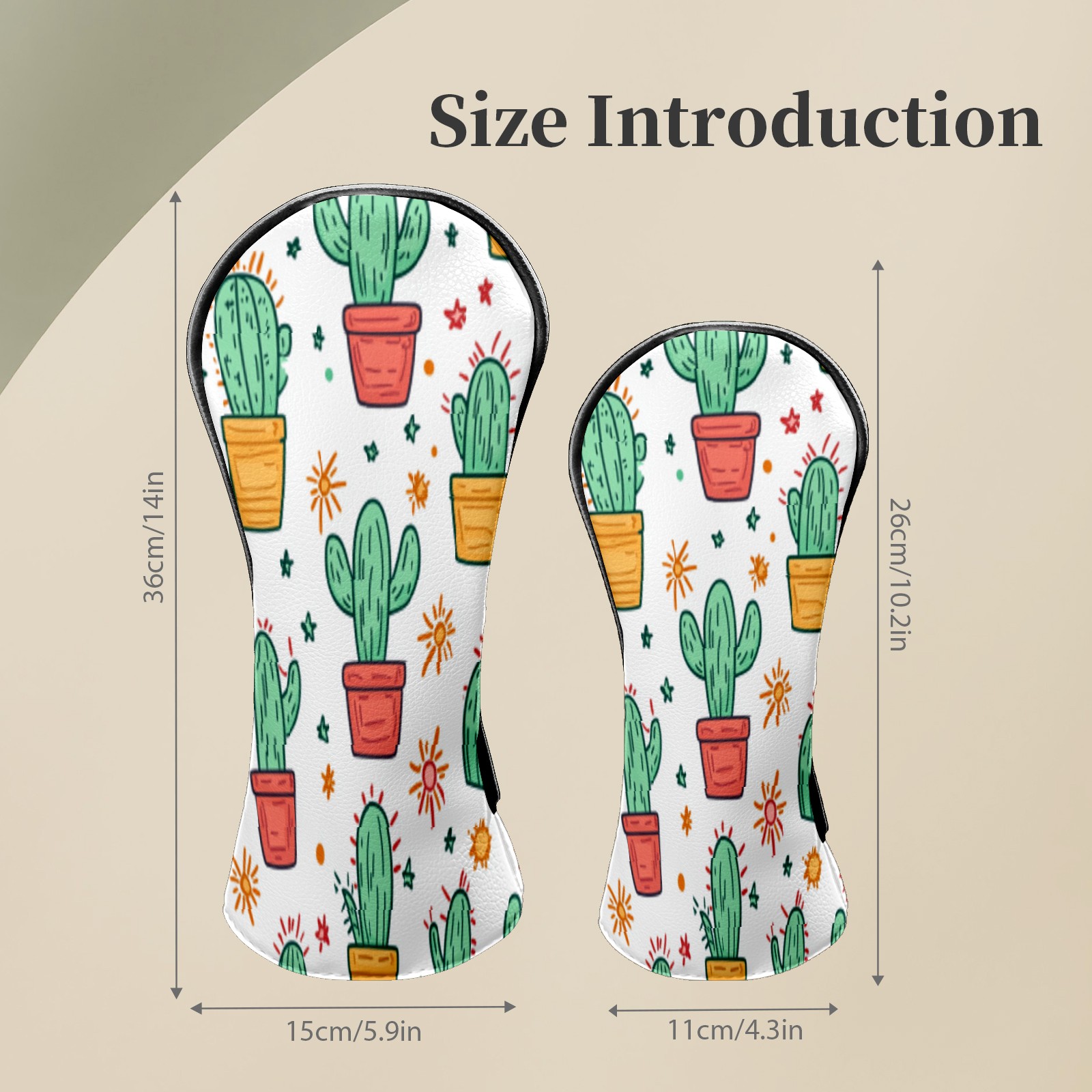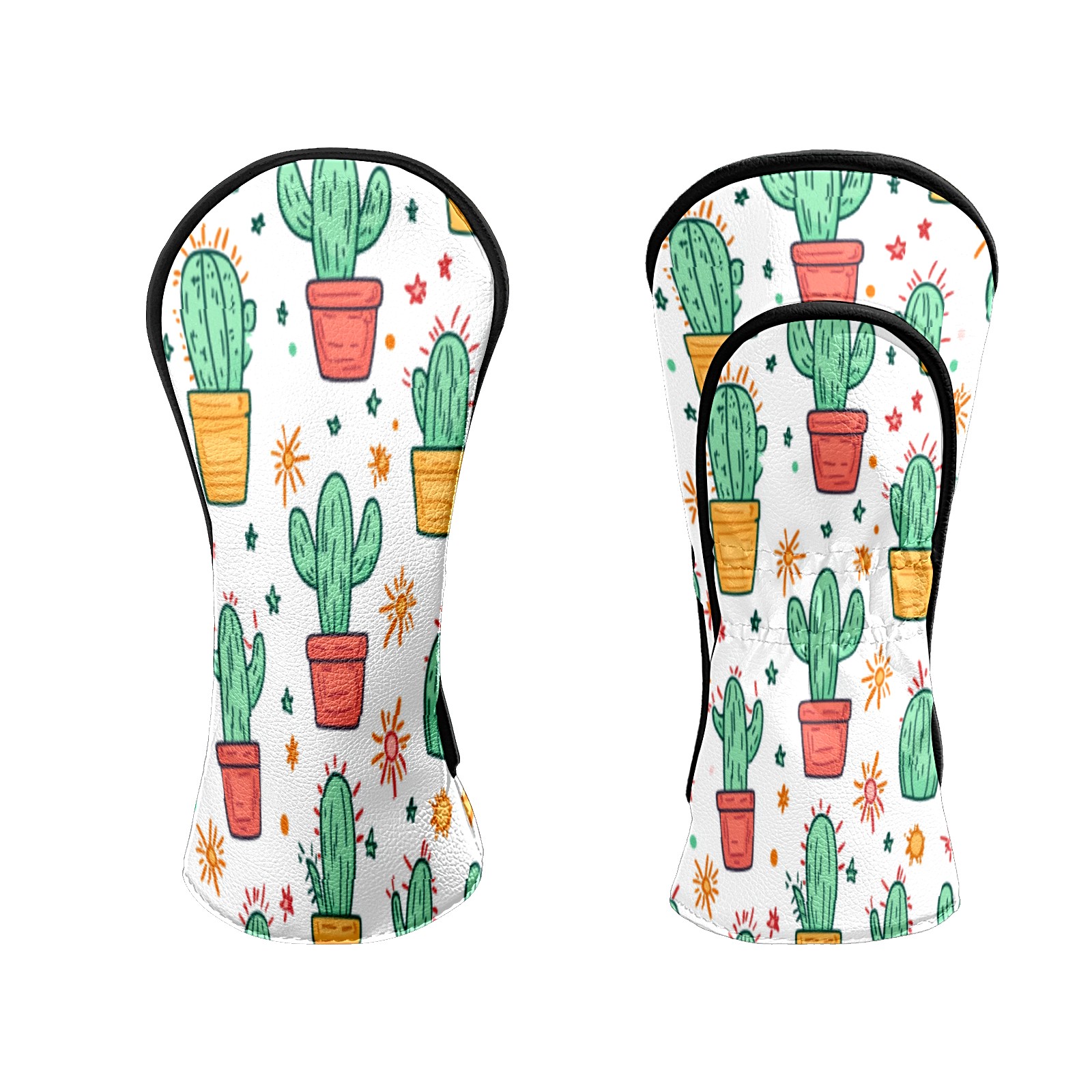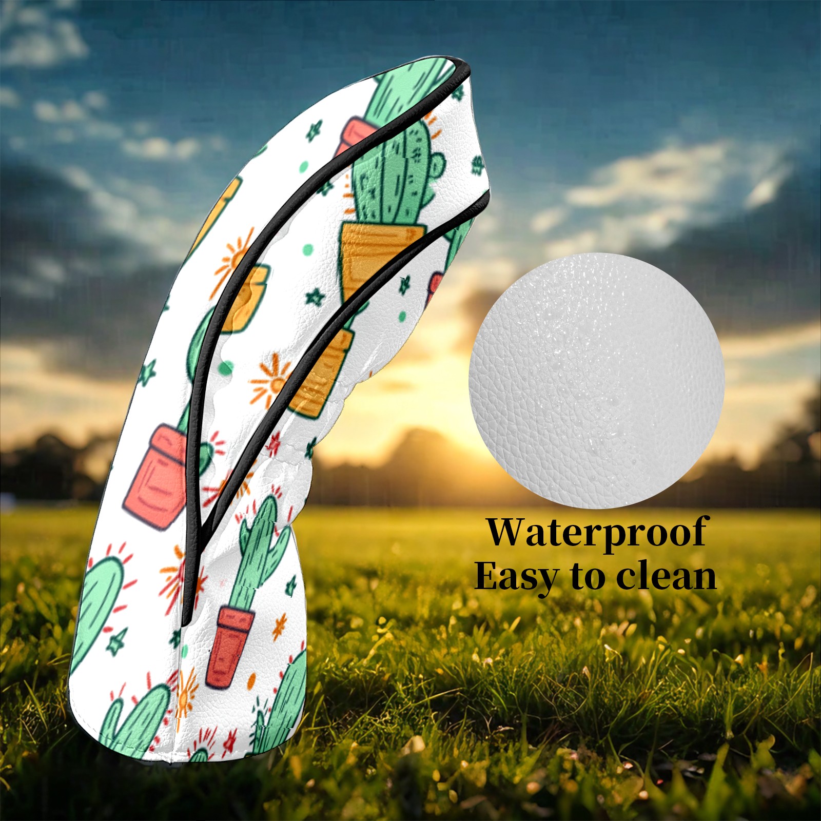 Golf Club Head Covers CactusSucculent_ColorfulPot Waterproof Leather Golf Head Covers for Men Women Driver Head Cover Fairway Headcover for Golf Lovers