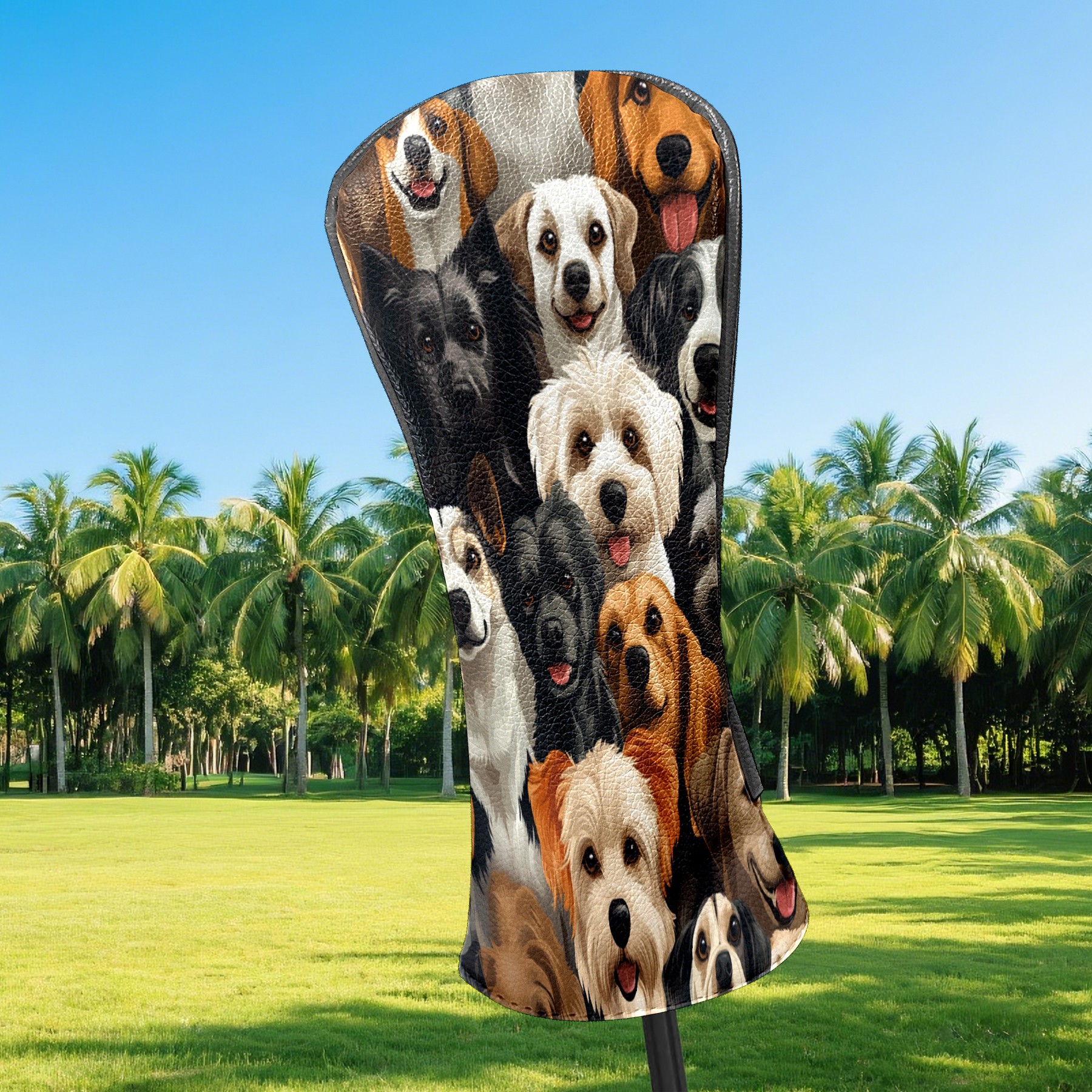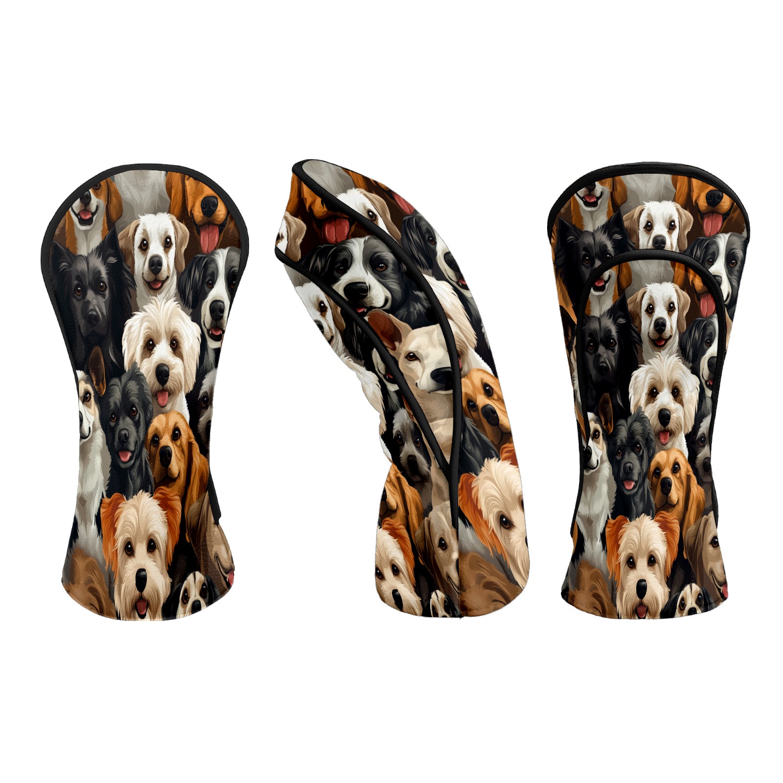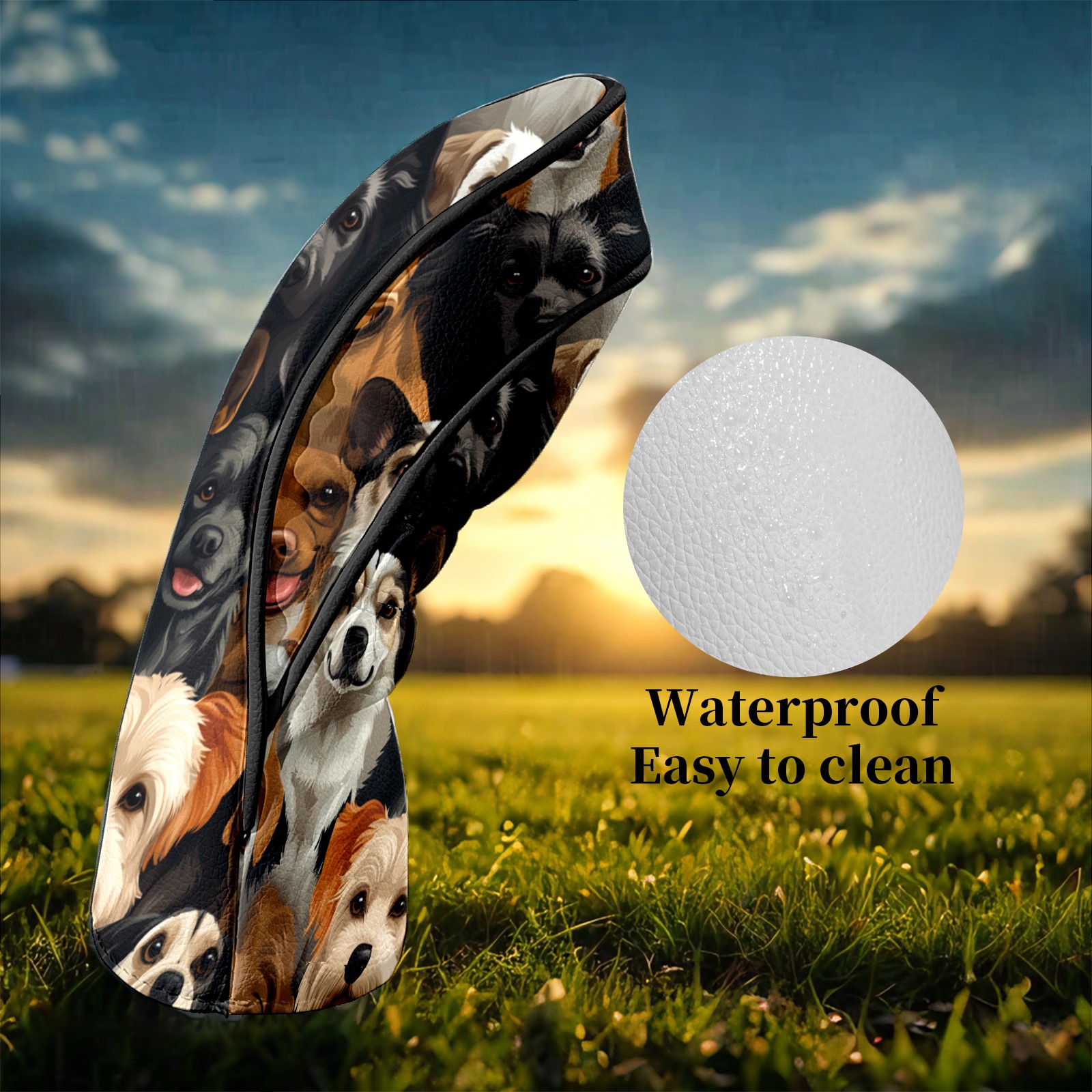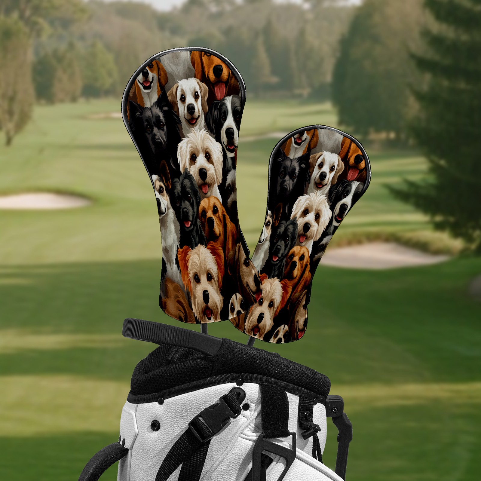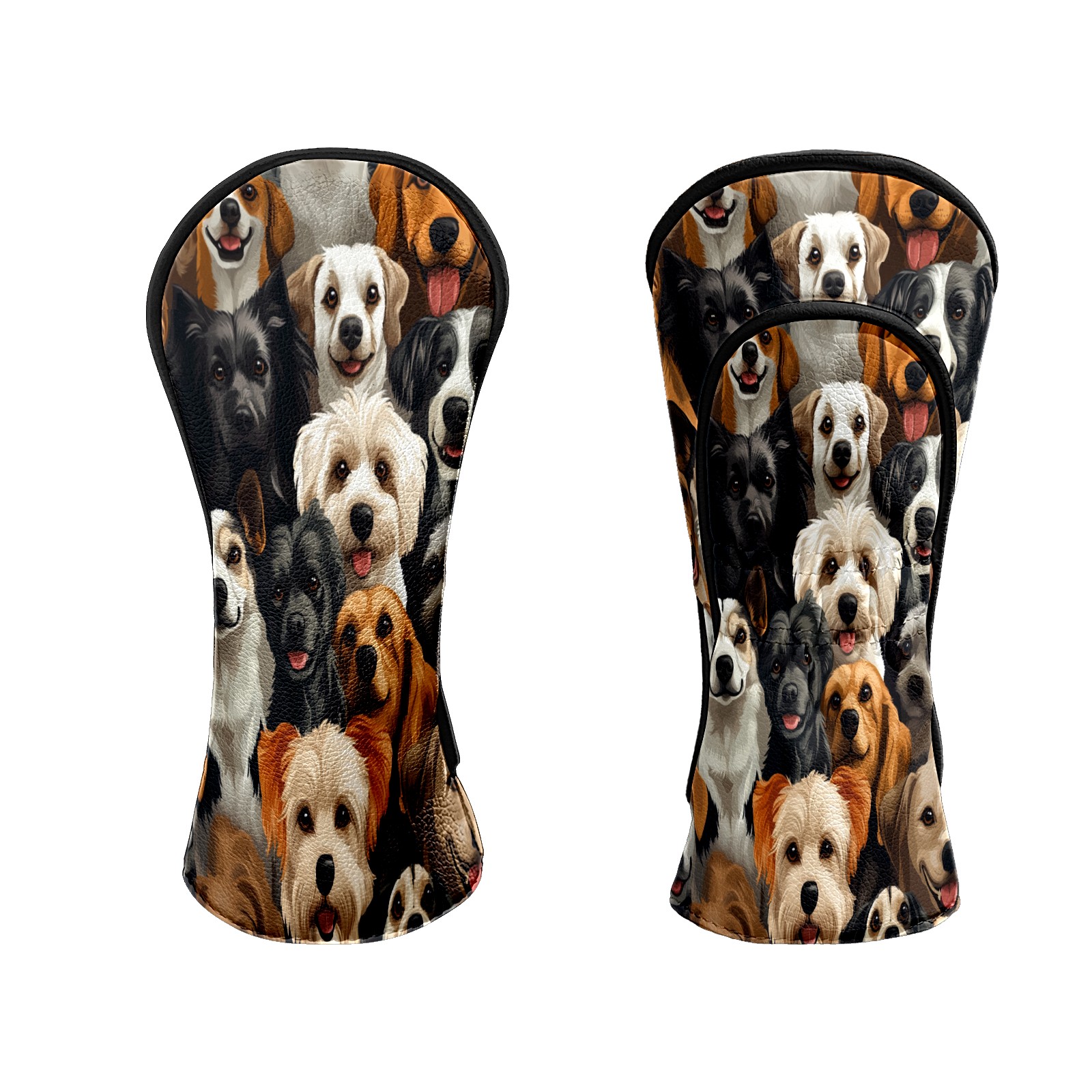 Golf Club Head Covers HappyDogs_ColorfulCrowd Waterproof Leather Golf Head Covers for Men Women Driver Head Cover Fairway Headcover for Golf Lovers