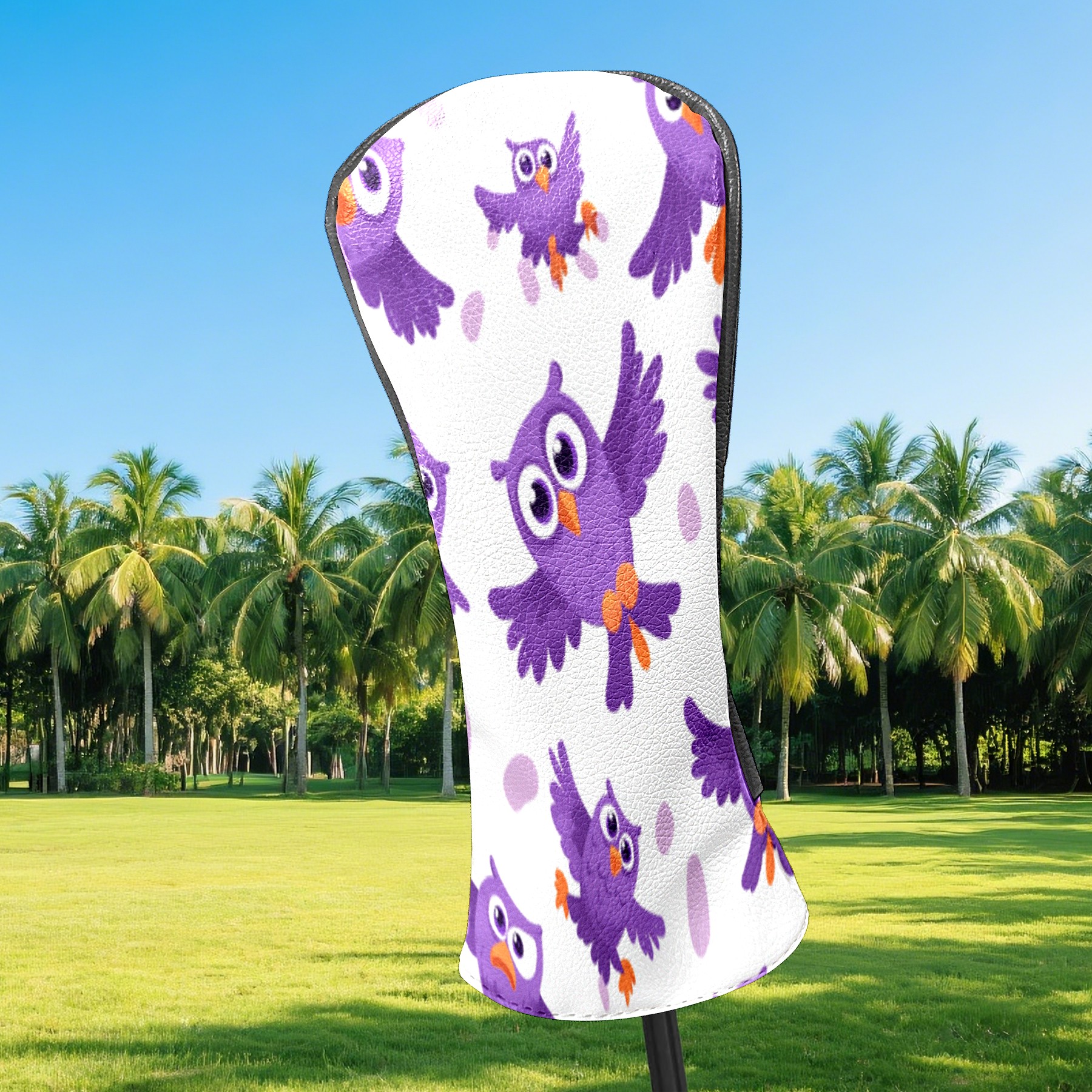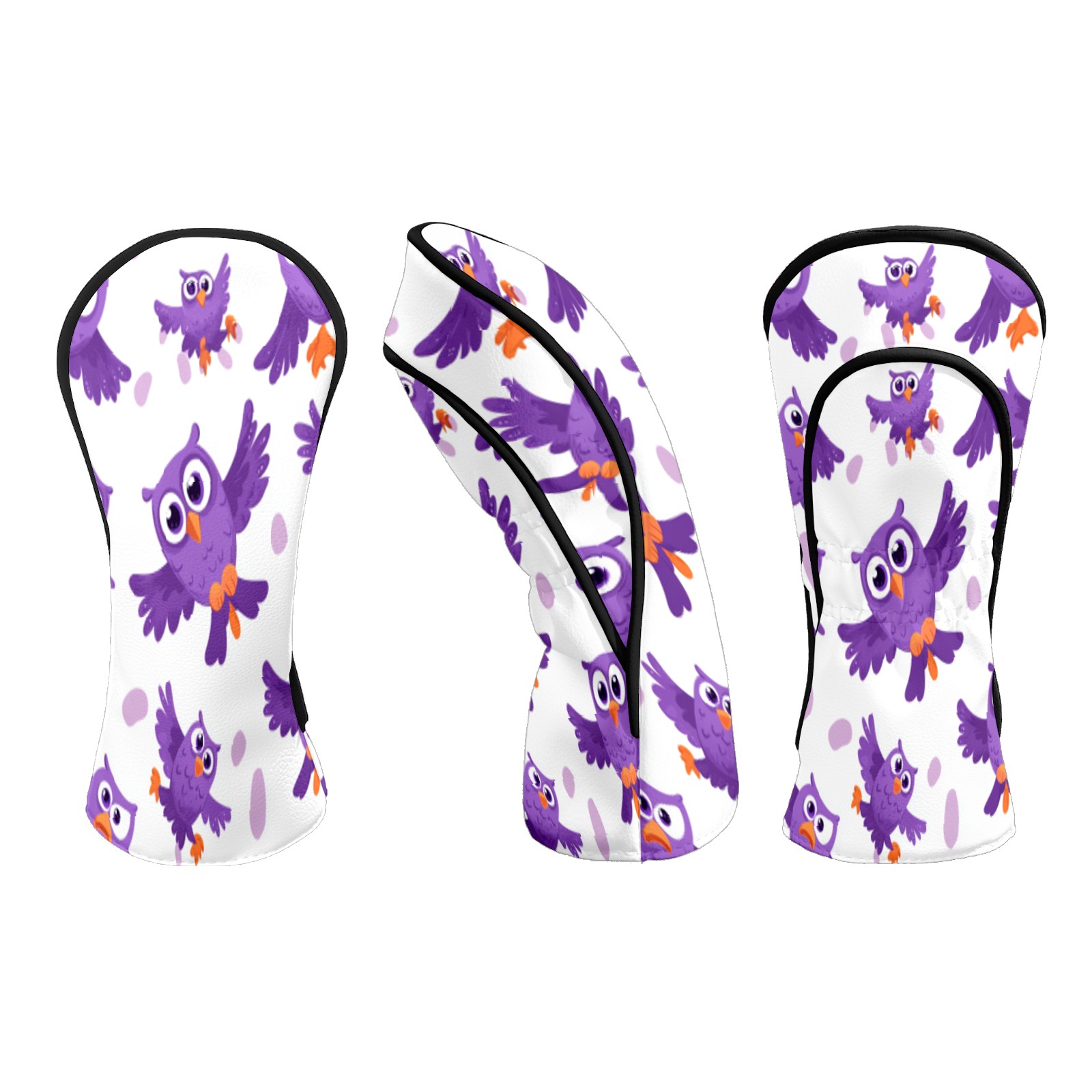 Golf Club Head Covers Purple Owl Waterproof Leather Golf Head Covers for Men Women Driver Head Cover Fairway Headcover for Golf Lovers