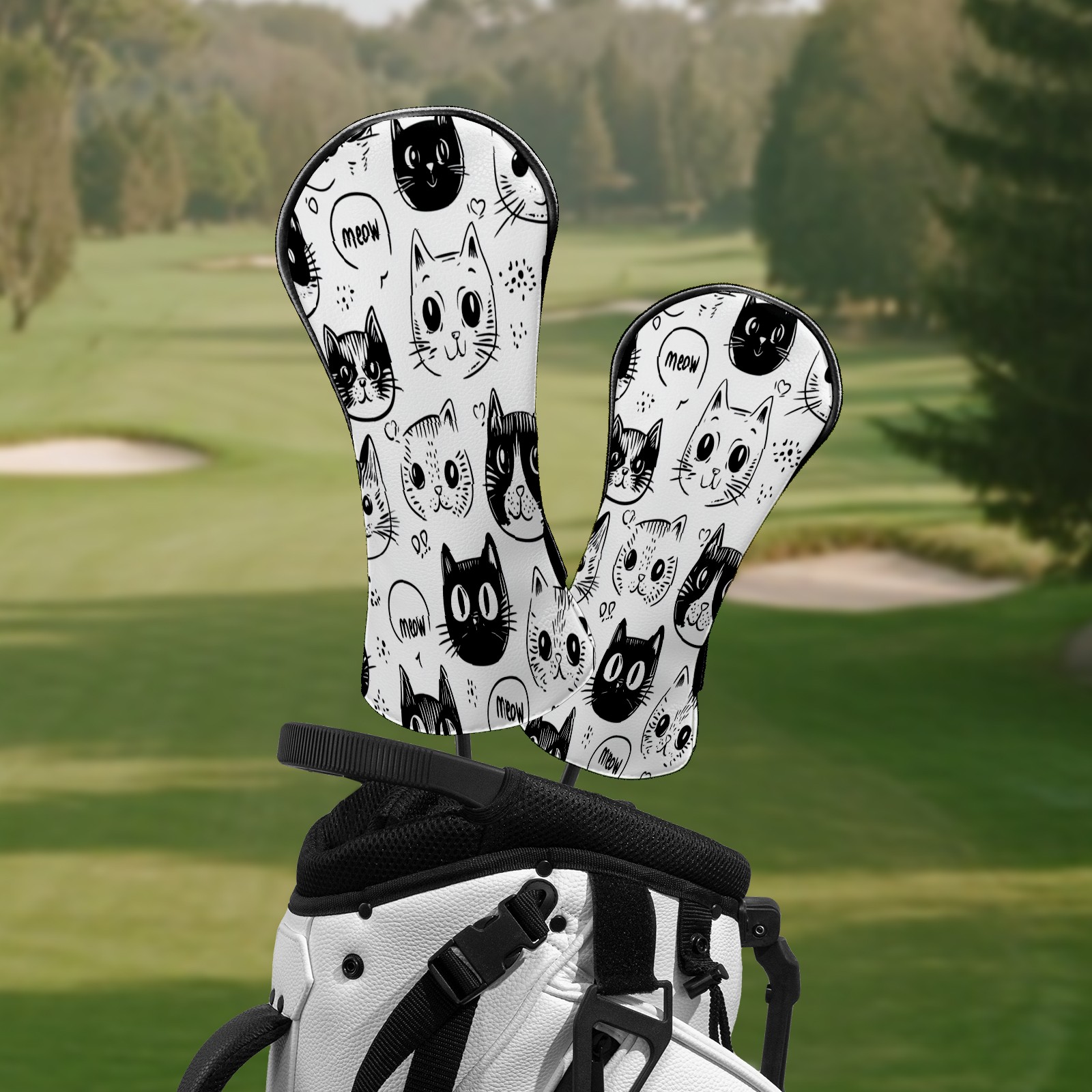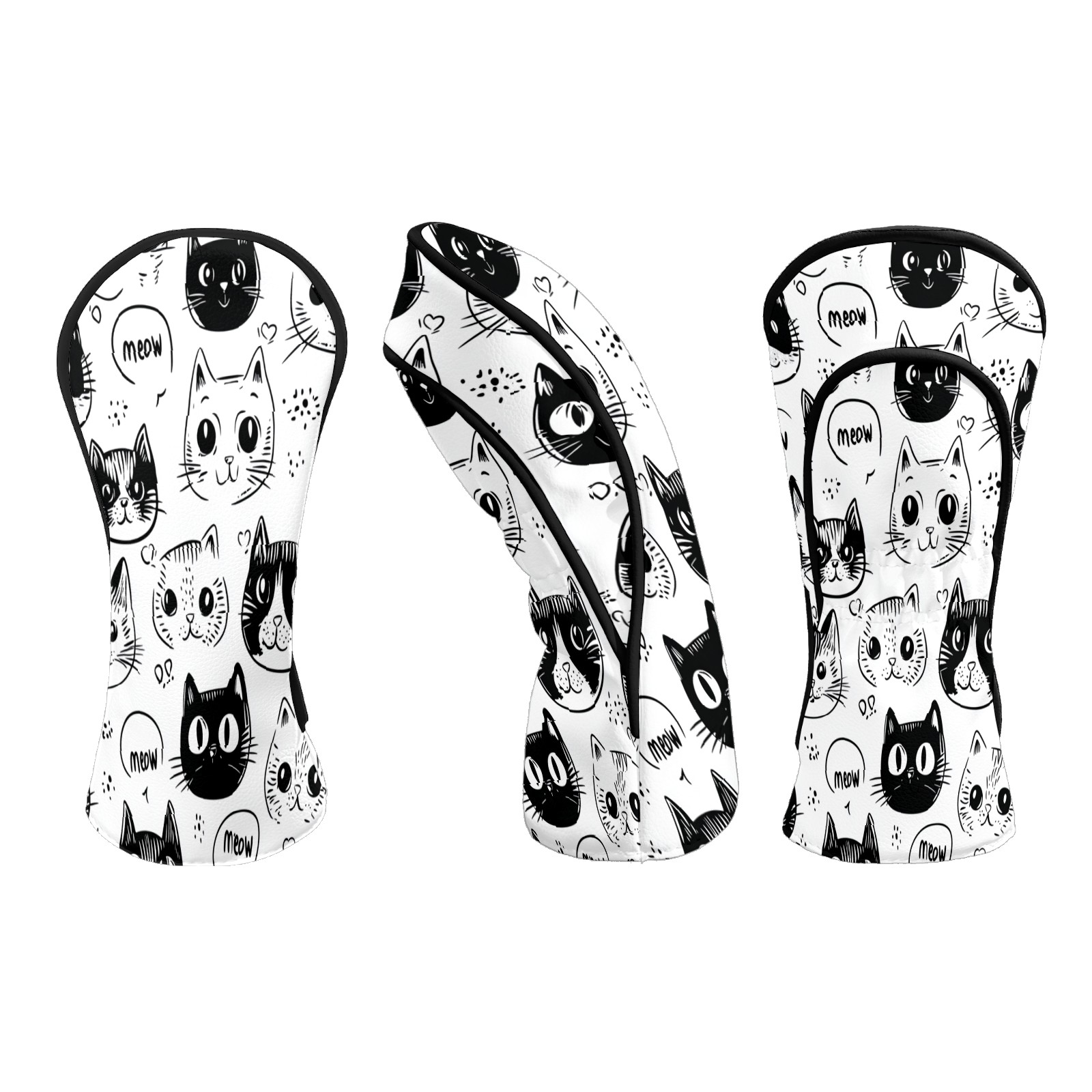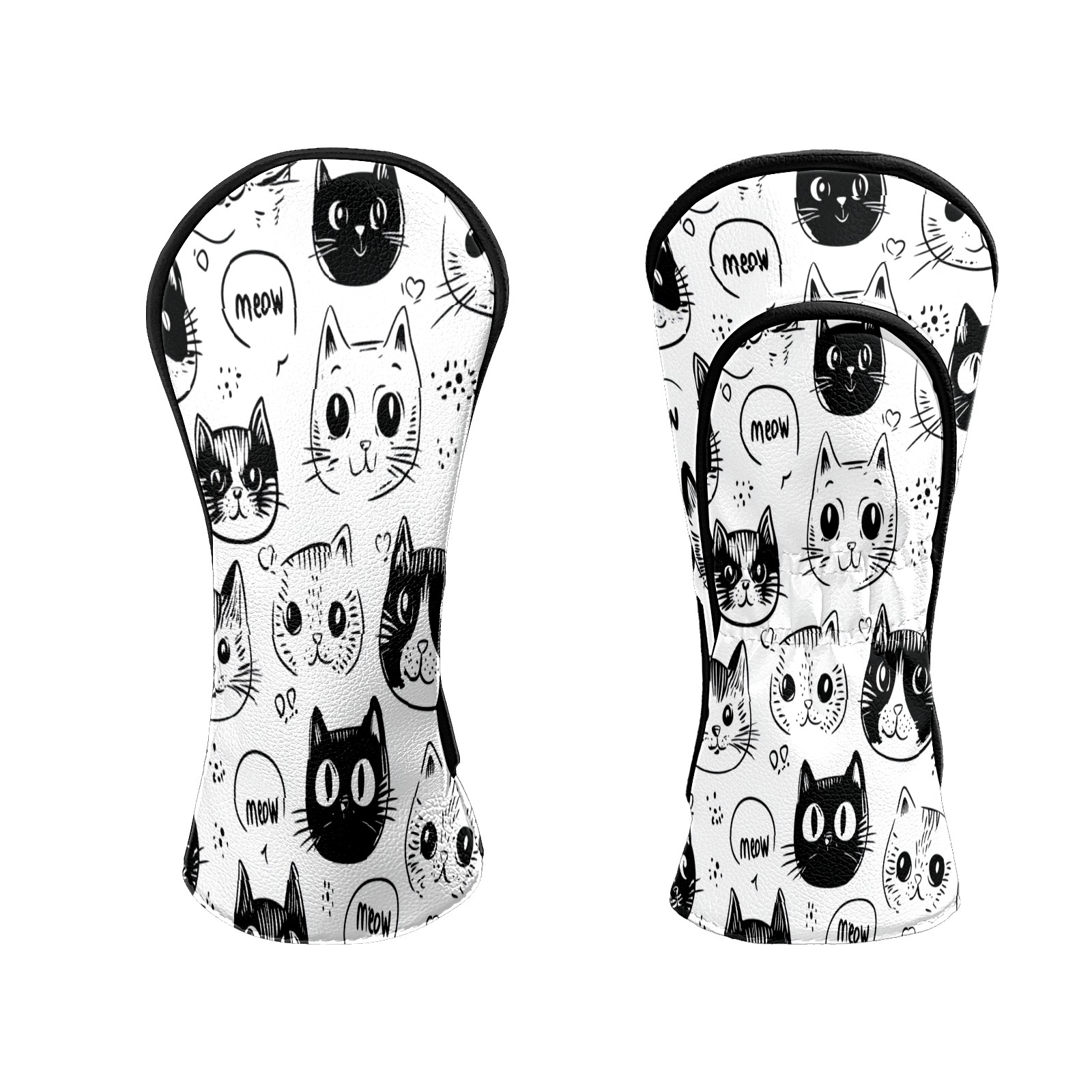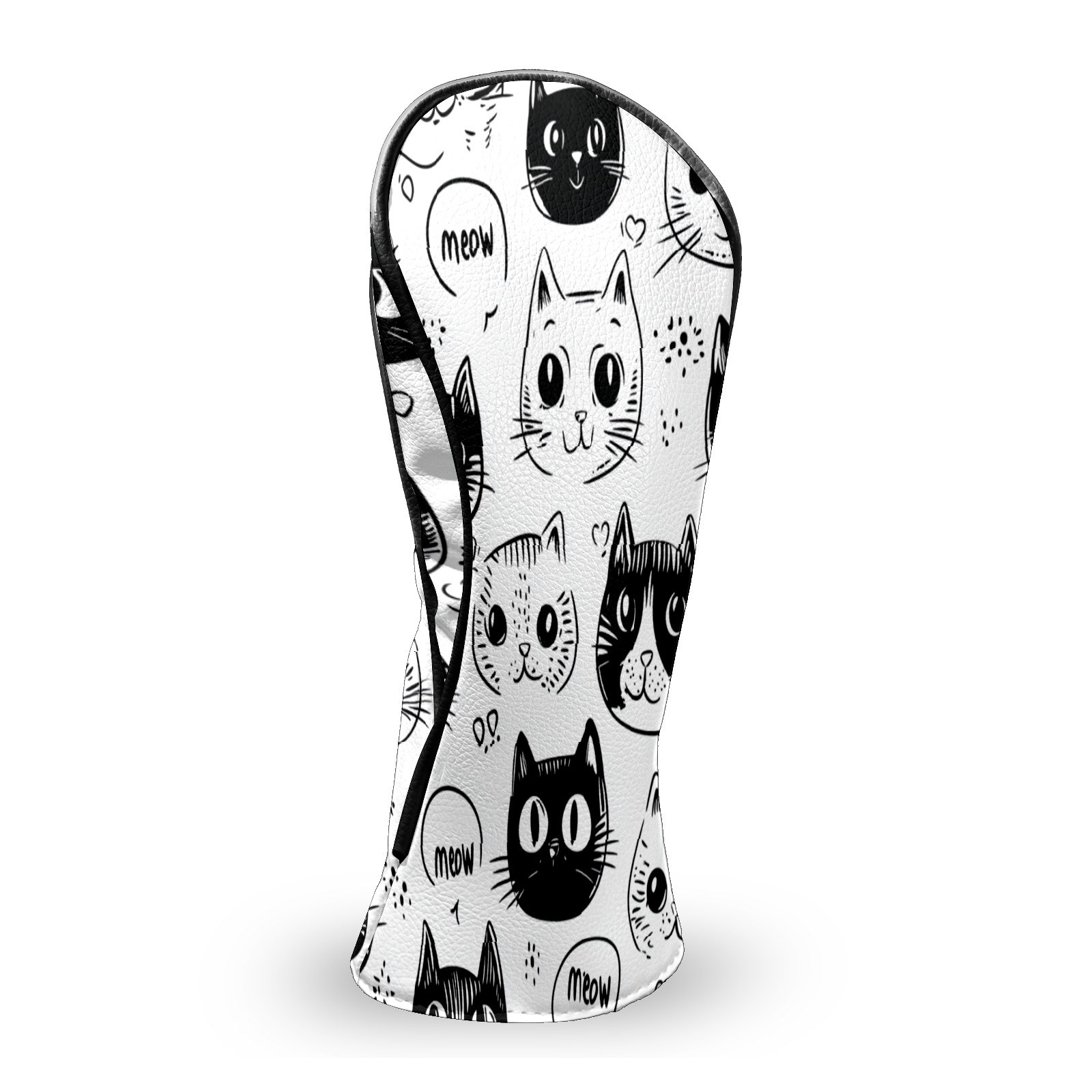 Golf Club Head Covers CatFaces_Doodle Waterproof Leather Golf Head Covers for Men Women Driver Head Cover Fairway Headcover for Golf Lovers