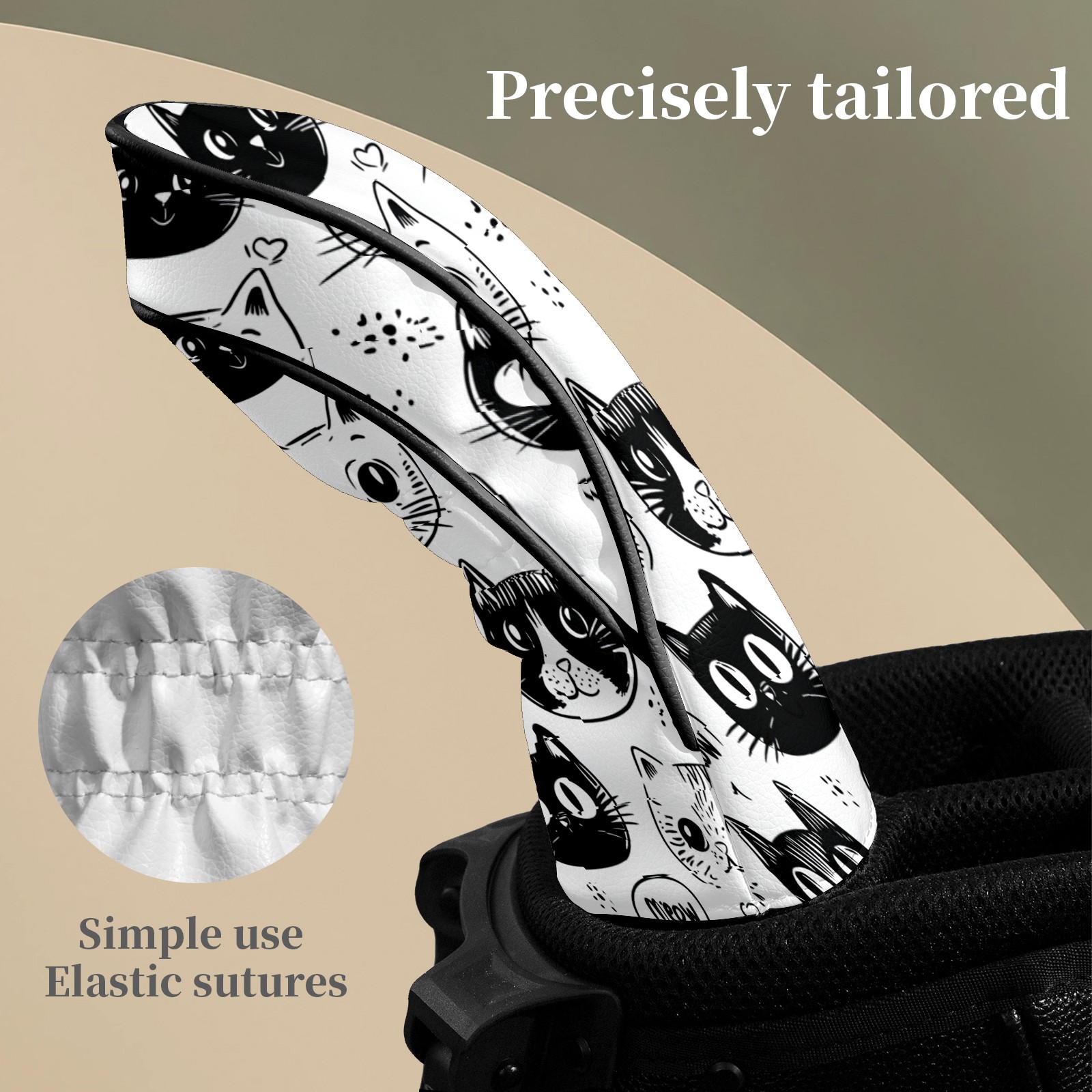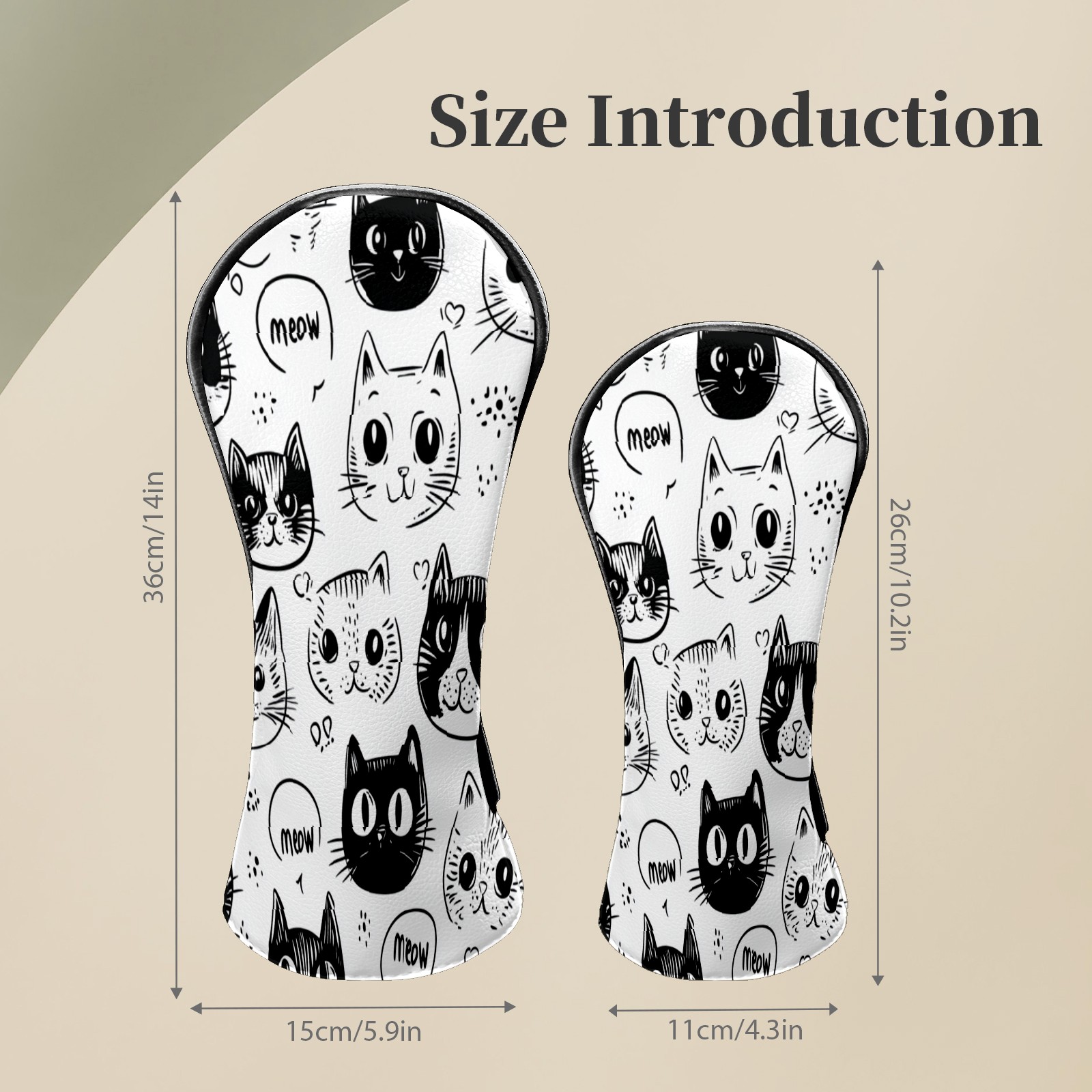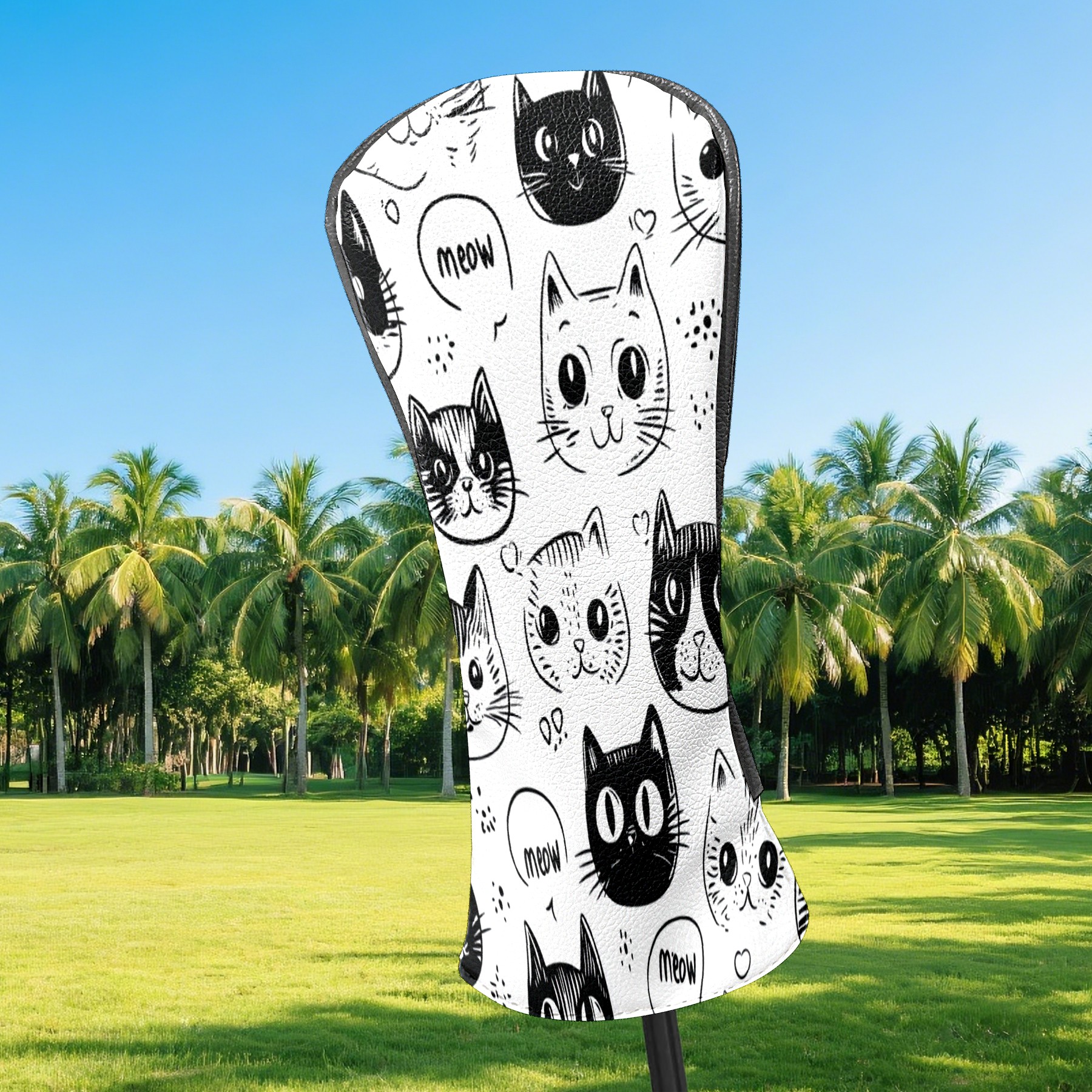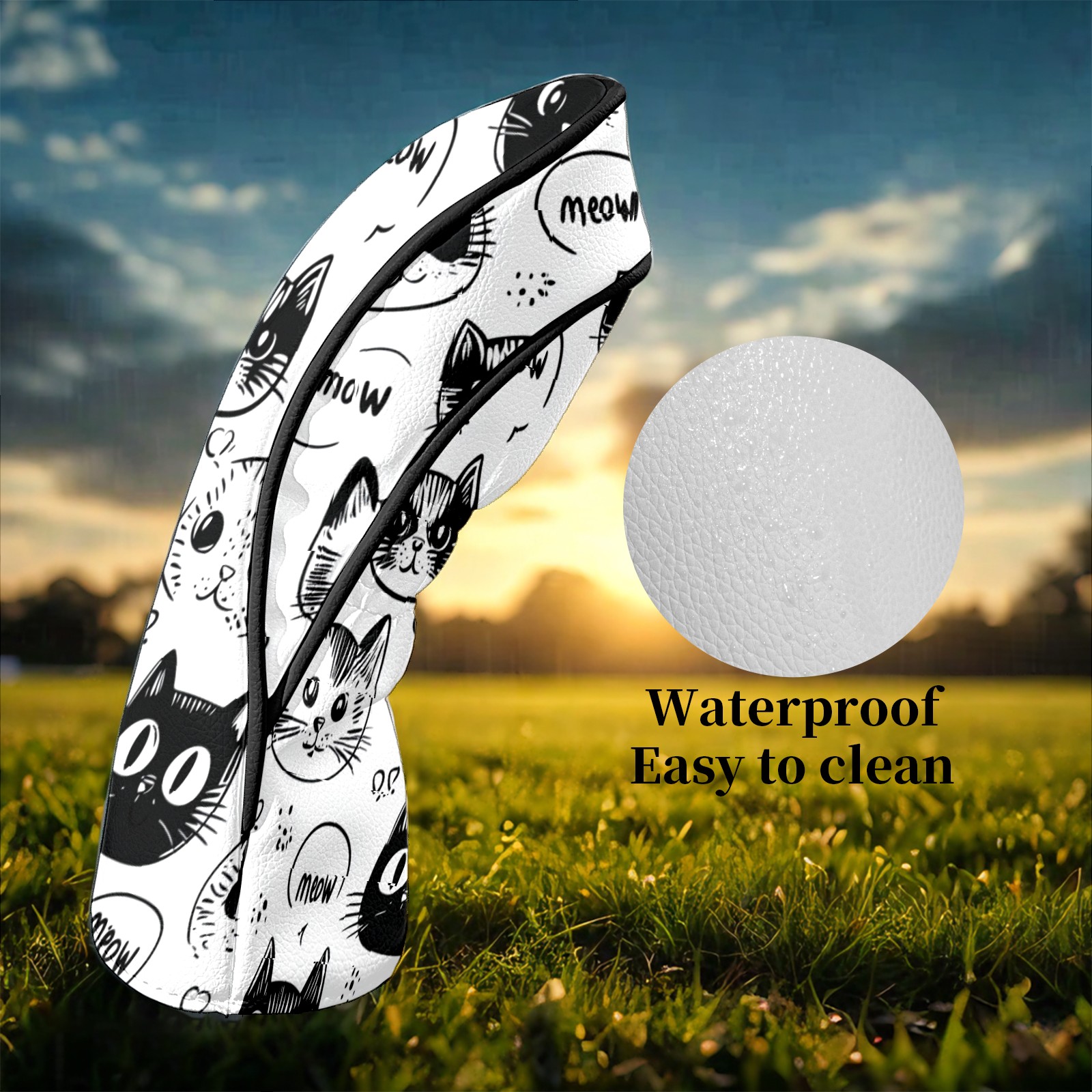 Golf Club Head Covers CatFaces_Doodle Waterproof Leather Golf Head Covers for Men Women Driver Head Cover Fairway Headcover for Golf Lovers