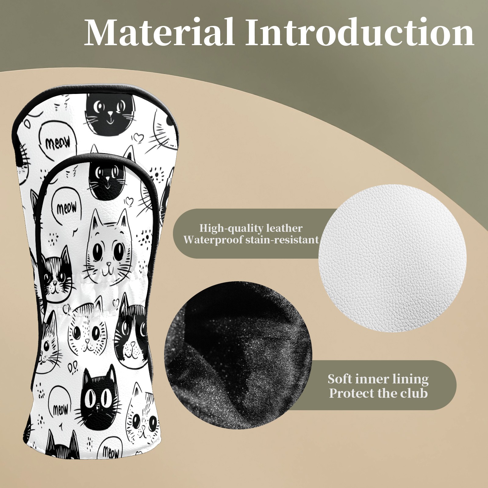 <p>This cover is made of top grade PU leather, which is wear-resistant, waterproof and stain-resistant, and can easily withstand the wind, rain and daily wear and tear; the velvet lining gently wraps around the cover, cushioning the impact and eliminating scratches and abrasions. The velvet lining cushions impacts and prevents scratches and abrasions. Surface stains wipe clean and the tear-resistant design lasts as long as new. Dual size fits all types of clubs, simple and advanced texture design, is a good choice for birthday and holiday gift.</p>