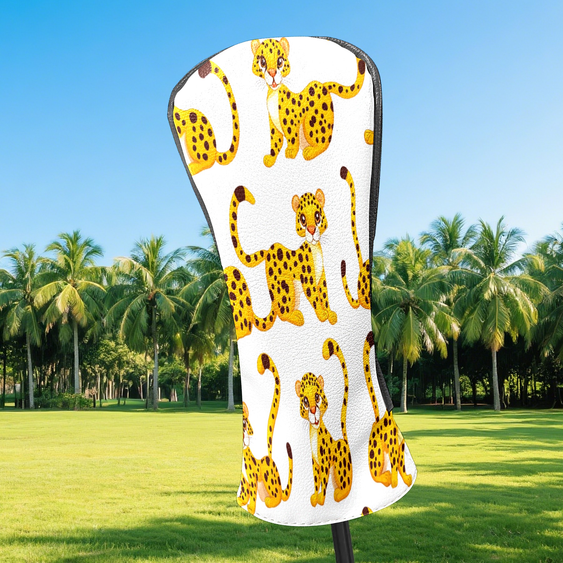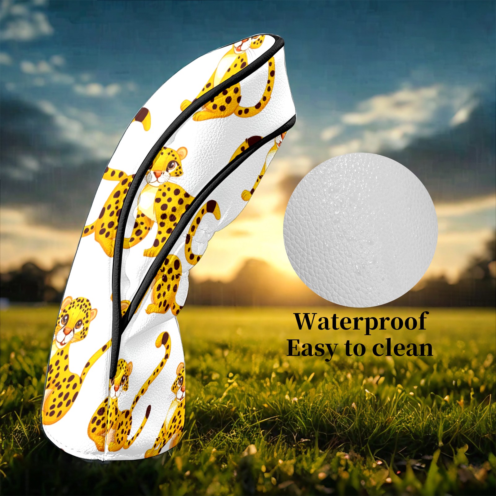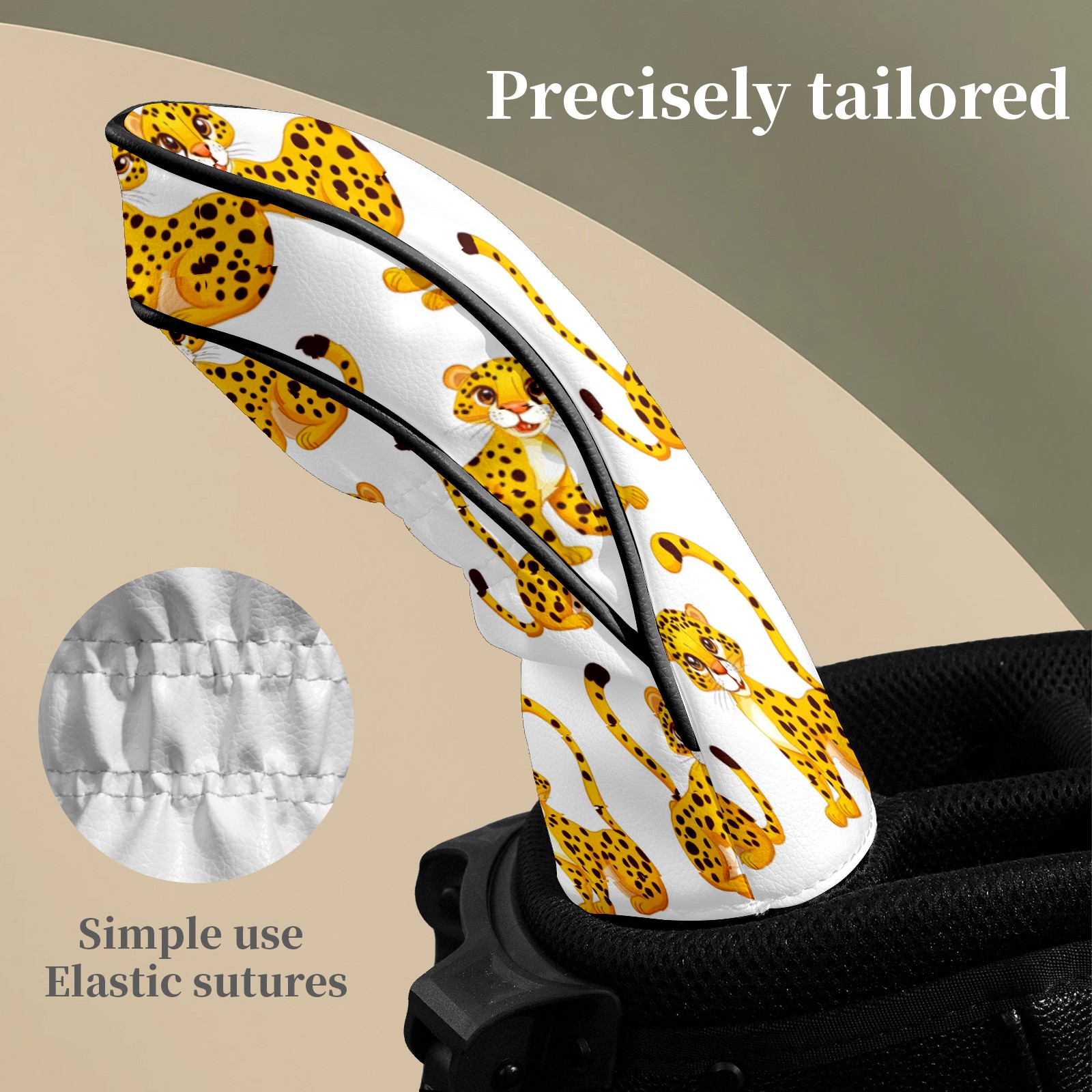 Golf Club Head Covers LeopardCubPlayful Waterproof Leather Golf Head Covers for Men Women Driver Head Cover Fairway Headcover for Golf Lovers