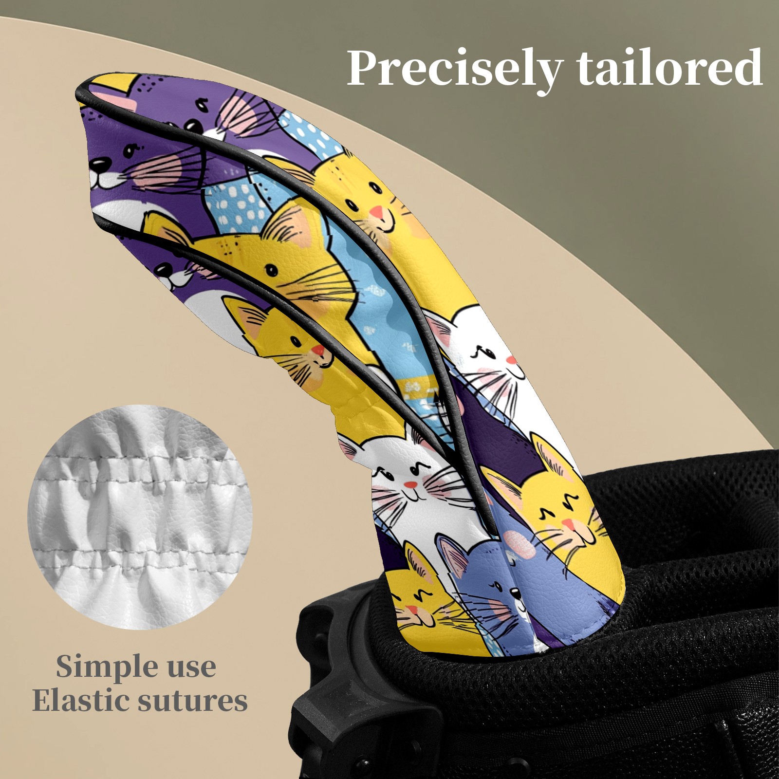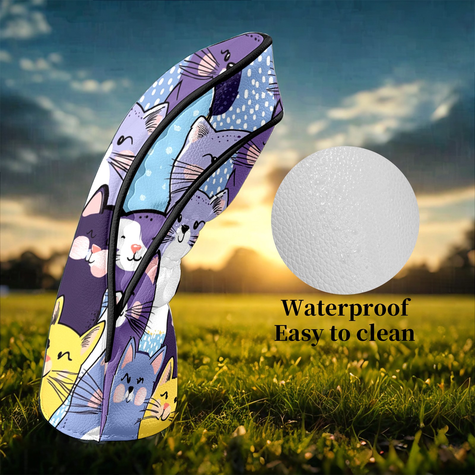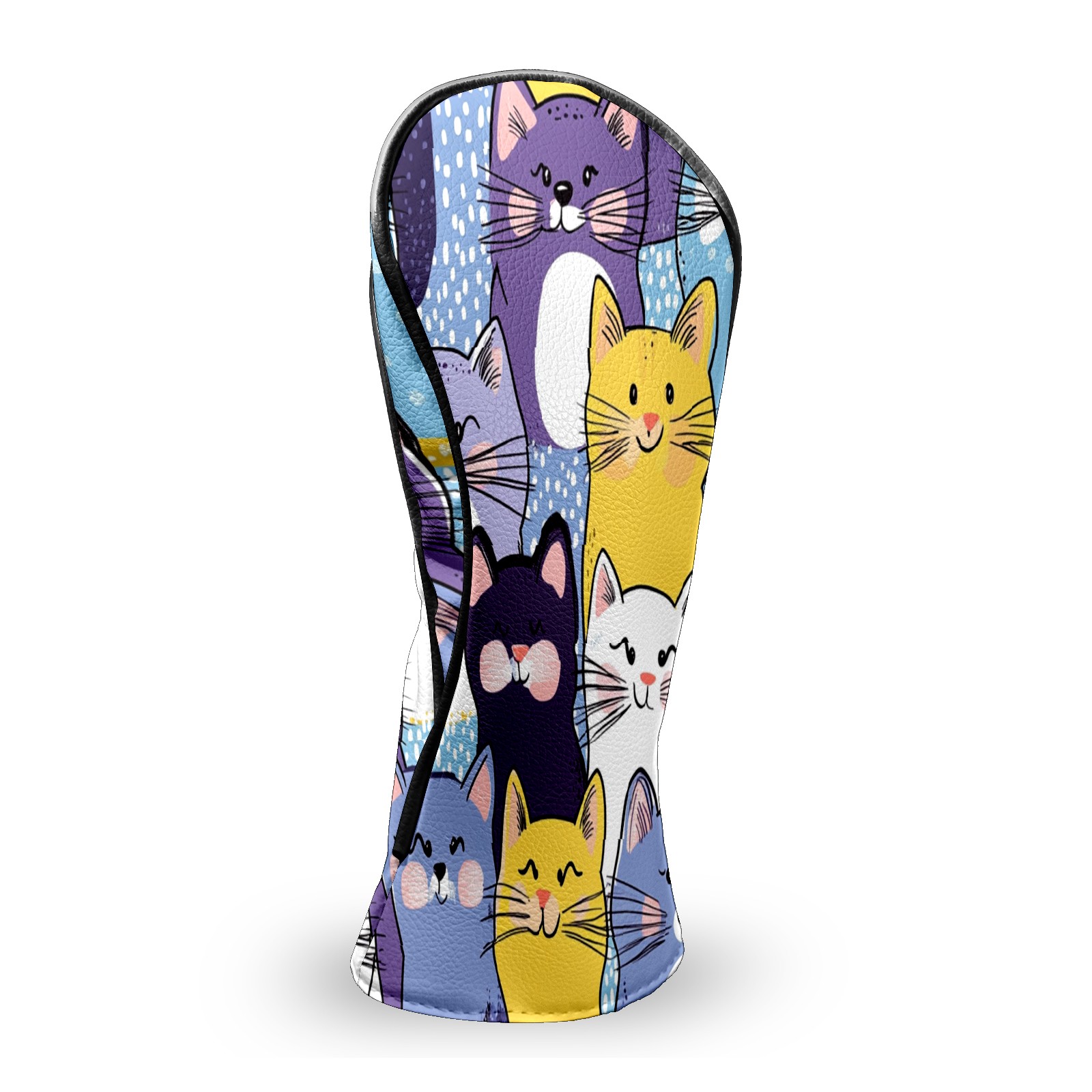 Golf Club Head Covers ColorfulCatBreedsDoodle Waterproof Leather Golf Head Covers for Men Women Driver Head Cover Fairway Headcover for Golf Lovers