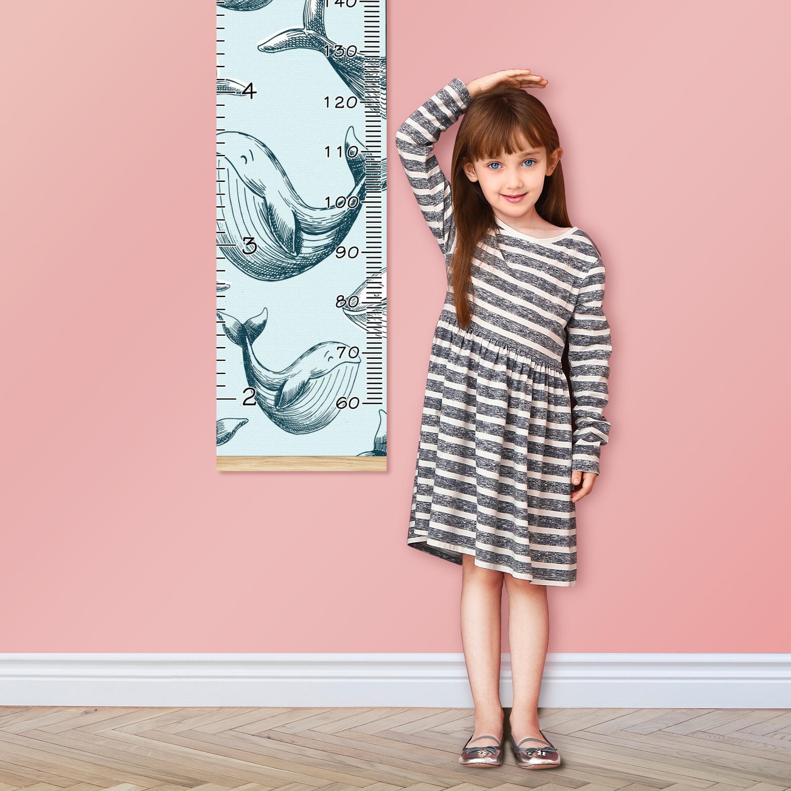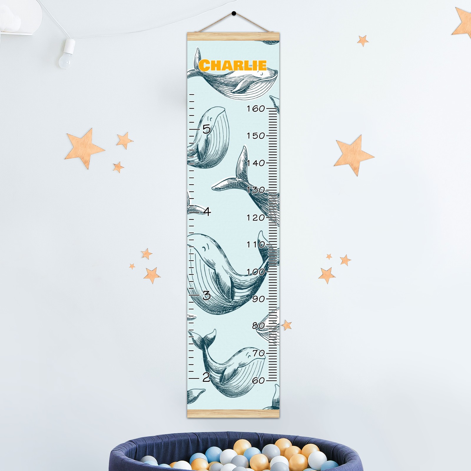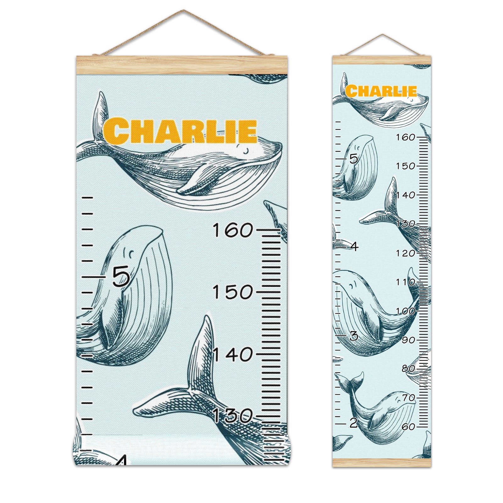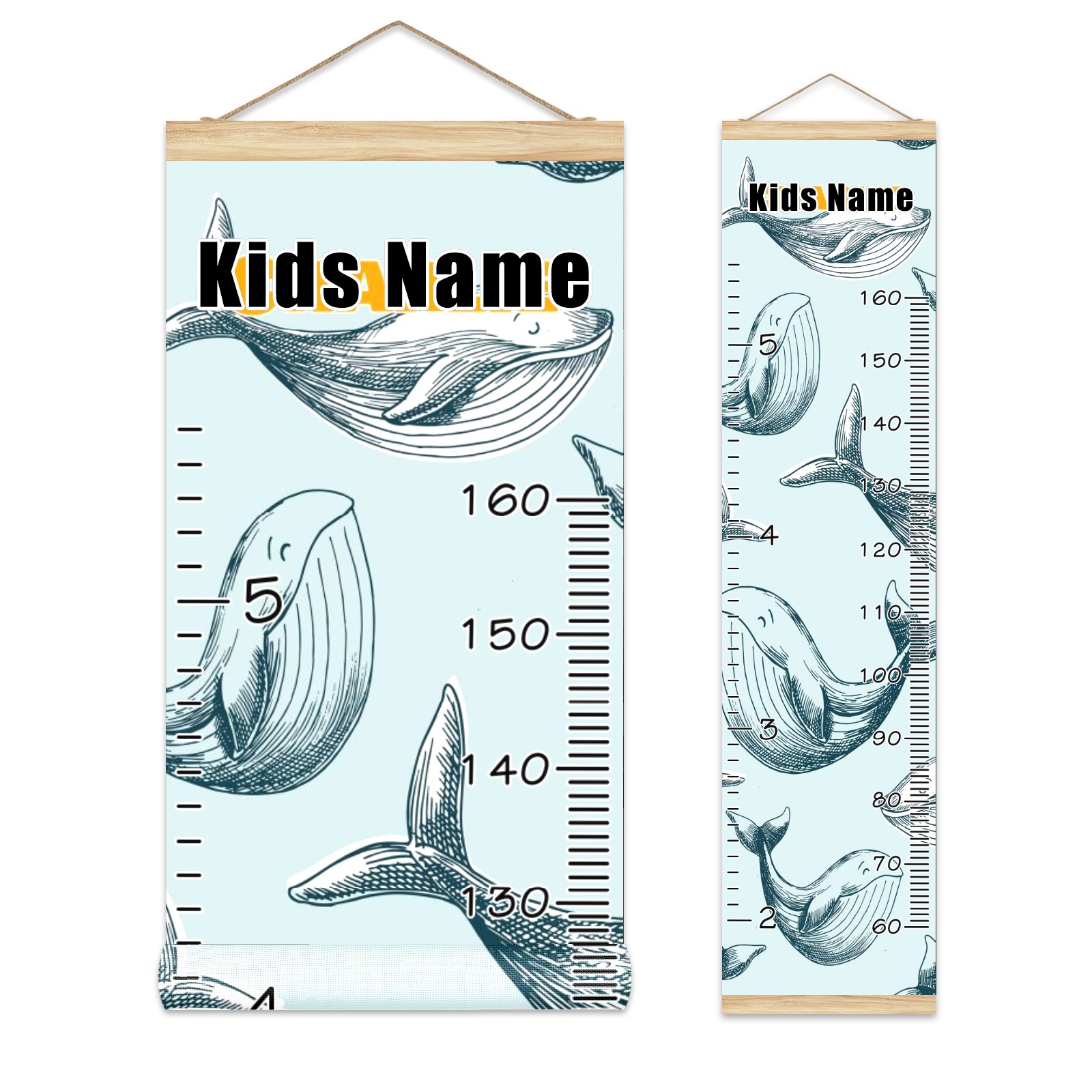 Personalized Kids Name Growth Chart Ruler for Wall Wood Frame Canvas Height Measure Chart 13.4x56 in Hanging Growth Chart Ocean Dolphin Fish3.27 Boys Girls Room Decor