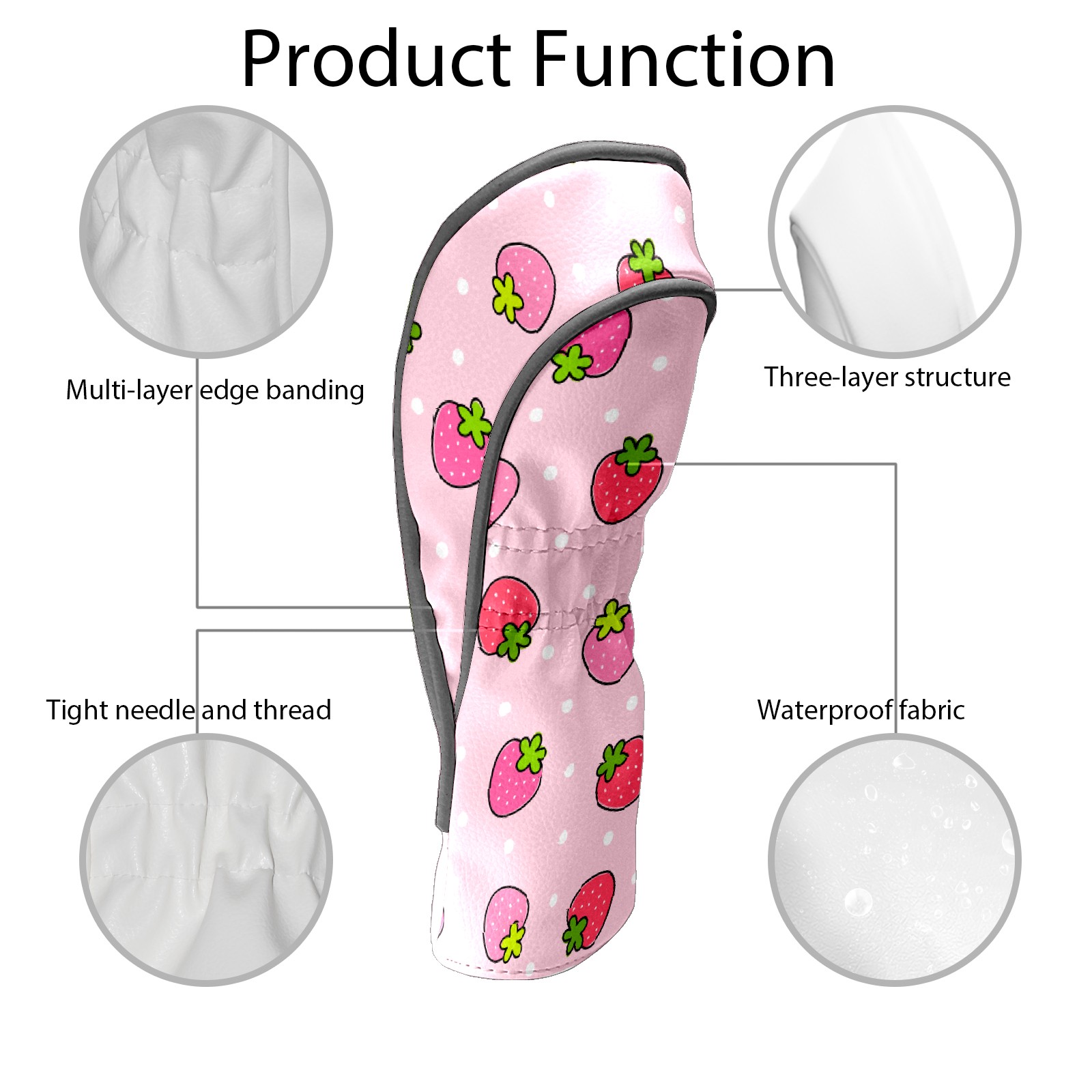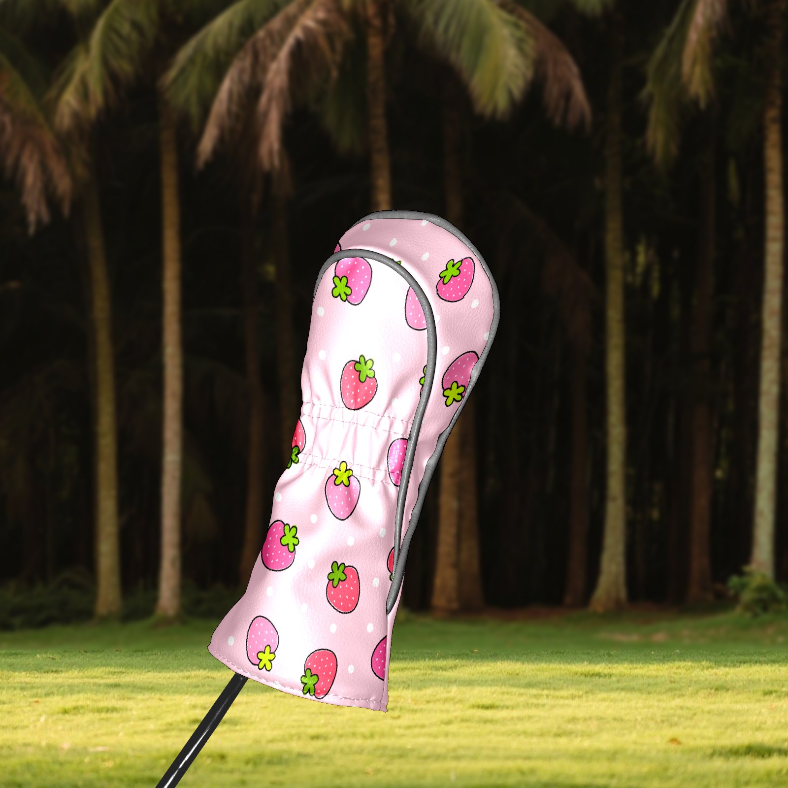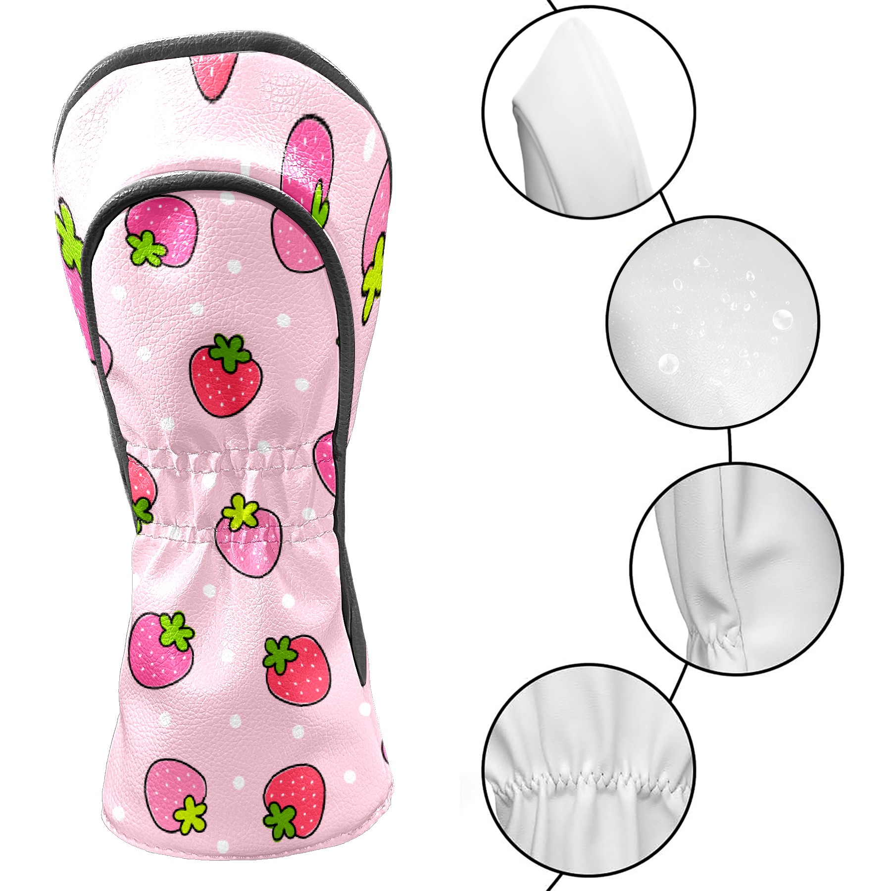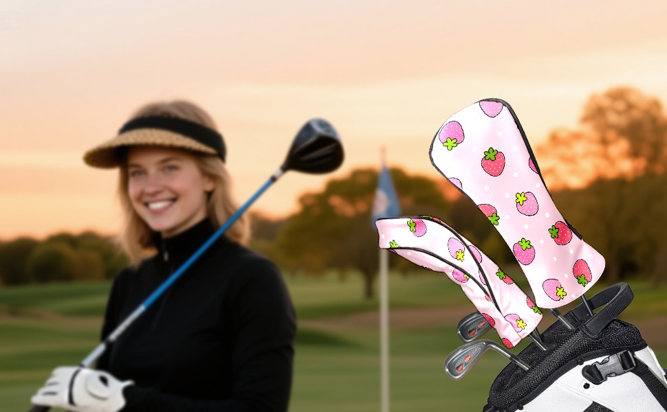 Golf Driver Head Cover Leather Driver Fairway Headcover, Premium Golf Club Covers with Plush Lining Girls Womens Mens Head Cover for Golf Clubs (Pink Strawberry)