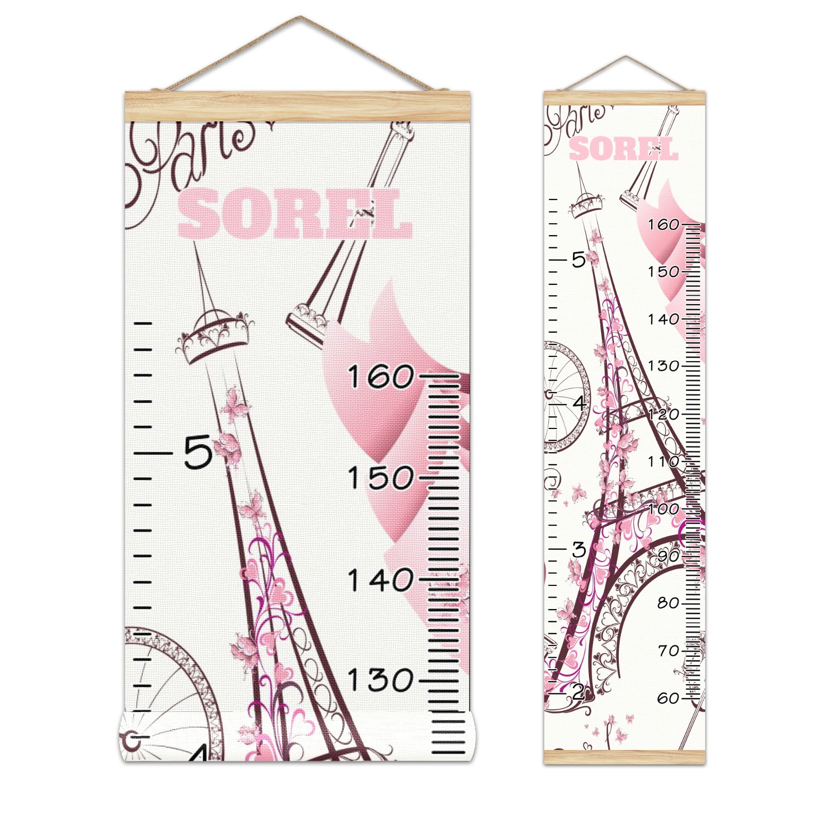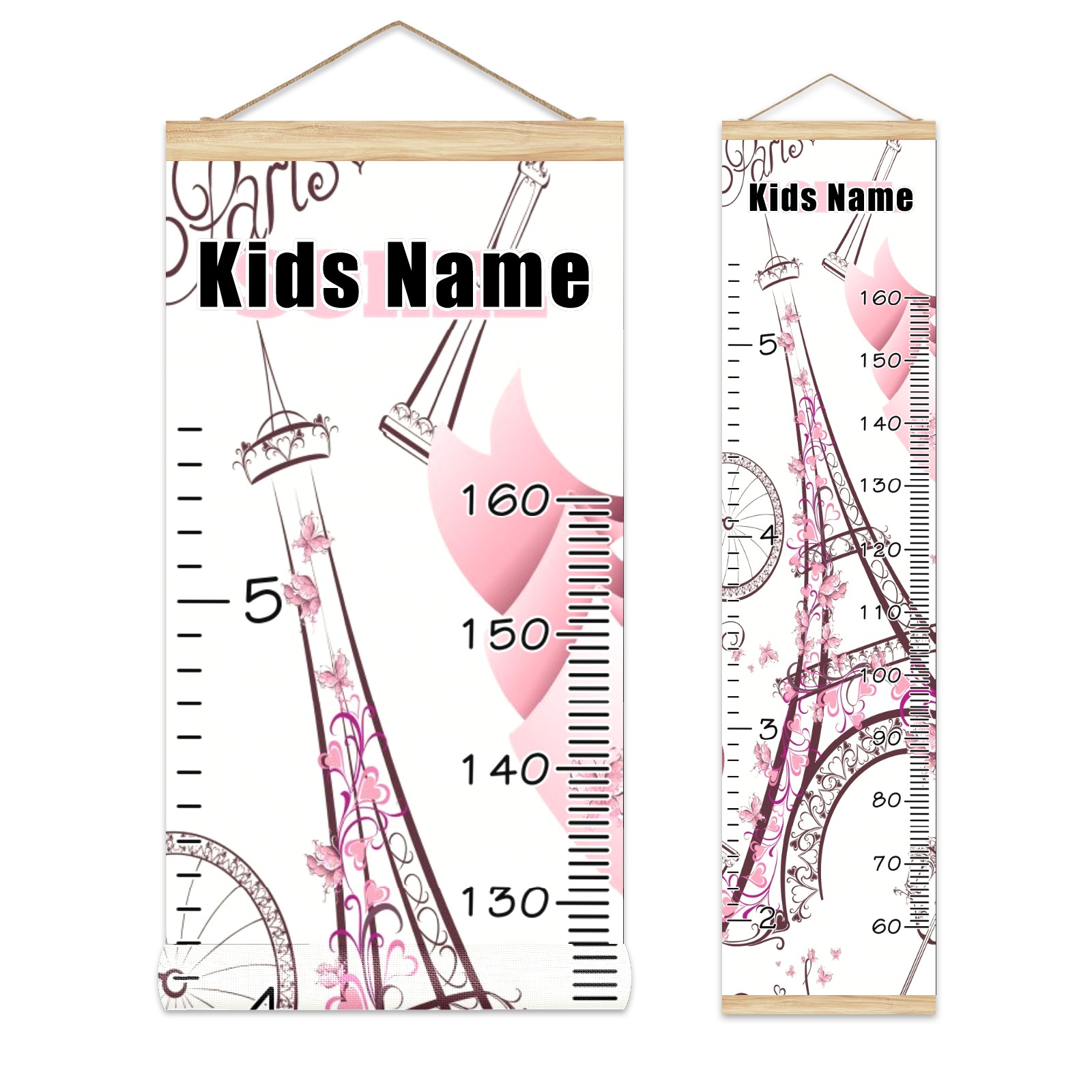 Personalized Kids Name Growth Chart Ruler for Wall Wood Frame Canvas Height Measure Chart 13.4x56 in Hanging Growth Chart Paris Eiffel Tower Pink Retro3.30 Boys Girls Room Decor