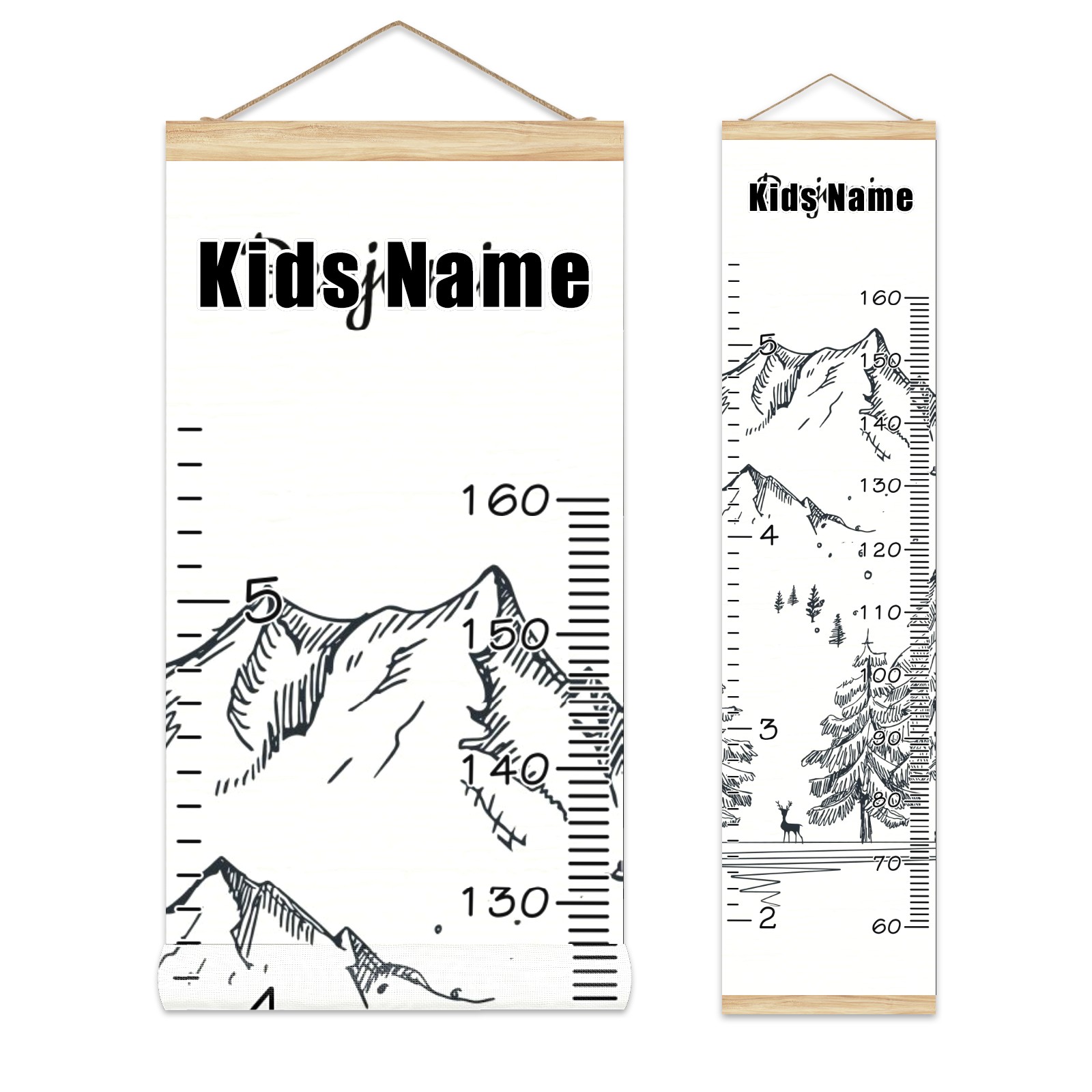 Personalized Kids Name Growth Chart Ruler for Wall Wood Frame Canvas Height Measure Chart 13.4x56 in Hanging Growth Chart Winter Mountain3.30-2 Boys Girls Room Decor
