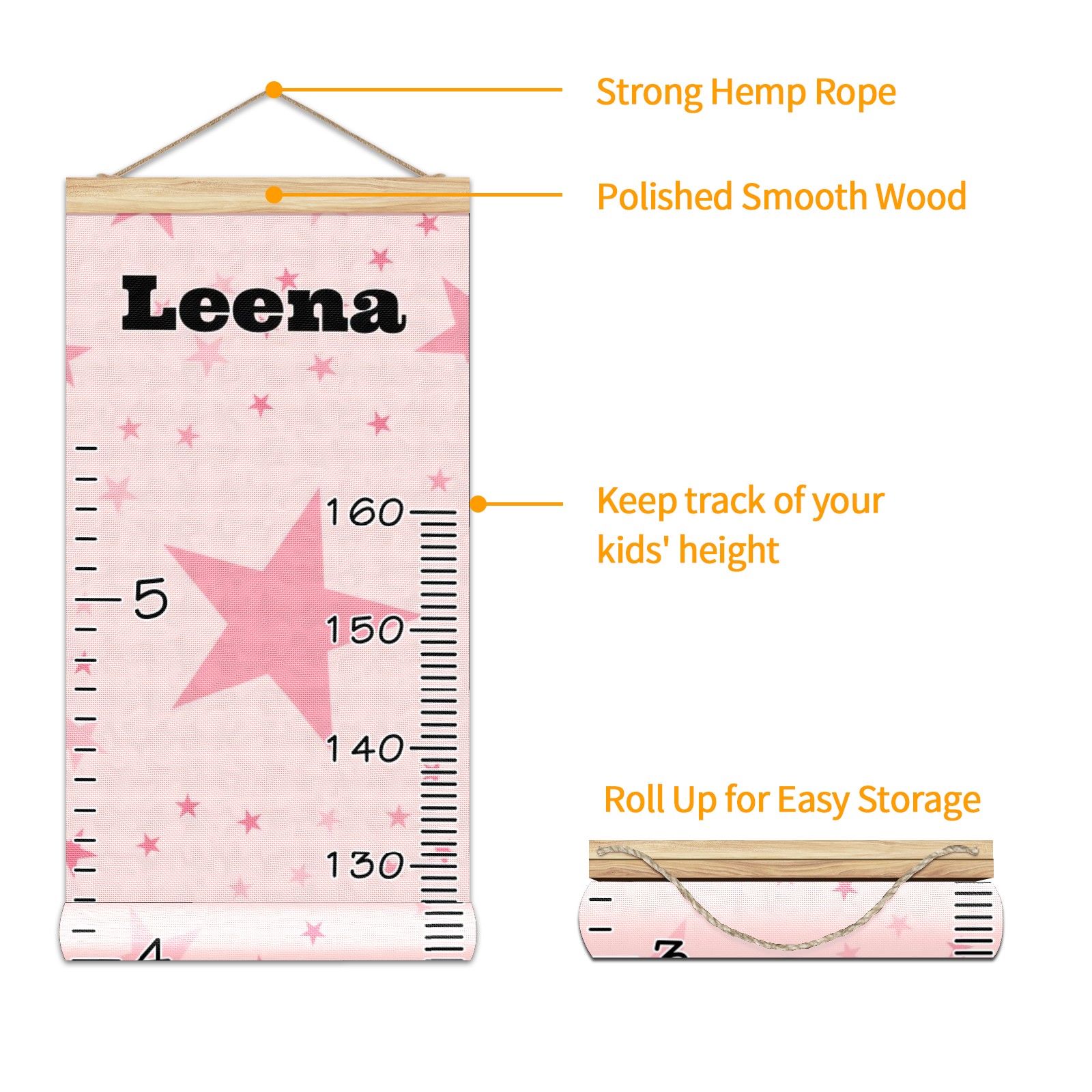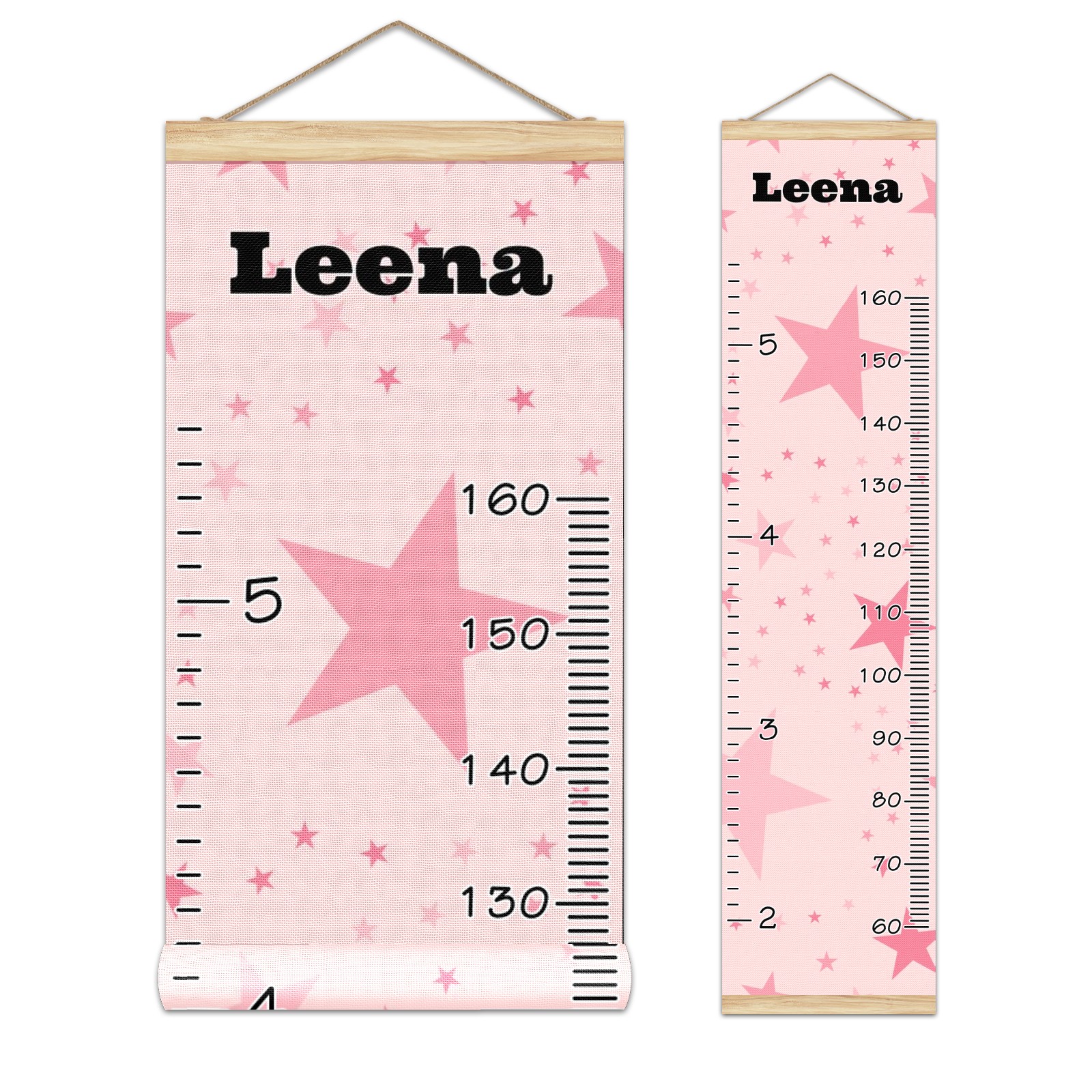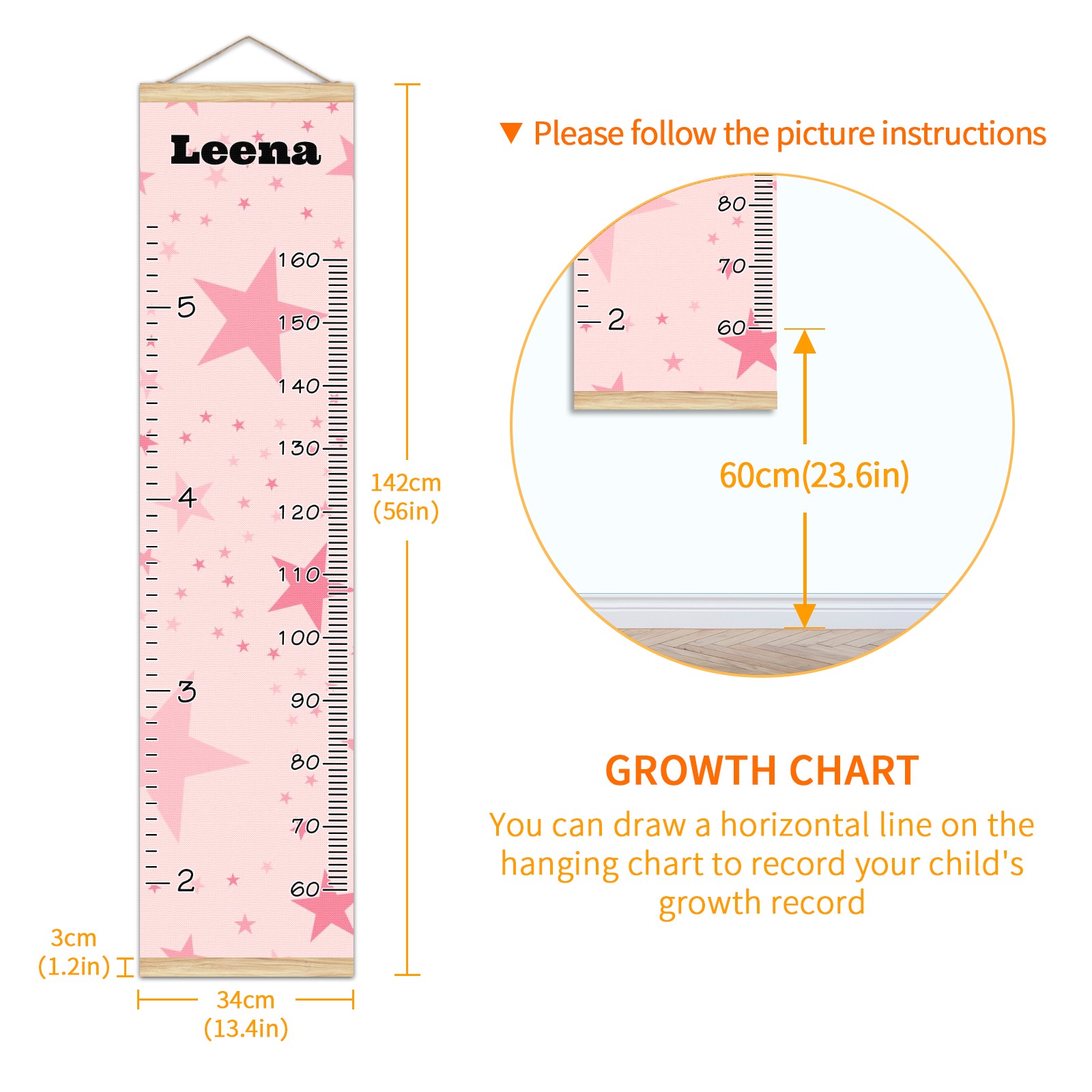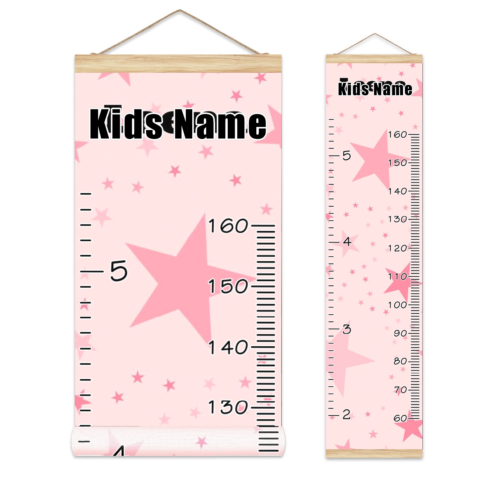 Personalized Kids Name Growth Chart Ruler for Wall Wood Frame Canvas Height Measure Chart 13.4x56 in Hanging Growth Chart Pink Stars3.30 Boys Girls Room Decor