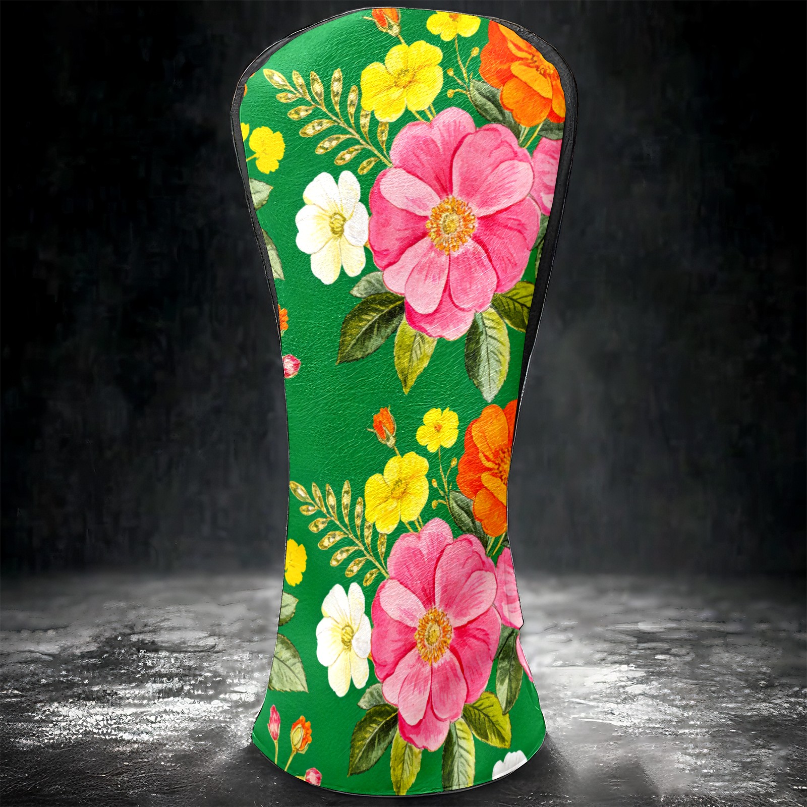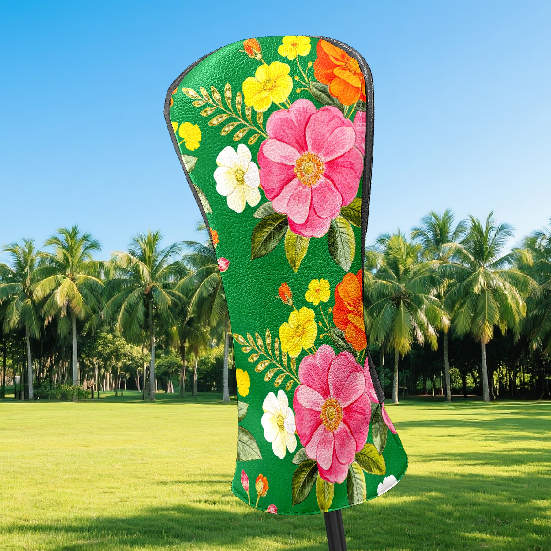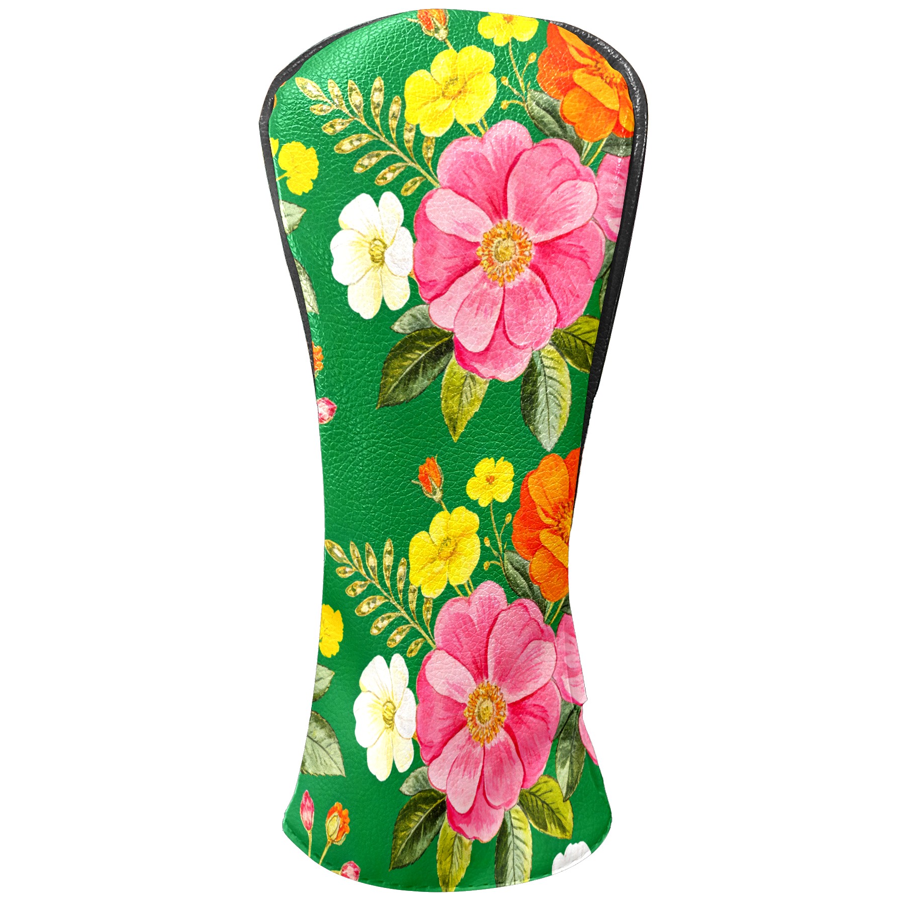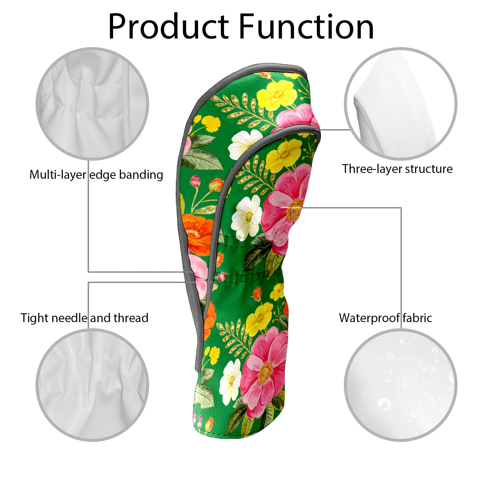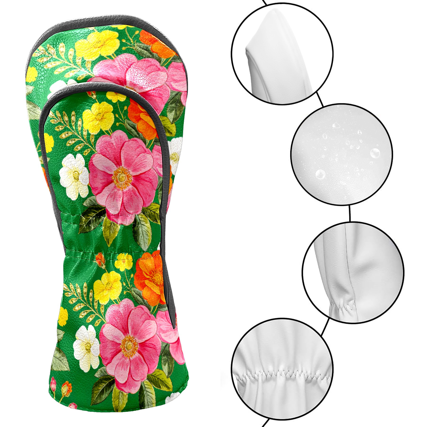 Golf Driver Head Cover Leather Driver Fairway Headcover, Premium Golf Club Covers with Plush Lining Girls Womens Mens Head Cover for Golf Clubs (Flowers On Green)