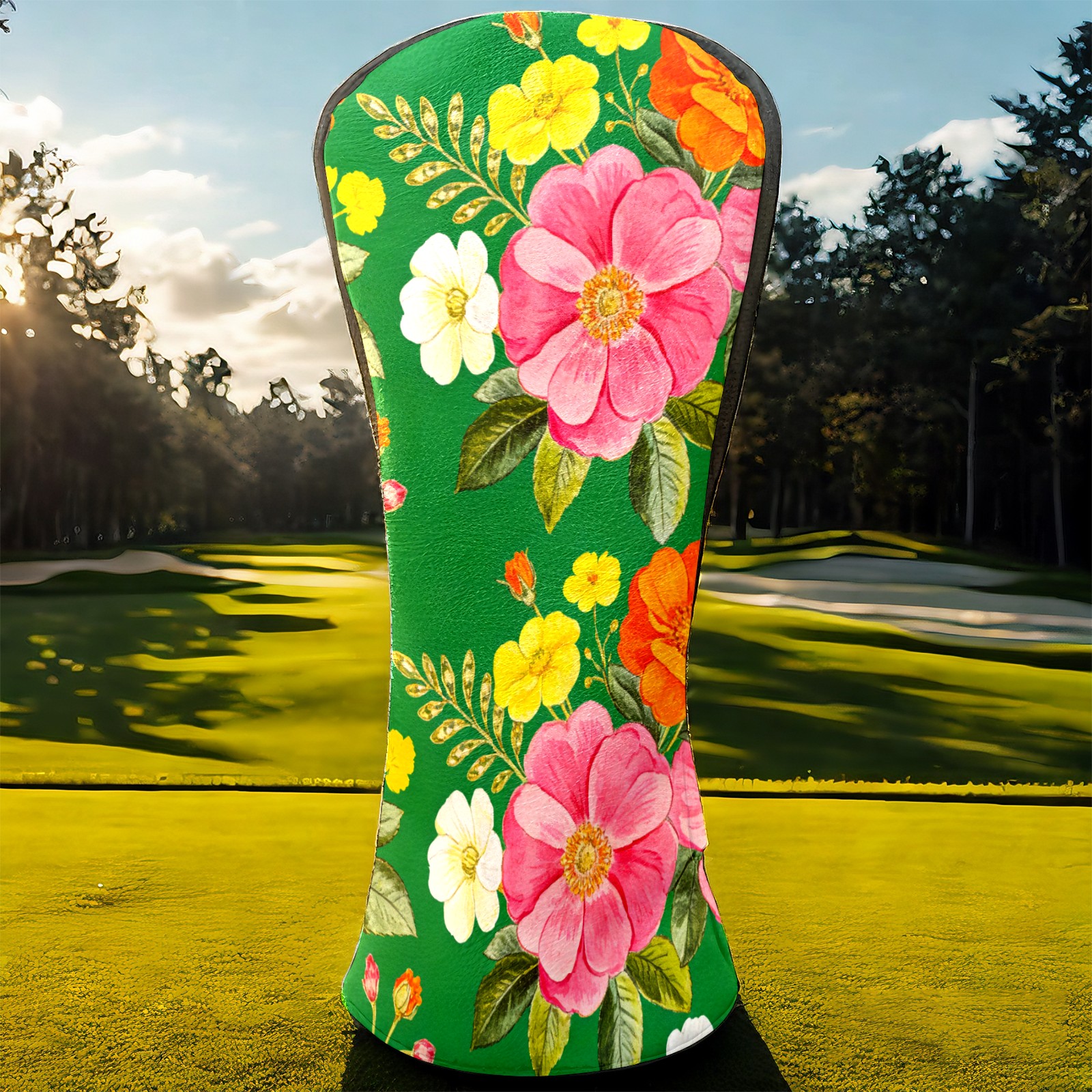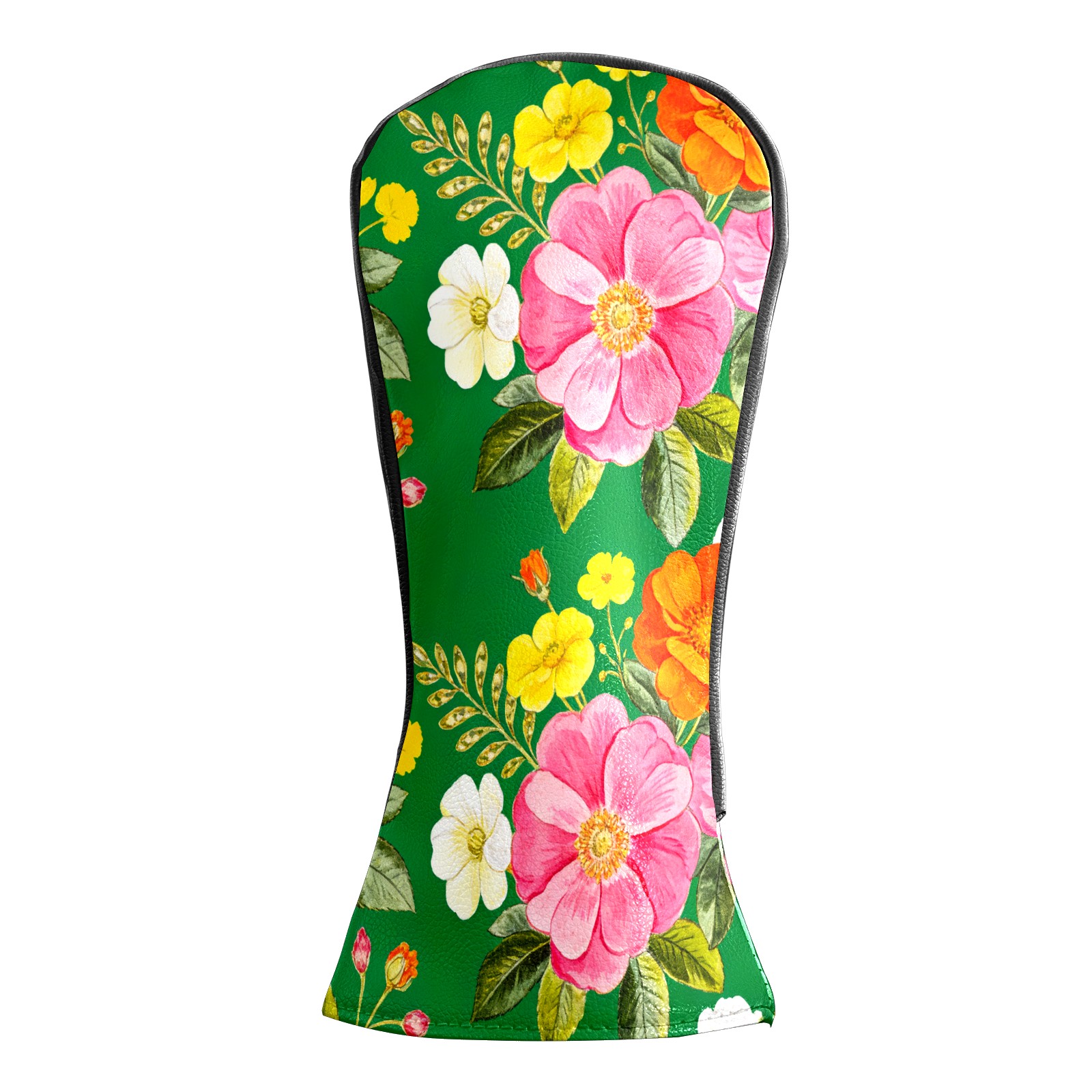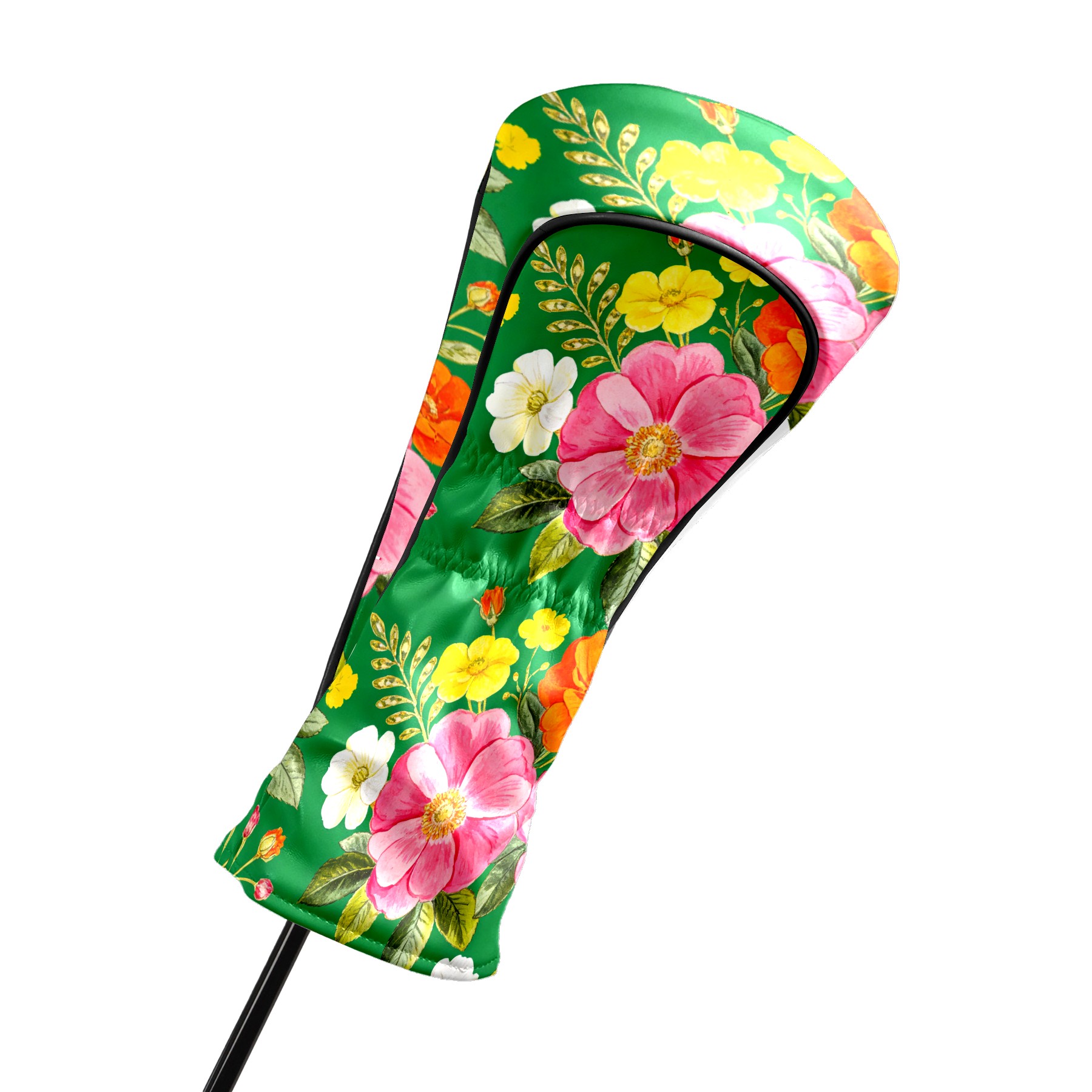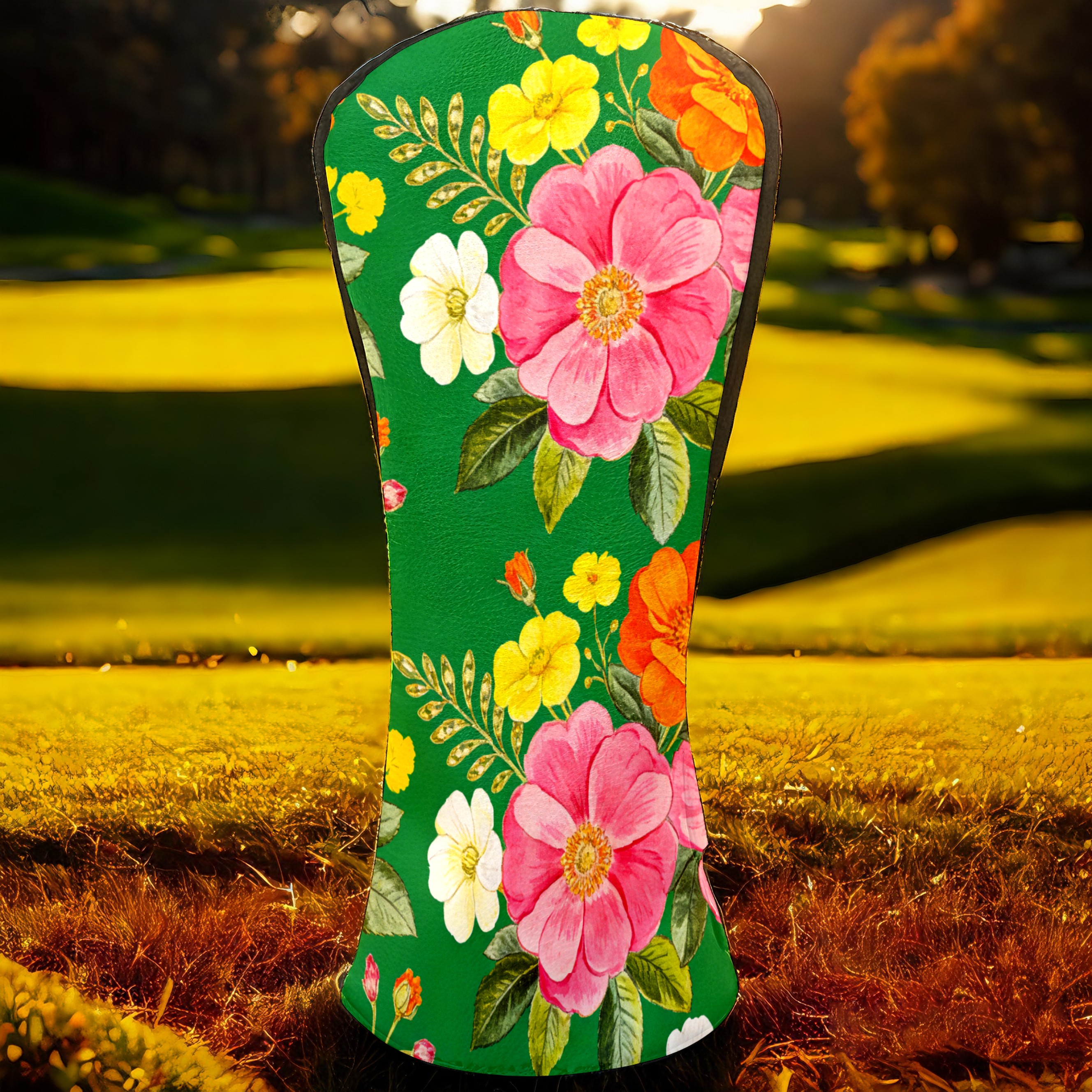 Golf Driver Head Cover Leather Driver Fairway Headcover, Premium Golf Club Covers with Plush Lining Girls Womens Mens Head Cover for Golf Clubs (Flowers On Green)